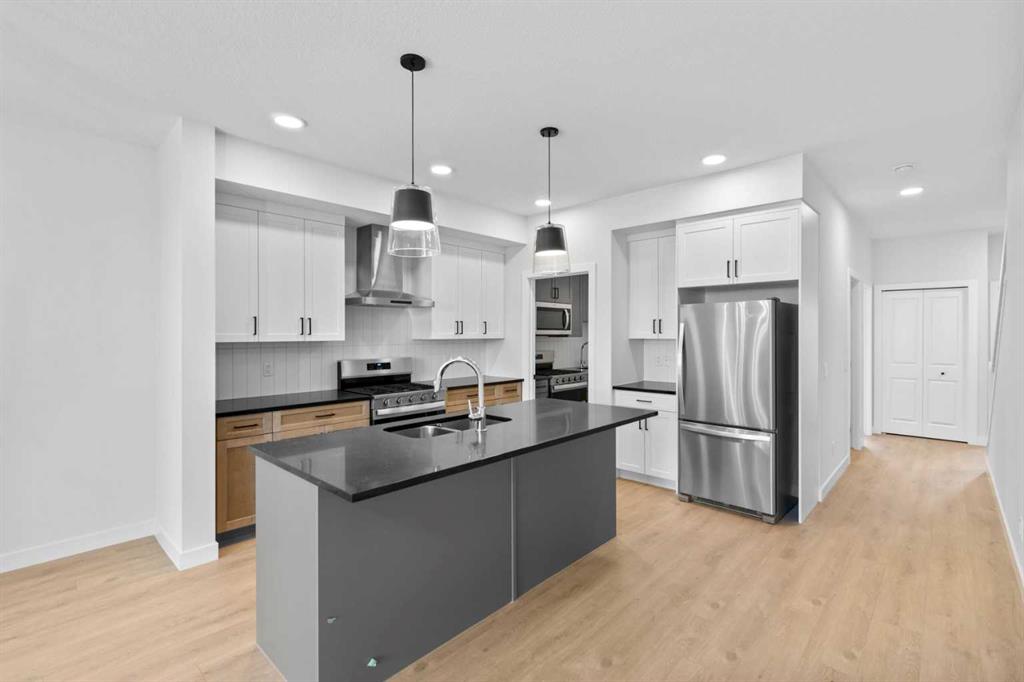 IMMEDIATE POSSESSION | 1,927 SQ.FT. | 4-BED | 3-BATH | SPICE KITCHEN | SIDE ENTRANCE | 9' BASEMENT | BONUS ROOM | LARGE PIE SHAPED LOT | Step into this modern & versatile new home by Crystal Creek Homes. Offering an open-concept main floor with 9' ceilings, its sleek kitchen features quartz countertops, a large island, and a SPICE KITCHEN with a GAS RANGE and sink. A spacious great room with an electric FIREPLACE adds to the welcoming atmosphere. The main floor also includes a bedroom and a full bathroom, perfect for guests or multi-generational living. Upstairs, you'll find a BONUS ROOM, 3 bedrooms, each with walk-in closets, a main bath, and convenient UPPER-FLOOR LAUNDRY. The primary bedroom offers a luxurious 5-piece ensuite. Set on a large pie-shaped lot, the home features a durable HARDIE BOARD EXTERIOR and a REAR DECK for outdoor living. The 9' BASEMENT and SEPARATE SIDE ENTRANCE provides future legal suite potential (subject to approval and permitting by the City). Located near East Hills Shopping Centre, with quick access to Stoney Trail and a short drive downtown. This home has everything you need! Book your showing today before it's gone.