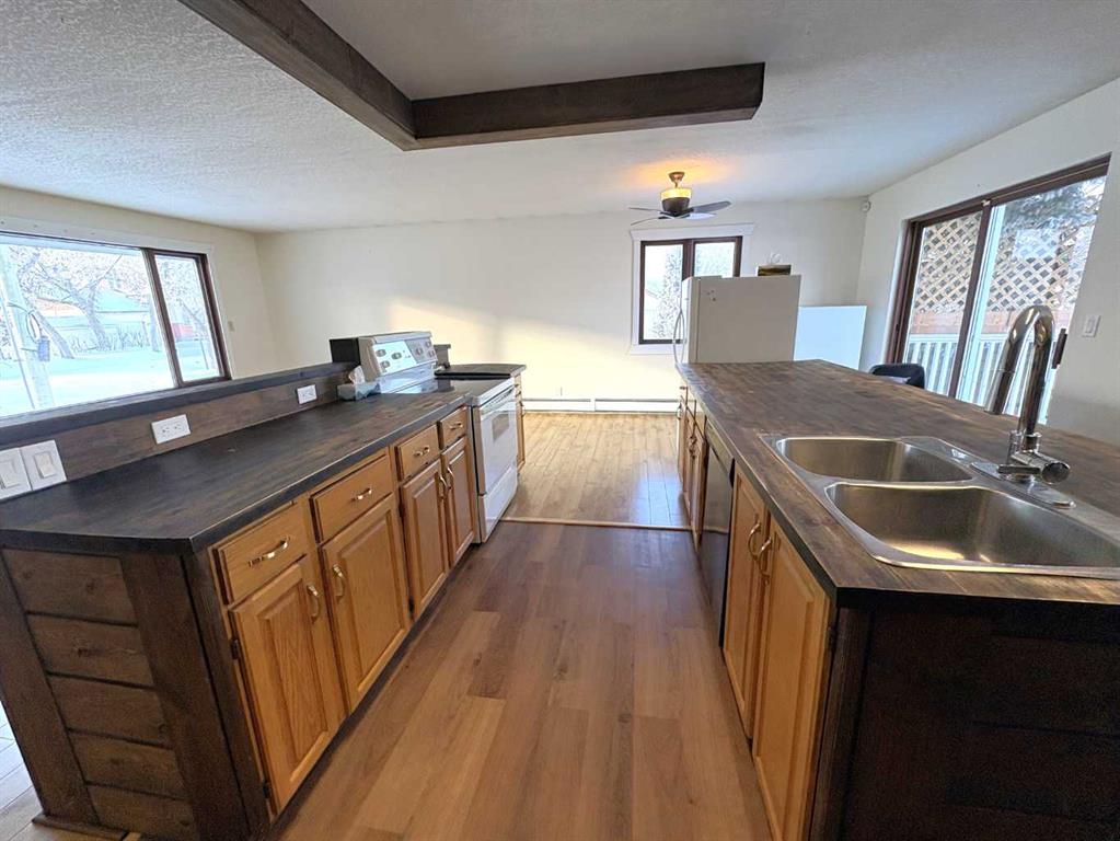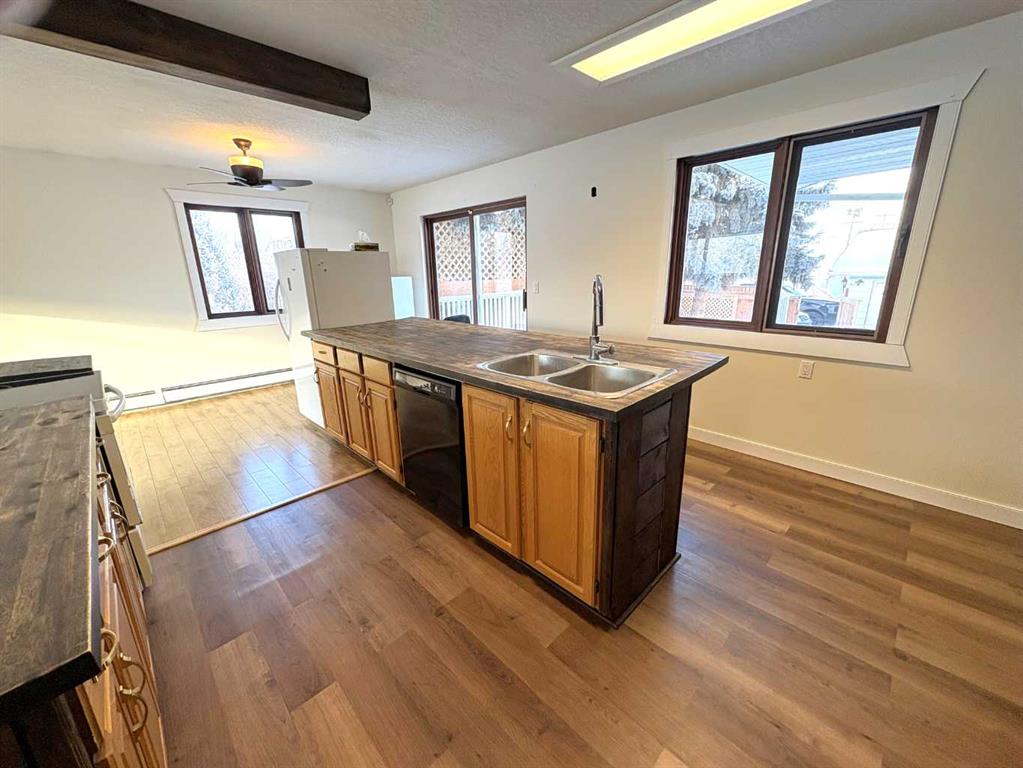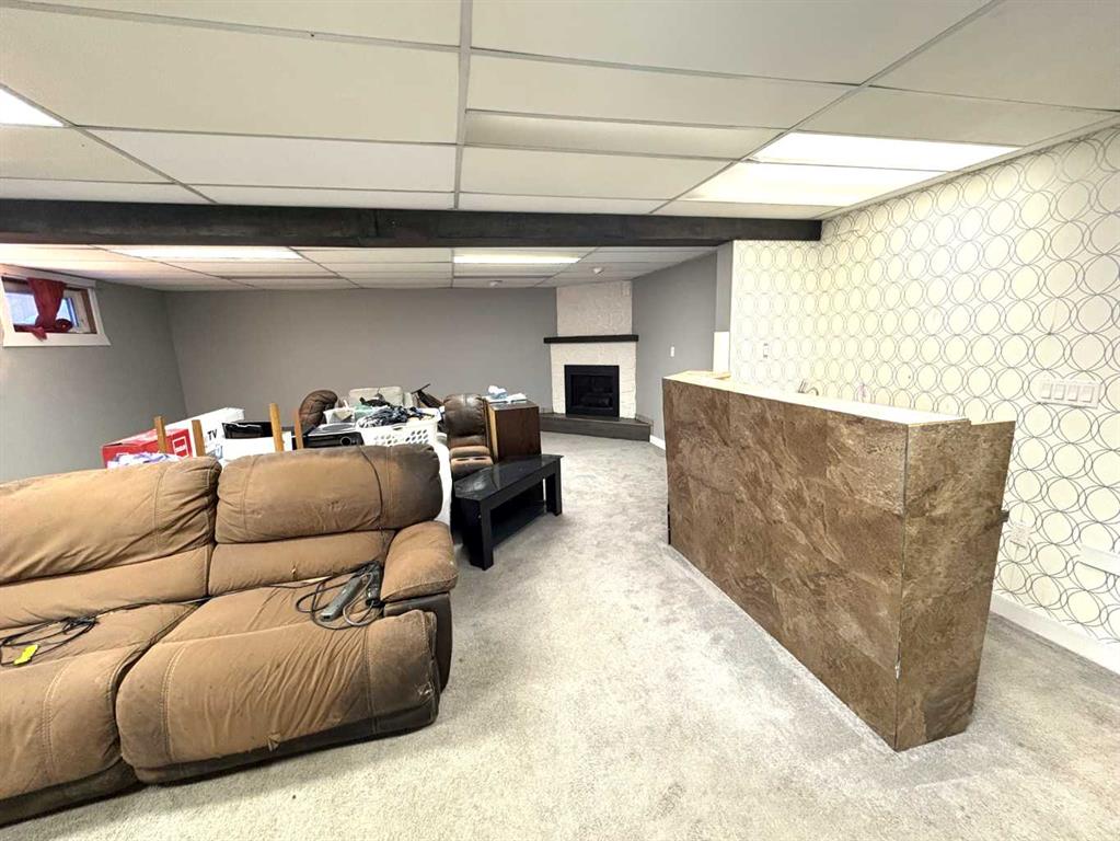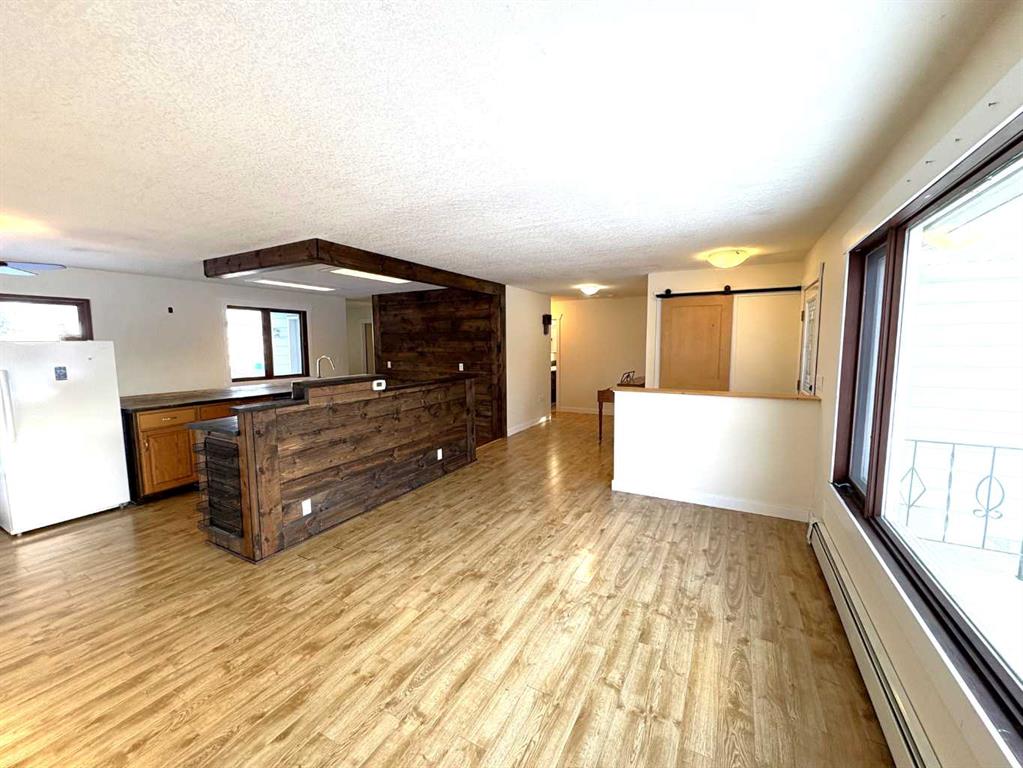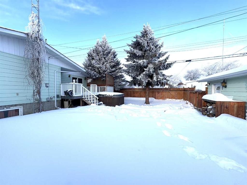 Check out this great family home. 1300 square foot bungalow. Four bedrooms, two full bathrooms, two 1/2 baths. You will love the open floor plan, perfect for entertaining family and friends. The spacious kitchen has two large islands which flow into the dining area. There are sliding doors to back deck. The bright living room has an outside powered roll down storm blind. The primary bedroom has a two piece en suite and walk-in closet, one more bedroom and a newer four piece bathroom. Main floor laundry for your convenience with another two piece bathroom. The finished basement features a large family room with a cozy gas fireplace and wet bar. There are two more bedrooms, another newer three-piece bathroom and two storage rooms. You will love your private fence backyard and maintenance free deck to enjoy your morning coffee. The detached 24‘ x 28‘ insulated garage gives you plenty of room to park and still have room for work area . Enjoy small town living in the vibrant community of Forestburg.