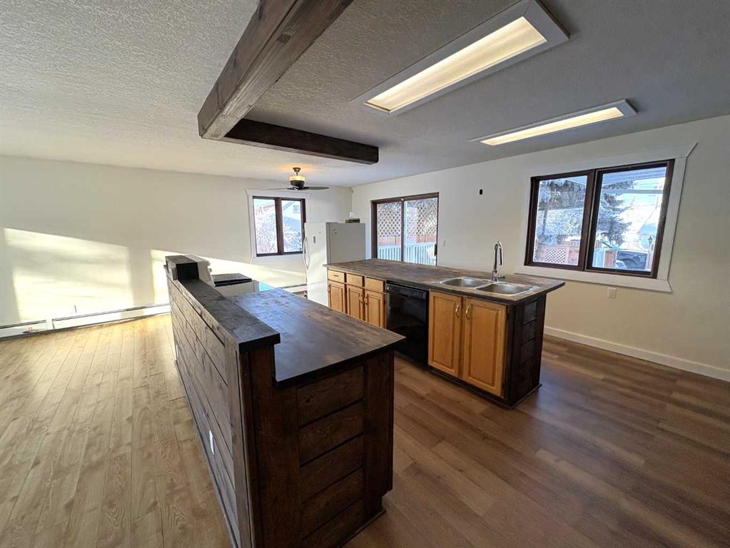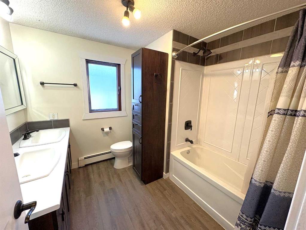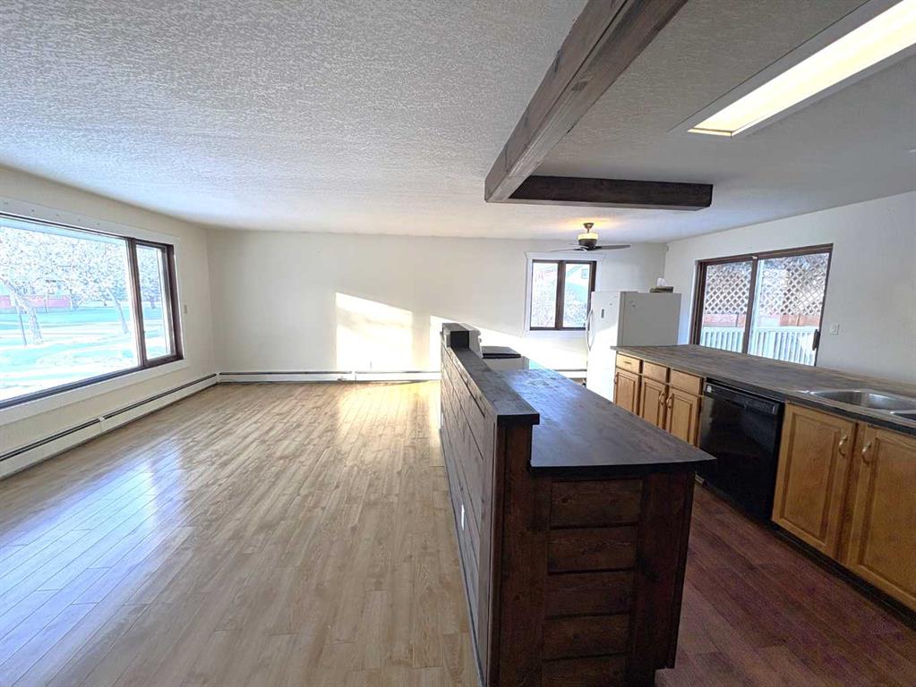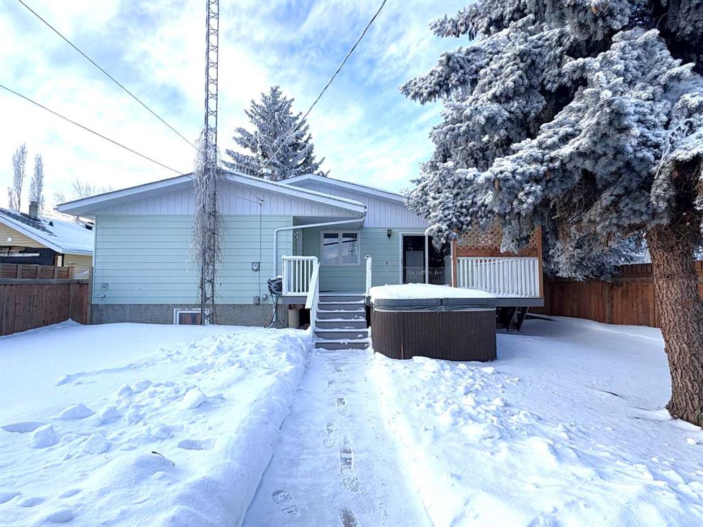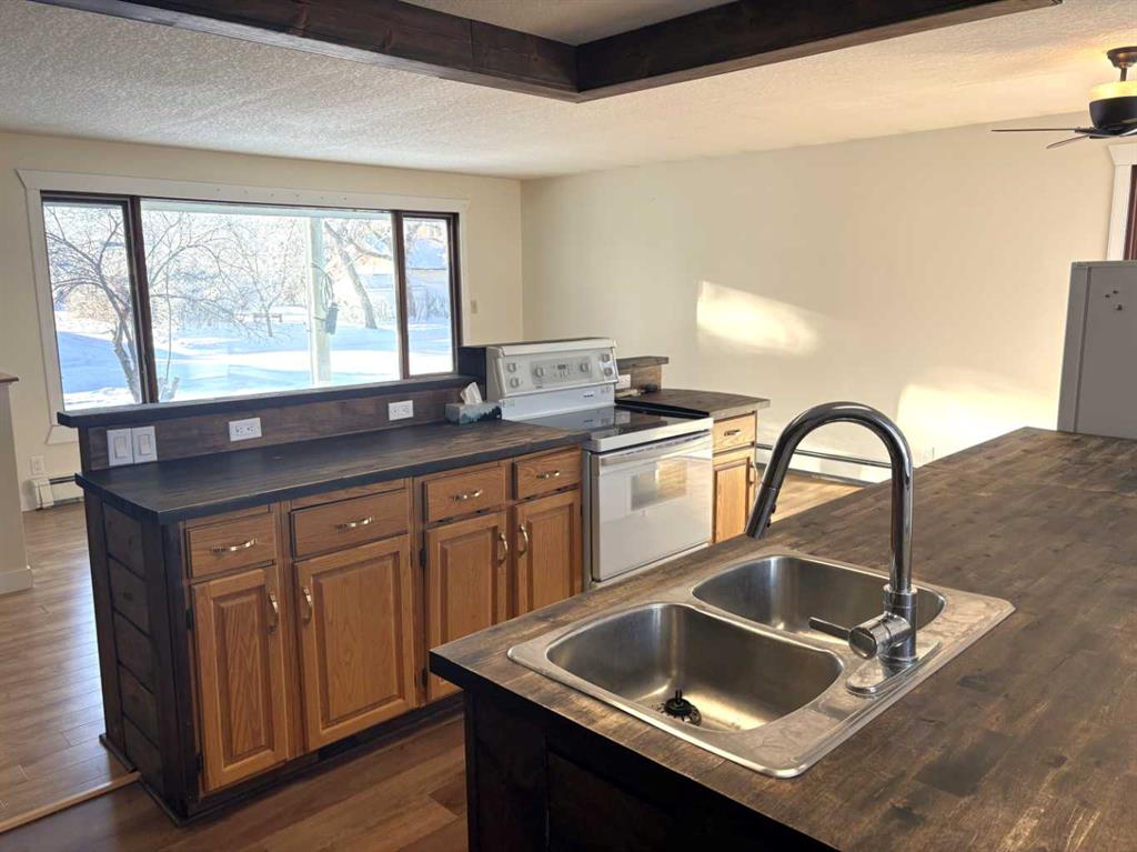 Check out this great family home. 1300 square foot bungalow. Four bedrooms, two full bathrooms, two 1/2 baths. You will love the open floor plan, perfect for entertaining family and friends. The spacious kitchen has two large islands which flow into the dining area. There are sliding doors to back deck. The bright living room has an outside powered roll down storm blind. The primary bedroom has a two piece en suite and walk-in closet, one more bedroom and a newer four piece bathroom. Main floor laundry for your convenience with another two piece bathroom. The finished basement features a large family room with a cozy gas fireplace and wet bar. There are two more bedrooms, another newer three-piece bathroom and two storage rooms. You will love your private fence backyard and maintenance free deck to enjoy your morning coffee. The detached 24‘ x 28‘ insulated garage gives you plenty of room to park and still have room for work area . Enjoy small town living in the vibrant community of Forestburg.
