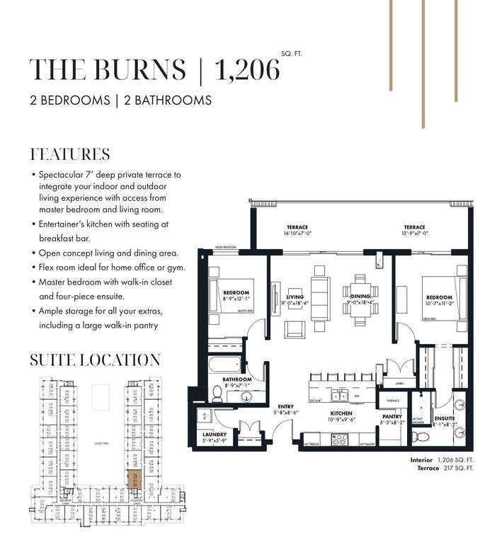 For more information, please click the "More Information" button. Step into a home where thoughtful design and modern comfort come together to create an inviting sanctuary for every lifestyle. A spectacular 7-foot-deep private terrace seamlessly blends indoor and out door living, with direct access from by the primary bedroom and living room. Ideal for enjoying morning coffee, unwinding in the evening, or hosting guests with elegance. The gourmet kitchen is a culinary centerpiece, featuring a spacious breakfast bar, ideal for casual meals or hosting friends and family. Enjoy the bright open concept living and dining area, designed for effortless gatherings, celebrations or quiet nights at home. Large windows fill the space with natural light, enhancing the sense of openness and warmth. A flex room that can be easily transformed to suite every lifestyle - perfect as a home office, gym, or creative space. Offering storage solutions throughout the home, including a large walk-in pantry, provide plenty of space. This exceptional property combines functional design with refined finishes, delivering a home that truly elevates everyday living. Photos contain digitally rendered and/or sample images.