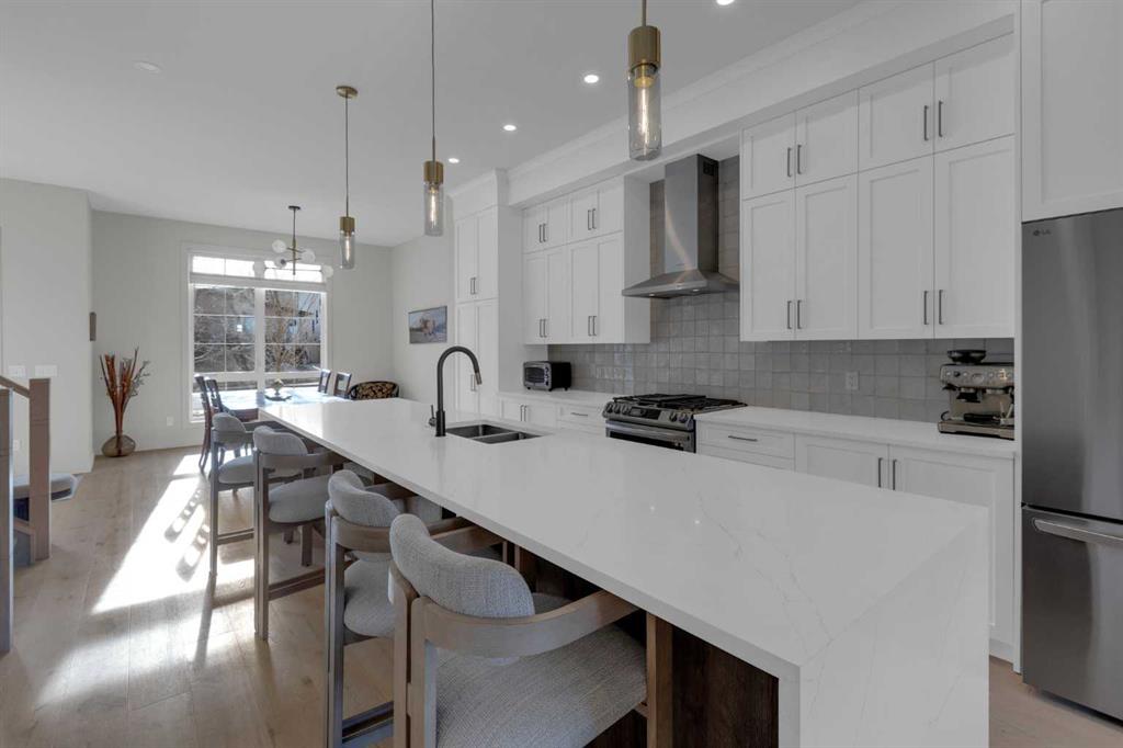 HOME SWEET HOME! Welcome to this BREATHTAKING 2023 CUSTOM-BUILT SEMI-DETACHED HOME in the heart of trendy Bowness highlighted by a LEGAL BASEMENT SUITE! This is an exceptional opportunity to own and invest in one of Calgary’s most sought-after, rapidly evolving communities with quick access to escape to Canmore, Banff and the mountains. This SPECTACULAR INFILL HOME offers the perfect balance of luxury, space, and smart income potential offering 5 bedrooms, 3.5 bathrooms and over 1,968 SQFT above grade living space. This thoughtfully designed home delivers two spacious levels of beautifully curated living space complimented by a fully self-contained 2 BEDROOM LEGAL BASEMENT SUITE with a separate entrance, ideal for a MORTGAGE HELPER. The main floor impresses with soaring 10’ ceilings, breathtaking hardwood flooring, timeless designer finishes, and an abundance of natural light pouring in through large south-facing windows. The spacious rear living room opens seamlessly onto an oversized deck through sliding patio doors, an entertainer’s dream. At the heart of the home, the show-stopping kitchen features custom cabinetry, a striking 13’ quartz waterfall island with a breakfast bar, pantry, premium stainless steel appliances and a stylish coffee bar that blends function with flair. Upstairs, retreat to a luxurious primary suite complete with a custom tray ceiling, a generous walk-in closet, and a spa-inspired 5 piece ensuite bathroom highlighted by a cozy soaker tub, double vanity sinks and a private shower with a bench. Two additional generous-sized bedrooms, a gorgeous 5 piece bathroom, and a convenient upstairs laundry room complete this floor. The LEGAL BASEMENT SUITE is equally impressive, boasting a large bedroom with walk-in closet, a spacious living area rarely found in suites, a contemporary, stylish white fully equipped kitchen with stainless steel appliances and an additional bedroom with full egress windows which can easily accommodate a home office. HOME UPGRADES include Custom blinds in the dining room ($3,000) and basement windows ($500), Fine filter water system under kitchen sink, moved wall in basement to enlarge area for washer/dryer, re-built master bedroom closet with an Ikea storage closet for much more clothing storage. Outside you will find your convenient, maintenance free landscaped front and back yard and a double detached garage that is insulated, drywalled, wired and has a wall of storage shelves, linen closet in upstairs hallway and re-built one bedroom closet for additional storage space. Located in the heart of Bowness, this home is just steps from major amenities including parks, pathways, schools, local shops, restaurants, breweries, cafés, the Bow River and it's pathway systems, quick access to downtown, Market Mall, Canada Olympic Park, and the mountains, all while being part of a vibrant, walkable, and close-knit community known for its outdoor lifestyle. Don’t miss out on this GEM, book your private viewing today!