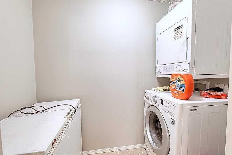 TOP FLOOR 850 SQ.FT. , TWO BEDROOM UNIT FEATURING EAST COVERED BALCONY ,TWO BATHROOMS , IN SUITE LAUNDRY , AND ONE TITLED PARKING STALL