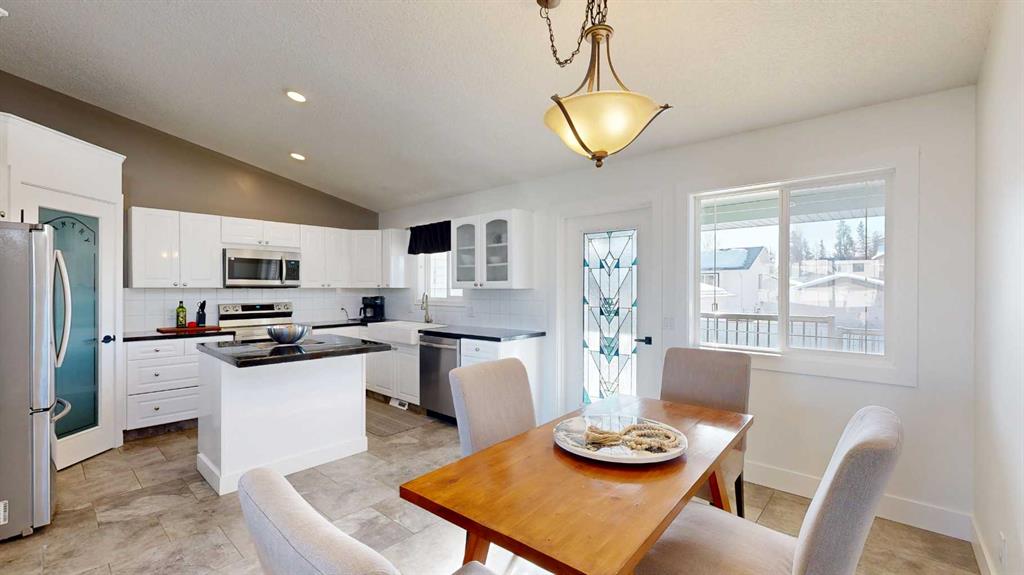 Spacious 1,282 sq ft bungalow with 5 bedrooms and 3 bathrooms. Open-concept main floor with vaulted ceilings and large windows for abundant natural light. Brand new carpet in the basement. Covered front and rear decks offer great outdoor living space. Large heated garage with 220 power, ideal for running shop equipment, welders, compressors, or future electric vehicle charging. Great location with playgrounds just steps away.