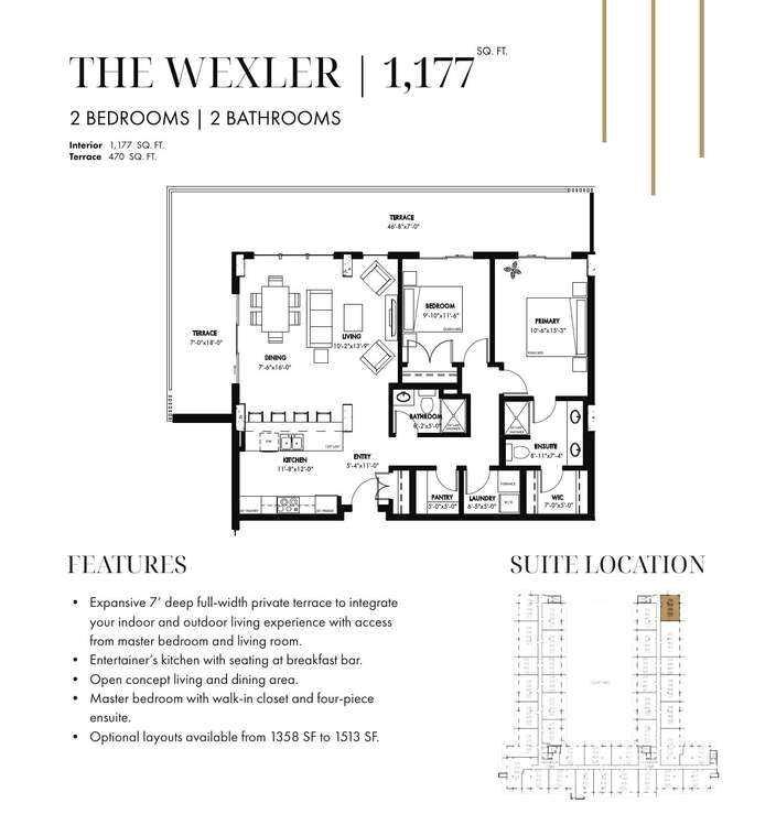 For more information, please click the "More Information" button. Discover a home that blends functional design with refined finishes, delivering a living experience that truly stands out. Enjoy seamless indoor-outdoor living with a spacious 7-foot-deep, full width private terrace. Accessible from both the primary bedroom and living room, this impressive outdoor space is perfect for relaxing, entertaining, or simply enjoying the fresh air. The contemporary kitchen is thoughtfully designed with a generous breakfast bard, providing ample seating for casual meals or social gatherings. The open-concept living and dining area creates a bright and welcoming environment, ideal for hosting guests or spending time with family. Photos contain digitally rendered and/or sample images.