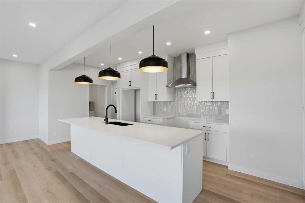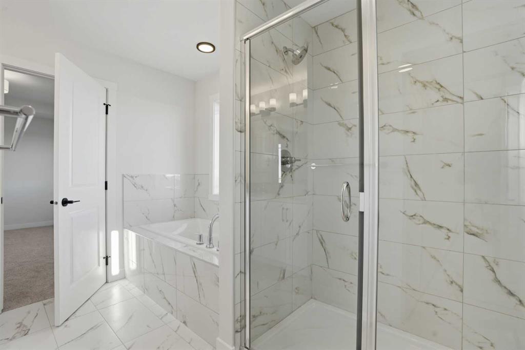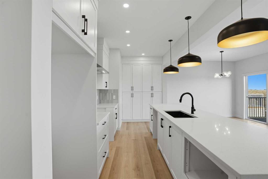 Brand New Home Built by Genesis Builders Group | 5% GST Rebate for Qualifying Buyer | Backing onto Greenspace | No Neighbours Behind | 2,185 SqFt | Main Level Bed & 4pc Bath | Chef's Kitchen | Spice Kitchen | Stainless Steel Appliances | Full Height Upper Cabinets | Quartz Countertops | Trendy Backsplash | Kitchen Island | Barstool Seating Area | Open Floor Plan | Recessed Lighting | Large Windows | High Ceilings | Electric Fireplace | 4 Upper Bedrooms (2 Primary) | 3 Upper Level Bathrooms | Walk-in Laundry Room | Unfinished Basement | East Facing Backyard | Deck | Front Attached Double Garage | Driveway | Incredible Location. Welcome home to your stunning brand new home built by Genesis Builders Group. This spacious 2-storey family home boasts 2,185 SqFt throughout the main & upper levels with an additional 871 SqFt in the unfinished basement. Full of top of the line finishes, this home is head to toe of sleek & modern design. Open the front door to a foyer with high ceilings & closet storage. Step into the home to your main level bedroom & 4pc bath which is ideal for a multi-generational family or for overnight guests! The open floor plan & high ceilings emphasize the vast size of the home. The kitchen is outfitted with sparkling quartz countertops, stainless steel appliances, full height cabinets, a trendy backsplash & a centre island with barstool seating. Keep this kitchen sparkling & use the spice kitchen which has a second stove & range hood & plenty of cabinet storage! The dining room is spacious & bright with morning light. The sliding glass doors lead to the rear deck with a BBQ gas line making outdoor cooking & dining easy! The living room is centred with an electric fireplace & TV ready wall above. Head up the staircase with a beautiful Iron & Spindle railing. The upper level has 4 additional bedrooms- TWO primary! The first primary overlooks the greenspace at the rear of the home. This bedroom has a 5pc ensuite & deep walk-in closet. The ensuite has dual vanities, a deep soaking tub, walk-in shower & private washing closet. The 2nd primary has a 4pc ensuite bath with a tub/shower combo. Bedrooms 4 & 5 are both a great size & share the main 4pc bath. The upper level laundry room is every home owner's dream as its located near majority of the bedrooms. Downstairs, the unfinished basement is a blank canvas giving you the opportunity for a custom space that fits your family's needs. The backyard is something to enjoy all summer long. With no neighbours behind, the greenspace is practically an extension of your yard for the kids to play. The Smart Home package provided to you is an added bonus to your convenience. The front attached double garage & driveway provide you with parking for 4 vehicles at any time. Genesis Builders Group follows the First-Time Home Buyer GST/HST Rebate to eliminate the 5% GST on qualifying new homes (up to $1 million) for qualifying first time home buyers. Hurry and book a showing at this gorgeous brand new Genesis home today!
