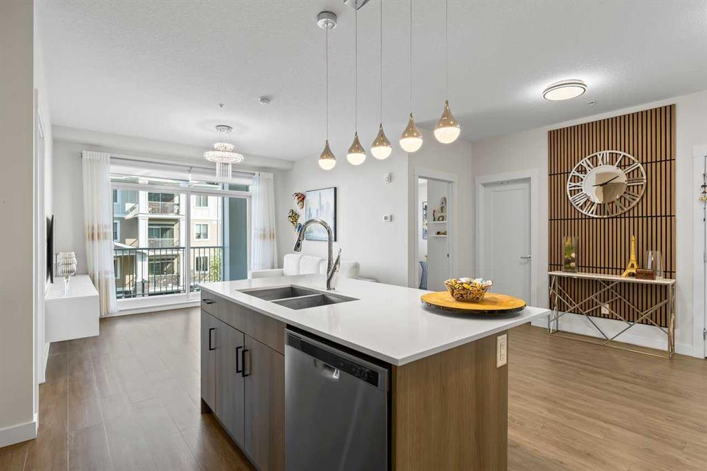 Welcome to your stylish oasis in the heart of Cranston – where modern living meets everyday convenience! This beautifully upgraded unit offers the feel of new construction without the price tag, and it’s just a 5-minute walk to scenic Cranston Ridge with quick access to the Bow River valley. Step inside to a spacious entryway that flows into a bright, open-concept living area. The heart of the home is a stunning kitchen featuring over $15,000 in upgrades – including sleek quartz countertops, modern stainless steel appliances, pendant lighting, and a HUGE island with seating for four. Durable vinyl flooring adds both beauty and function throughout the main space. Enjoy the privacy of a smart split-bedroom layout, with the primary suite boasting a large walk-in closet, dual sinks, upgraded shower, and extra cabinet storage. Big windows fill the space with natural light, and the living room opens directly to a large balcony – perfect for relaxing or entertaining. It also includes a titled parking stall just steps from the entrance. Ideally located near shopping, dining, and nightlife in the Seton commercial district. You're minutes from the Seton YMCA, South Health Campus, and six golf courses within a 10-minute radius. Whether you're an outdoor adventurer or a city dweller, this location truly offers it all!