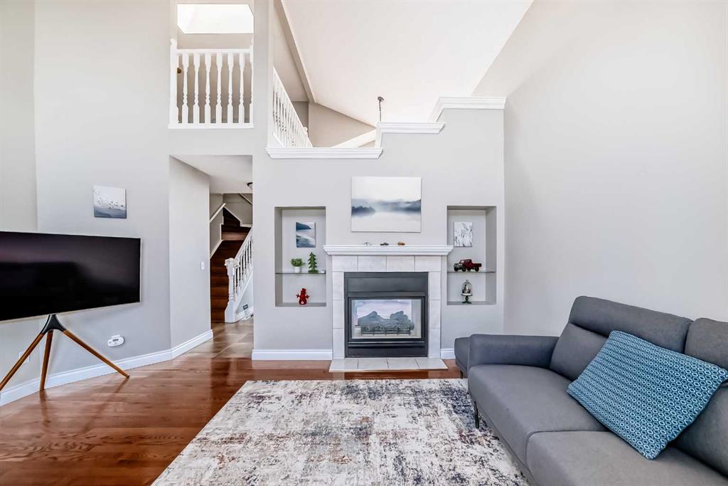 Renovated and well-maintained 4-bed, 4-bath family home on an oversized 43'×120' lot, just a short walk to three nearby schools (Catholic, Public & French Immersion). A dramatic 16-ft vaulted-ceiling living room fills the main floor with natural light, giving the home the open, airy feel of 2508 sqft of living space. The main and upper levels feature continuous hardwood flooring, including custom wood-matched vents for a seamless, high-end finish. Renovations (approx. 10 years) show beautifully and complement the functional family layout. The kitchen and main living spaces walk out directly to the backyard—perfect for easy indoor-outdoor living. Upstairs offers three bedrooms, including a spacious primary suite with two walk in closets. The fully-developed 9-ft basement provides a flexible rec/media area with retro-style gas fire place, an additional bedroom with ensuite 3pc Bathroom, spacious storage room. Major upgrades deliver long-term peace of mind: Class IV impact-rated roof (2025), new triple-pane multi-coated upper windows (Mar 2026), HWT (2020), new furnace motor (2023), high-end garage door opener with backup power (2025), and professionally painted exterior & deck (2026). The home also features central A/C, keeping the house comfortable during hot summer months. The attached double garage is EV-ready with a 30A plug—easy to step up to Level-2 charging. Located on a quiet crescent with quick access to pathways, parks, transit, Stoney, Shaganappi, and 14 St for a fast downtown commute. A rare combination of lot size, ceiling volume, updates, and walkability—move-in ready in one of NW Calgary’s most loved family communities.