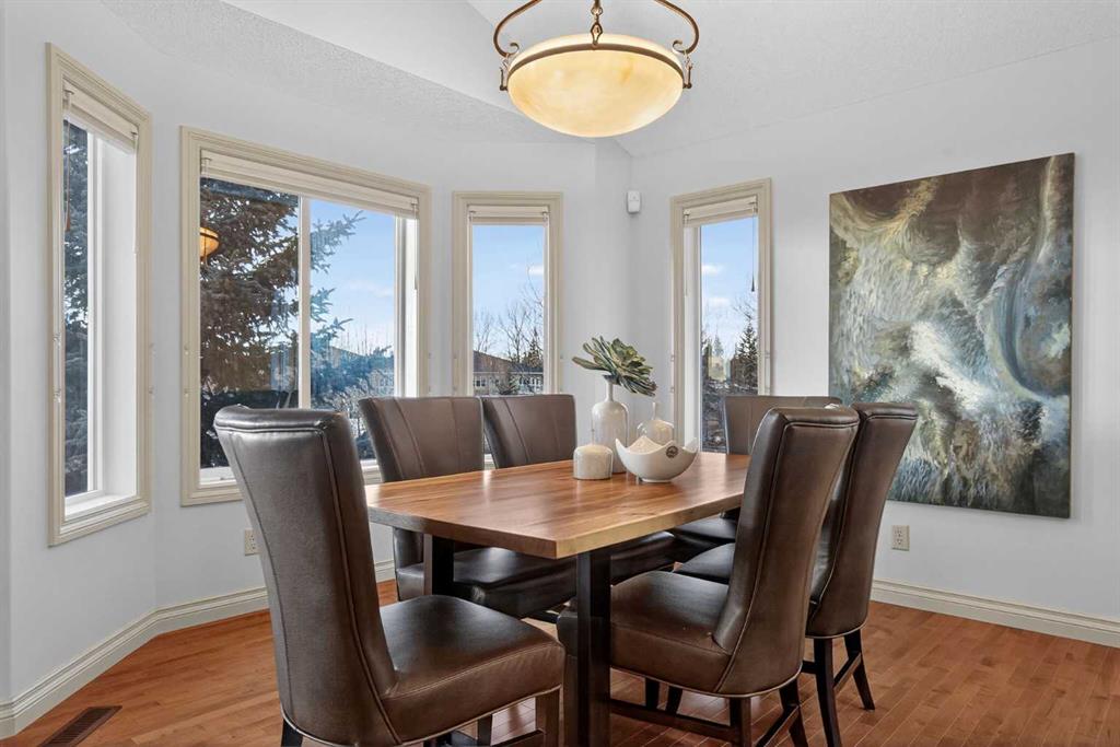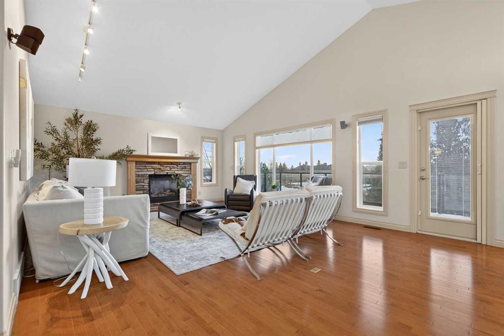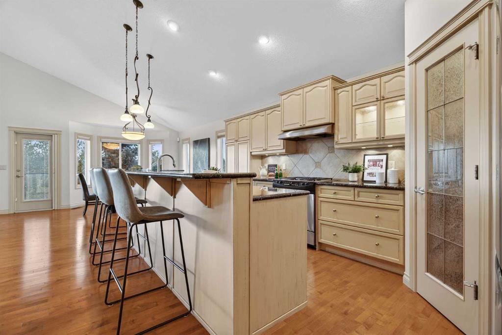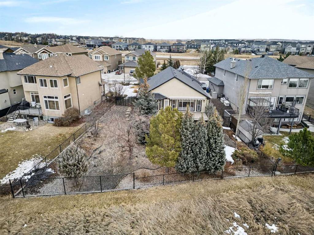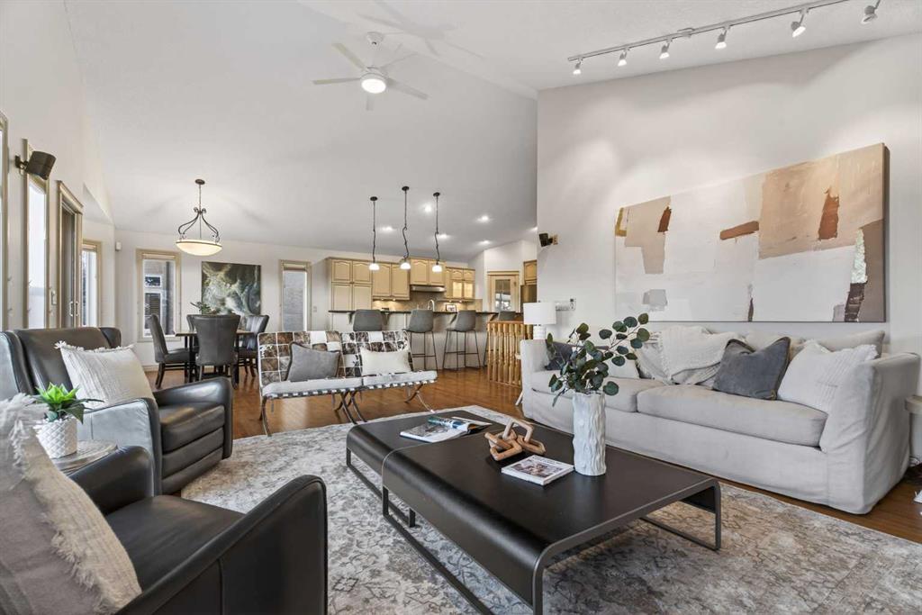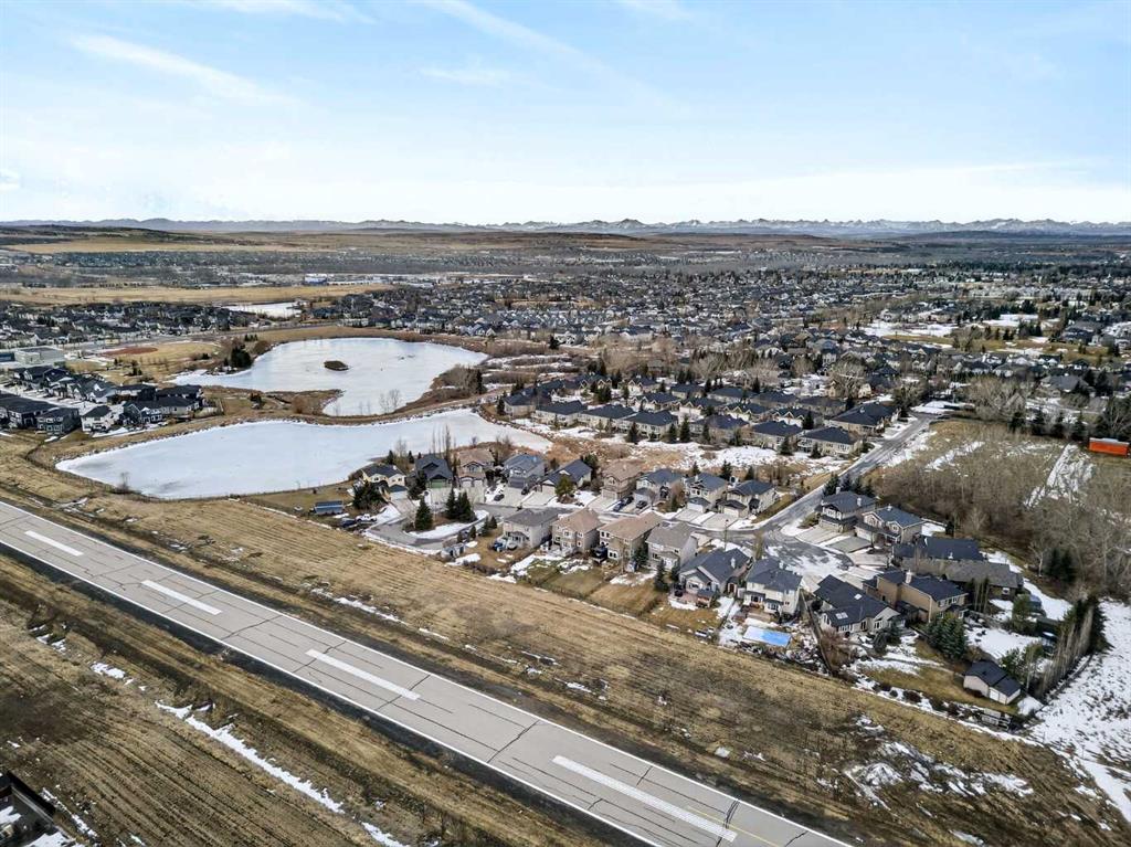 Sought-after EXECUTIVE walkout bungalow in the prestigious Air Ranch, offering breathtaking MOUNTAIN, pond, and environmental reserve views, plus unforgettable sunsets. It's a MUST SEE. Tucked away on a quiet cul-de-sac, this home features a sunny southwest-facing backyard with low-maintenance landscaping and perimeter fencing. The OVERSIZED heated double garage includes ceiling-mounted storage racks, storage lockers, and closets, while the charming front porch is enhanced with poured concrete walkways and patio stone accents. Inside, you’ll find a bright open foyer with direct garage access and a convenient 2-piece powder room. The front den/office showcases VAULTED ceilings and abundant natural light, and could easily function as a second main-floor bedroom. The spacious primary retreat offers vaulted ceilings, scenic views, a large walk-in closet, and a beautifully designed 4-piece ensuite with double sinks, custom vanity, and stand-up shower. A private ensuite laundry room with extra shelving and stacked washer/dryer adds everyday convenience. The open-concept design is ideal for entertaining, featuring a spacious kitchen with granite countertops, custom cabinetry, corner pantry, and stainless steel appliances. The expansive dining area flows into the bright living room with vaulted ceilings, gas fireplace, and patio doors leading to the massive back deck, perfectly positioned to capture the incredible VIEWS. Fresh paint throughout the main floor adds a crisp, modern feel. The fully developed walkout basement includes an expansive family/games room with direct access to a covered patio and beautiful south-west facing backyard with low maintenance landscaping HUGE LOT, plus a large lower-level bedroom, full 4-piece bath, additional hobby/storage space, and a massive utility/storage room with extensive shelving and POTENTIAL for another bedroom. A meticulously maintained home with hardwood flooring, vaulted ceilings, granite countertops, and timeless appeal. This is a NO PET home and a NO SMOKING home. A RARE offering in one of Okotoks’ most desirable neighbourhoods.