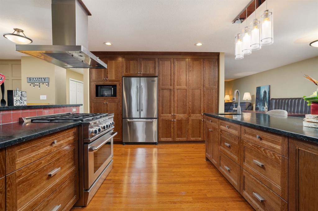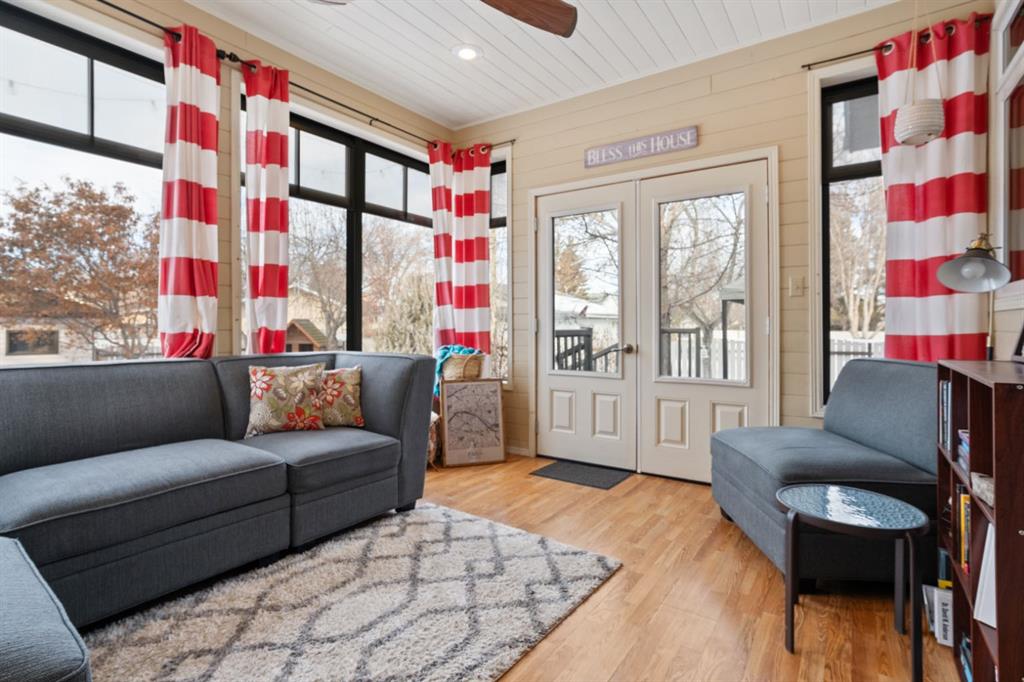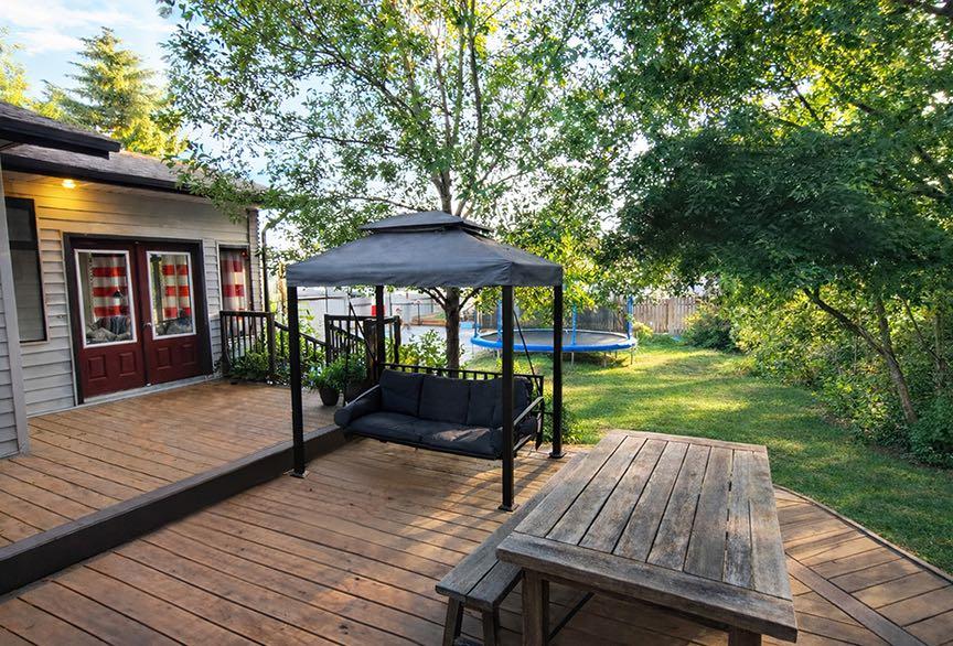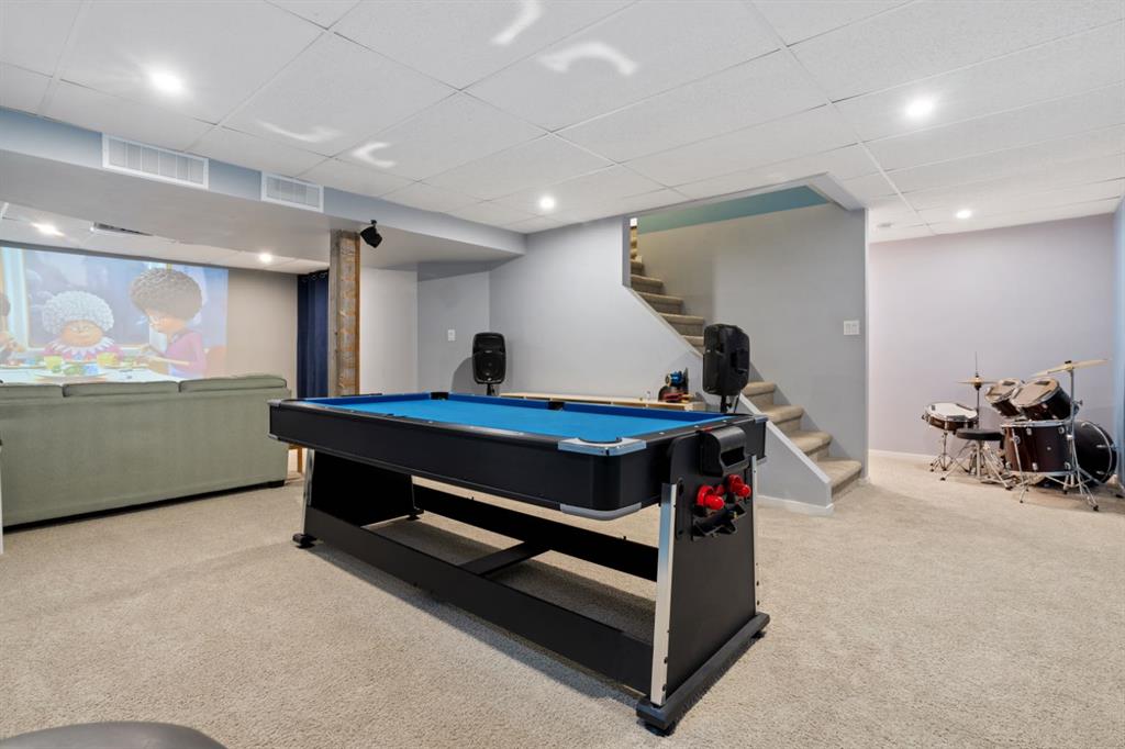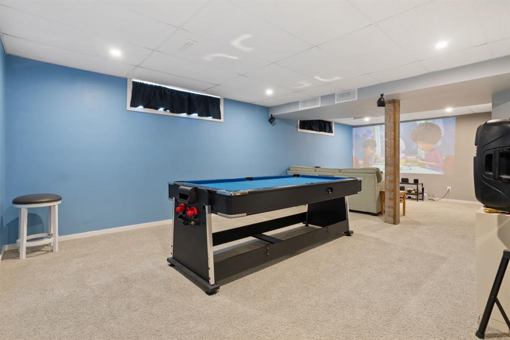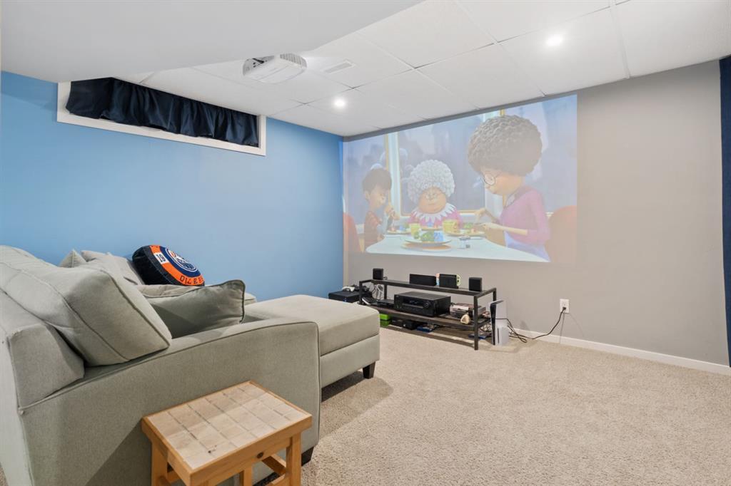 Welcome to this exceptional 2,106 sq ft two storey home with a double attached garage, perfectly positioned in an unbeatable family location. Backing directly onto a park and just steps from playgrounds and two elementary schools, this is a home where lifestyle and convenience truly shine. From the moment you step inside, the space is undeniable. Designed for entertaining on a grand scale, the living room and dining room comfortably accommodate seating for hosting holidays, celebrations, and gatherings of any size. The kitchen is a true chef’s dream, featuring beautiful soapstone countertops, a functional island, and an abundance of prep and storage space. Wrapped in windows and filled with natural light, the space is complemented by high end appliances, including an impressive gas stovetop that anchors the room. Whether cooking for family or a crowd, this kitchen delivers both style and function. Just off the kitchen, the family room offers a warm and inviting atmosphere, ideal for studying, relaxing, or basking in the glow of the wood burning fireplace, with deck doors leading to the beautiful tiered deck & yard. The main floor is complete with convenient laundry and a 2 piece bathroom. The stunning sunroom is sure to become your favorite space in the house. Surrounded by windows that all open to create incredible airflow, it is the perfect place to curl up with a book, relax, or entertain without worrying about bugs, rain, or wind. Upstairs, you will find four generous bedrooms, including a spacious primary retreat with a 3 piece ensuite, plus an additional 4 piece bathroom for the family. The fully finished basement adds even more versatility, featuring a bedroom, rec room, and a 3 piece bathroom, perfect for guests, teens, or extended family. Outside, the backyard is truly next level. a stunning deck will be your outdoor retreat while cheering the kids on the custom basketball court, designed to full high school three point distance with additional space beyond the line, featuring professional grade tiles, an NBA size adjustable hoop and fence that can be removed if desired. High quality weatherproof Bluetooth speakers are installed in custom enclosures and connect directly to the sunroom, creating an incredible indoor outdoor entertaining experience. This home is equally impressive when it comes to entertainment and technology. With premium surround sound systems on both levels, and a dedicated basement media setup with a short throw projector and a custom painted theatre style screen spanning 10 feet diagonally. The home is also wired for Ethernet in several rooms, providing fast and reliable connections for work, gaming, or streaming. This is a rare opportunity to own a home that offers incredible space, thoughtful design, premium features, and a location that is hard to beat. A true lifestyle property that must be experienced to be fully appreciated.