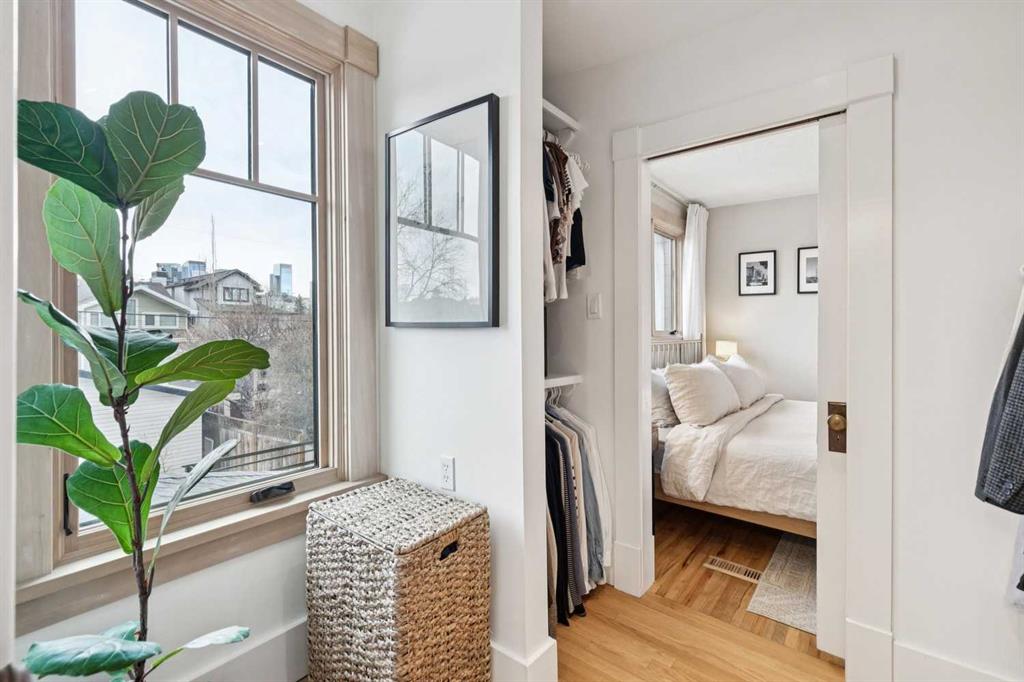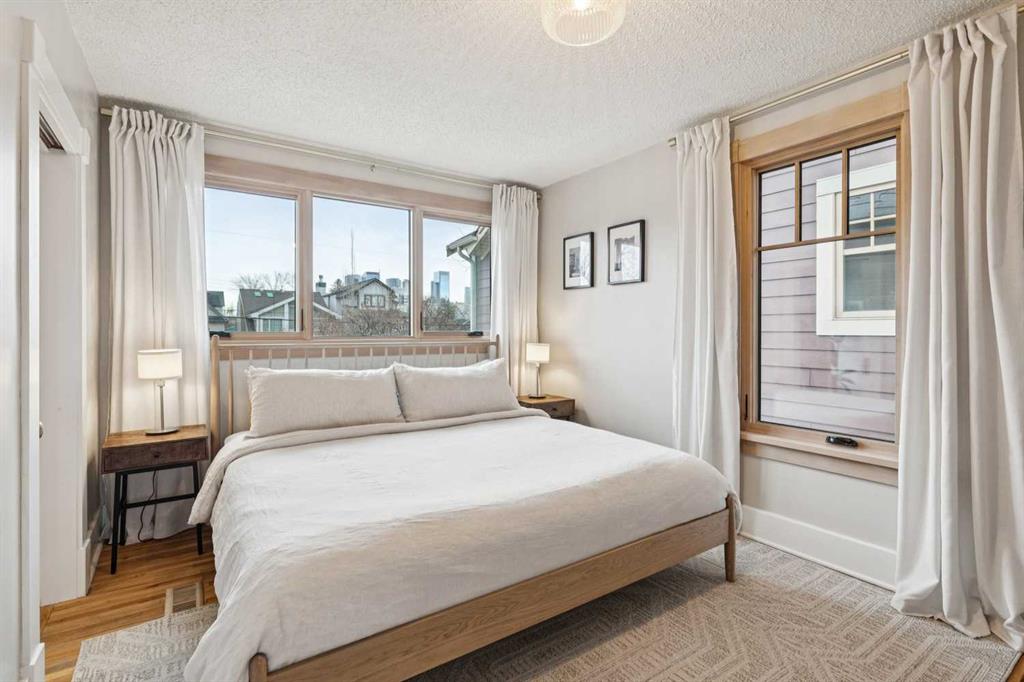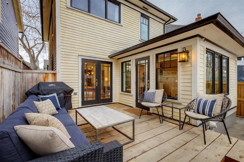 Open House Sat Feb. 14th 1-3pm! Located on the highly desirable 300 block of 11A Street NW in the heart of Hillhurst “proper,” this exceptional property offers an unbeatable inner-city lifestyle as it is just steps from Calgary’s iconic Kensington shopping district, the Sunnyside LRT Station, Riley Park, & the Bow River Pathway System, is within easy walking distance to Hillhurst & Queen Elizabeth Schools, & Downtown is a quick 20-minute walk, it doesn't get more convenient. Situated on a generous 30 x 125 ft lot, this beautifully restored 1912 character home offers >2000 sq. ft. of living space, seamlessly blending heritage charm with extensive modern upgrades. Original details have been thoughtfully retained, including maple & oak hardwood floors, original balusters, & heritage millwork, now complemented by new custom Lux wood windows throughout, improving energy efficiency while remaining true to the home’s historic character. The main floor features a welcoming living room & a spacious dining area with double French doors opening to a large, multi-tiered deck, perfect for entertaining. The modern galley kitchen is well-appointed with a Viking gas range with griddle, Miele dishwasher, newer refrigerator with ice maker, white quartz countertops, a double farmhouse sink, & ample prep space. Just off the kitchen, a cozy nook with a wood-burning stove & built-in desk provides an ideal work-from-home or reading retreat. Upstairs, you’ll find three bedrooms, including a serene primary retreat offering downtown views, a walk-in closet, & a private ensuite with new vanity. The fully developed basement delivers a contemporary feel with a large entertainment room, full 3-piece bathroom, dedicated office, & laundry room. New carpet lends warmth to the space. This home has undergone substantial mechanical & infrastructure upgrades, including: new 200-amp electrical panel, updated plumbing with all Poly-B removed & replaced with PEX, replacement of original lathe & plaster, & updated main sewer line. Comprehensive insulation upgrades include fiber-glass insulation in all above-grade exterior walls, soy-based spray foam in the basement, & R-50 attic insulation Comfort & efficiency are enhanced by a 92% high-efficiency furnace with Nest thermostat & a Navien on-demand hot water system. Additional upgrades include meticulously refinished interior doors & fresh paint throughout. Outside, enjoy the rebuilt two-tiered deck constructed from salvaged heavy cedar timbers, along with new front & rear landscaping, thoughtful uplighting, new aggregate concrete patio & walkways, & new fencing. Completing the property is a new oversized double garage (insulated, drywalled & heated) with a fully equipped custom workshop, featuring a foldaway work table, large built-in work surfaces with French cleat storage system, & wall-mounted bike storage. A rare opportunity to own a thoughtfully upgraded character home in one of Calgary’s most coveted inner-city communities. Call for more information!