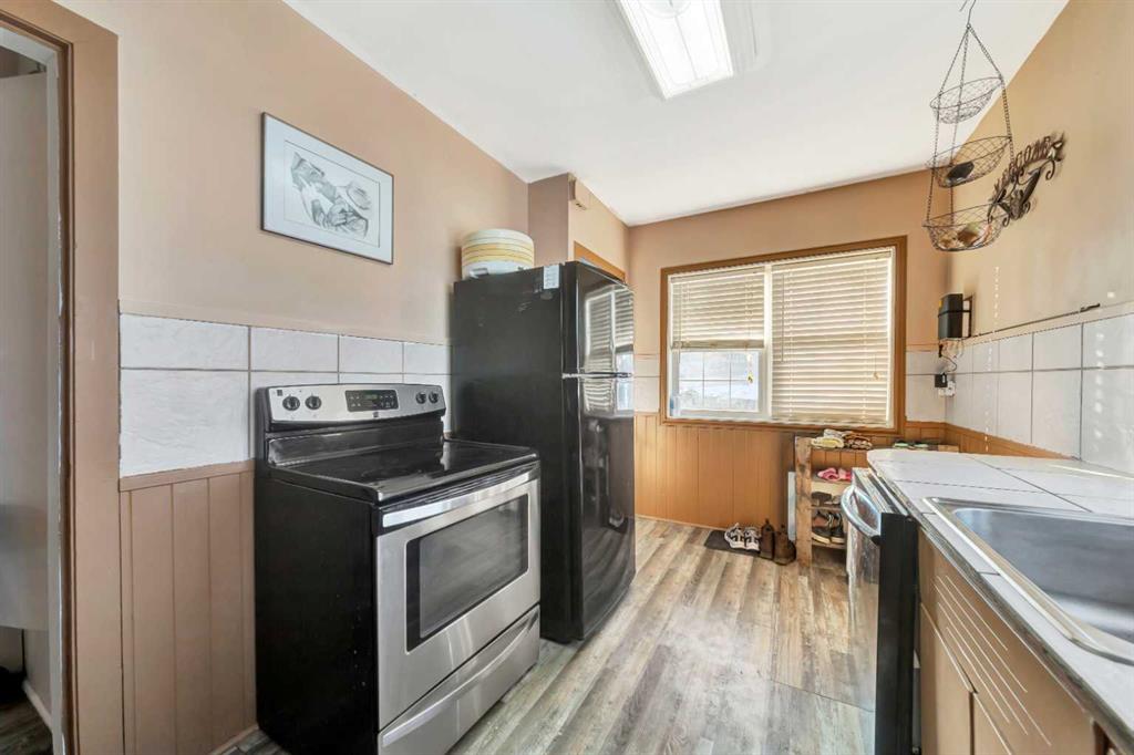 Great opportunity for first-time buyers or investors! This corner-lot property is ideally located just a short walk from the golf course, school and main street. The fully fenced yard is perfect for kids and pets, and the 19' x 14' detached garage provides great storage for vehicles, tools, or recreational toys. Inside, the home features a functional layout with two well-sized bedrooms on the main floor, an updated bathroom, a spacious living room, and updated flooring throughout. The basement offers excellent potential for future development, with space for an additional bedroom and family room, plus existing laundry and a cold storage area. This affordable, well-located home offers plenty of potential!