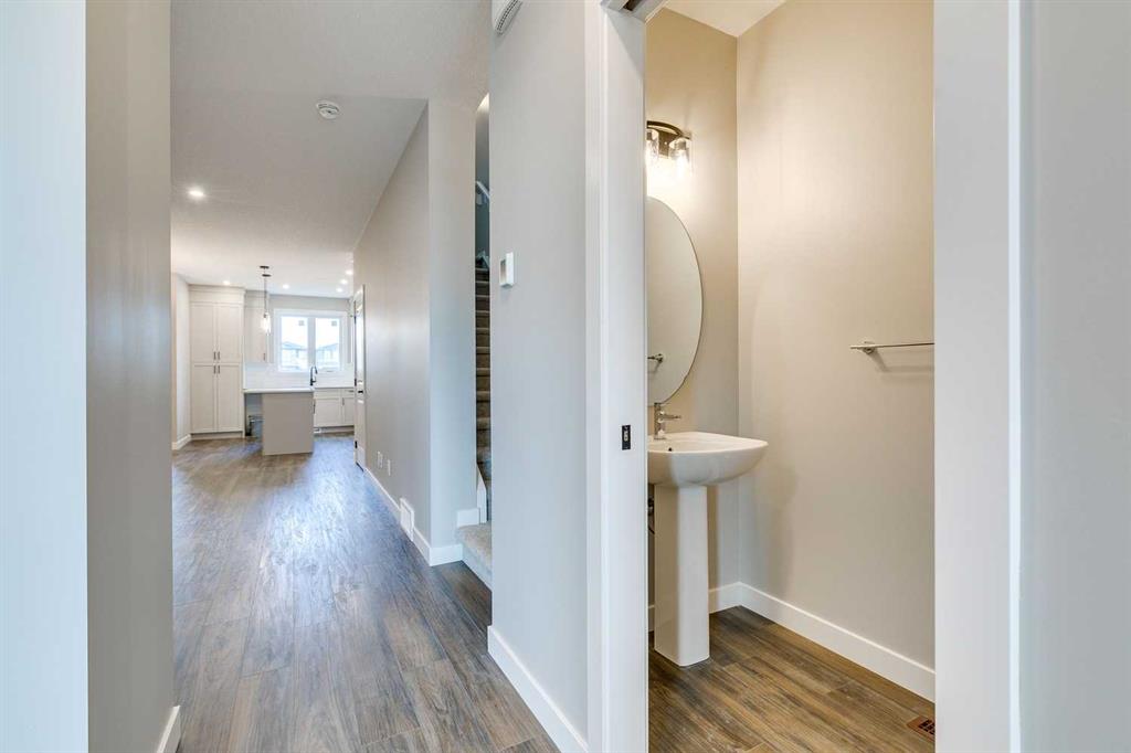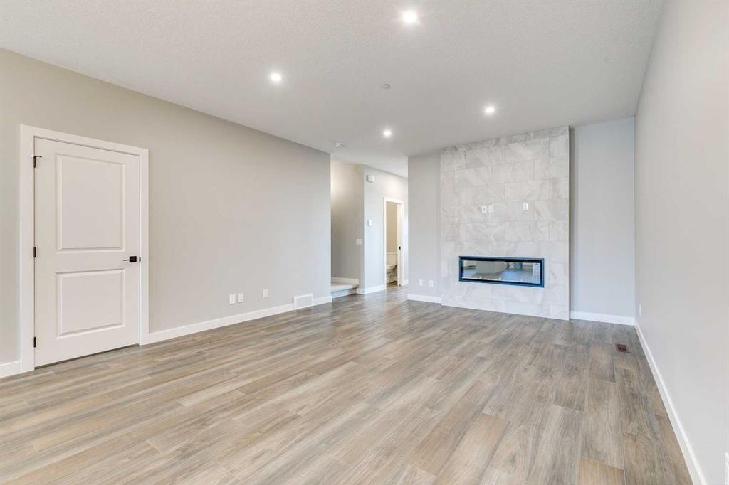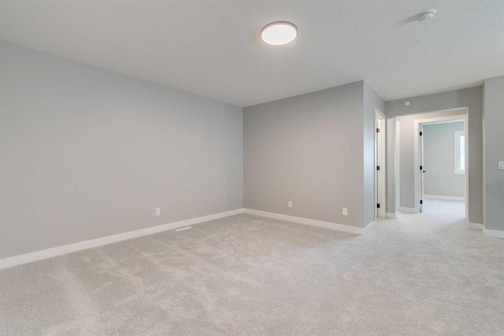 Welcome to the Elliot by Broadview Homes, a thoughtfully designed new construction home located in the southeast Calgary community of Hotchkiss. Offering a functional layout with a main floor flex room, side entrance, upper-level bonus room, walk-in closets in every bedroom, and basement rough-ins for future development, this home is built to support both everyday living and long-term flexibility. Step inside from the covered front porch to a versatile front flex space, perfect for a home office, playroom, or quiet workspace. The main level features an open-concept design with a bright kitchen at the center, complete with a large island, ample cabinetry, and excellent flow into the dining area. The spacious great room is ideal for relaxing or entertaining, highlighted by an electric fireplace with stunning floor-to-ceiling tile detail that creates a striking focal point. A convenient powder room and a practical rear entry with a generous closet complete the main floor. The side entrance leads directly to the undeveloped basement, with rough-ins already in place, creating outstanding potential for future additional bedrooms, a home gym, or extended living space. Upstairs, the layout is both smart and family-friendly. Two secondary bedrooms, each with their own walk-in closet, are separated by a central bonus room that works beautifully as a media space, homework zone, or second lounge. A dedicated upper laundry room adds everyday convenience. The primary suite offers a private retreat with an oversized walk-in closet and a full ensuite. Located in Hotchkiss, one of Calgary’s newest master-planned communities, residents enjoy access to mountain views, expansive green spaces, and scenic boardwalk pathways surrounding a 30-acre wetland. With future parks, schools, and shopping planned nearby, plus quick access to Stoney Trail and Highway 22X, you’re only minutes from Seton, the YMCA, South Health Campus, and major amenities. An excellent opportunity to own a brand new Broadview home in SE Calgary, offering modern design, flexible living space, and future development potential.