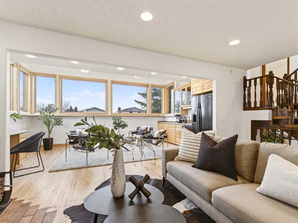 *OPEN HOUSE, SAT FEB 14 FROM 12-2* Welcome to Ranchlands Estates, where nature, privacy, and unique design come together in this truly one-of-a-kind residence offering over 3,200 sq ft of developed living space. Are you tired of seeing cookie cutter homes? Come and explore for yourself this incredible home backing directly onto an off-leash environmental reserve with expansive green space! This home is a rare sanctuary for those who value tranquility, privacy, and a connection to the outdoors. Upgraded over the years completely redone exterior featuring timeless stucco and stone, mature landscaping, underground irrigation, and a 50-year cedar shake roof. Recent improvements include over $5,000 in electrical upgrades (January 2025) with a new panel and sub-panel (updated in 2011). Additional highlights include two thoughtfully integrated additions, VOLA fixtures in all bathrooms, heated floors in the upper bathrooms, a fenced dog run, and so much more. The kitchen offers granite countertops, maple cabinetry, and a picturesque outlook onto the yard, while the adjacent dining room provides generous space for family dinners and gatherings. The main floor is complete with a laundry room, powder room, and access to a side deck perfect for summer barbecues. Upstairs, you’ll find a unique bedroom with vaulted ceilings and abundant natural light, ideal as a home office or creative space. In total, the home offers four bedrooms and 2.5 bathrooms, providing ample room for family and guests. The lower level adds versatile flex space perfect for an additional bedroom, gym, playroom or media room tailored to suit your lifestyle!