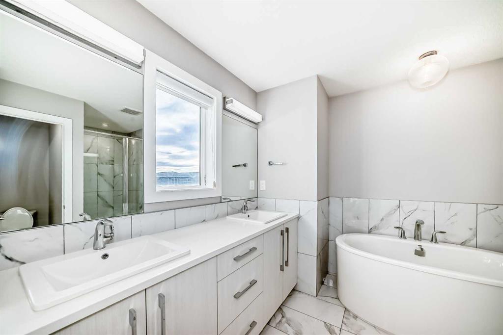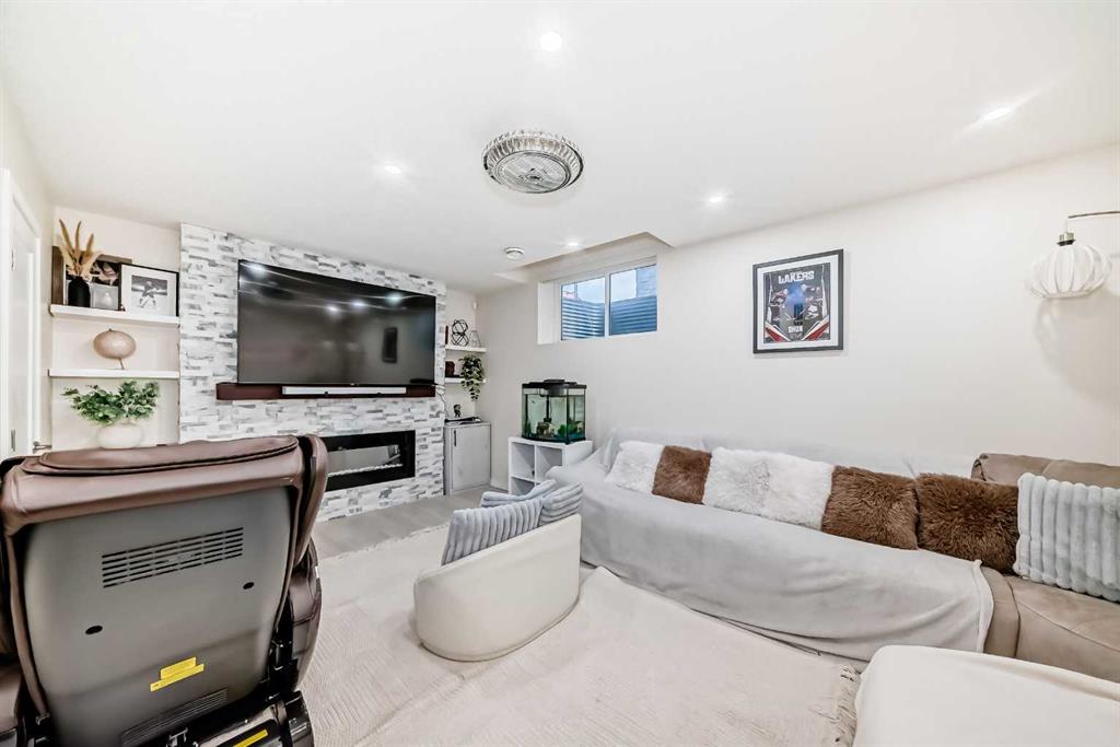 Welcome to luxurious living in the heart of Chelsea, one of Chestermere's newest and most desirable communities. This stunning 2-storey FULLY FINISHED detached home with TOTAL OF 4 BEDROOMS, 4 BATHS, a FIREPLACE, AC SYSTEM & DOUBLE DETACHED GARAGE is ready for you. As you enter, you'll notice the meticulous attention to detail and modern design. The main floor features an open-concept layout, connecting the living, dining, and kitchen areas seamlessly. The spacious kitchen includes quartz countertops, stainless steel appliances, a coffee bar, and a large island perfect for entertaining or casual family meals. Upstairs, you'll find three bedrooms, including a primary suite with an upgraded 5-piece ensuite, offering a spa-like retreat.The upper level also includes 2 GOODSIZED BEDROOMS , 4 PC BATHROOM and a convenient laundry facilities. The property also features a MEDIA FEATURE WALL in the MAIN LIVING ROOM & LIVING ROOM in the basement with DESIGNER FIREPLACE. TOP OF THE LINE WINDOW COVERINGS including A REMOTE SLIDING WINDOW COVERING in the basement. Enjoy your ALL YEAR ROUND LIGHTS with SMART EXTERIOR LED LIGHTING. CENTRALIZED AC for comfort, convenience and ease in the summer time. Offering easy access to green spaces and recreational activities. Future plans for the area include an elementary and high school. Chelsea - an award-winning community in Chestermere only 5 minutes away from Calgary offering a perfect blend of trails, ponds, and access to small to medium size commercial spaces. East Hills Mall and it's many restaurants and big-name retailers like Walmart and Costco are only 8 minutes away. The Chestermere Lake is also 8 minutes away with amazing water activities that will take your summer days to the next level. Contact us today to schedule a viewing and experience modern living in Chestermere !