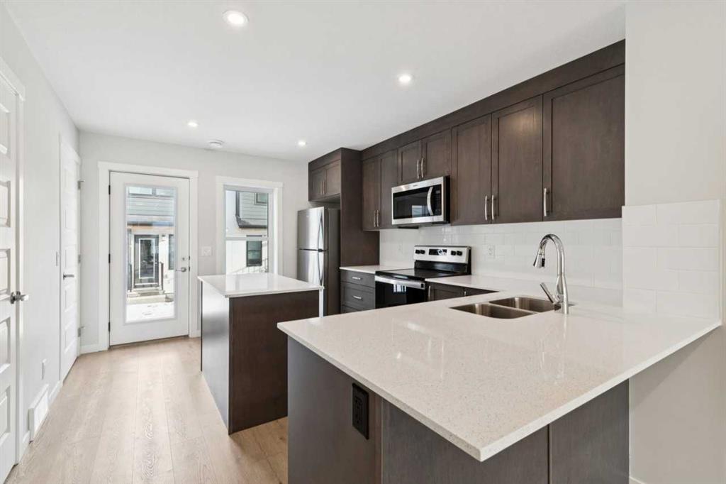 Modern Comfort in Calgary’s Premier Lake Community - Welcome to this stylish two-storey townhome in the heart of Calgary’s sought-after lake community. Thoughtfully designed for both everyday living and entertaining, the open-concept main floor seamlessly connects the kitchen, dining, and living areas. The modern kitchen has stainless steel appliances, an island with quartz countertops, and plenty of storage. Upstairs, you’ll find two spacious bedrooms, each with its own ensuite and generous closet space, offering both privacy and convenience. A dedicated upper-floor laundry area adds to the home's everyday functionality. Built to exceed today’s standards, this ZEN home offers 40% more insulation than required by code, resulting in a quieter, warmer, and more energy-efficient living experience. Triple-pane, double-coated windows, a high-efficiency HRV (Fresh Air System), and extra airtight construction improve indoor air quality, durability, and resiliency.