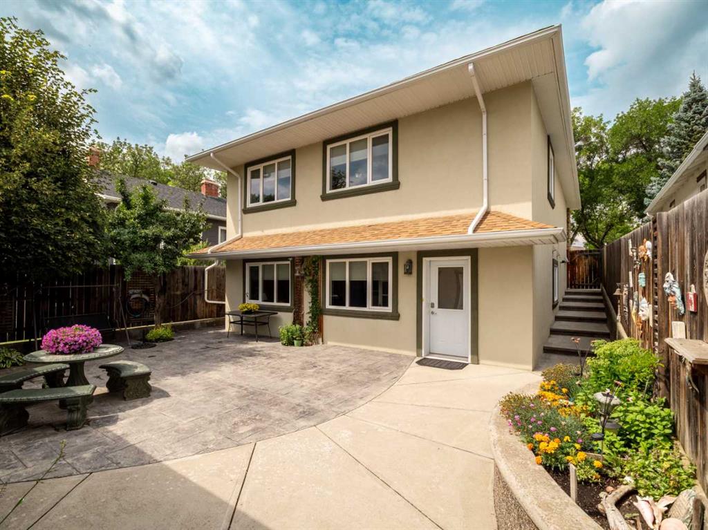 Rare opportunity to own a thoughtfully designed walkout bungalow on coveted 7 Avenue South—nestled in one of Lethbridge’s most historic and desirable neighbourhoods. Just steps from Henderson Lake, Spitz Stadium, the outdoor pool, tennis courts, schools, the regional hospital, and more, this home offers the best of lifestyle and location. Inside, you’ll find four spacious bedrooms, two full bathrooms, and a convenient half bath. The open-concept kitchen features a raised eating bar—perfect for entertaining or casual dining. Built with energy efficiency in mind, this home boasts ICF construction to the roofline, passive solar design, in-floor heating roughed in (lower level), and new hot water tank. The walkout basement includes a wet bar and opens to a custom-stamped concrete patio and low-maintenance backyard oasis with garden irrigation—ideal for relaxing or hosting. A double detached garage with 10' doors and an additional flex room provides plenty of space for a workshop, studio, or storage. Additional features include central A/C, central vac with attachments, and underground sprinklers. Located along a bike lane corridor, the street benefits from slower traffic—adding to the peaceful charm of this exceptional home.