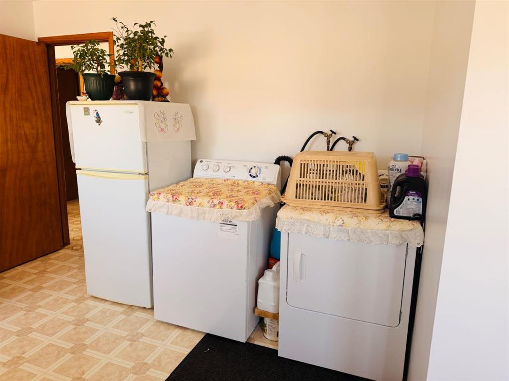 Welcome to the charming hamlet of Enchant Alberta. Located between Lomond and Vauxhall, it offers a school, library, bank, restaurant, camp ground and a golf course to name just a few. Here you'll find a bungalow with over 1,500 sq ft and a full basement, room for the whole family! Enter into a large foyer with laundry, room for freezers and a conveniently placed 2pc bathroom. From there you'll head into the kitchen passing a bedroom and 4pc bathroom. The dining and kitchen are open to each other making dinner time more enjoyable. Relax in the expansive living room that features A/C to keep you cool in the summer. Off the living room are 3 more bedrooms and the basement has a large 4th one ready. Complete the rest of the basement to your liking by adding in more bedrooms are carpeting the large open family room with 2pc bathroom started for you. Enjoy the sunsets on the front deck that runs the whole length of the home with no neighbour to the west of this corner lot. A metal roof has been installed, a brand new water tank as well and the furnaces have recently been checked and approved. If you're looking for a quiet place to raise a family, look no further!