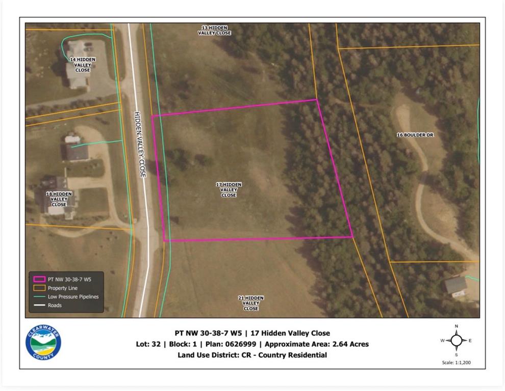 Welcome to 17 Hidden Valley Close, a beautiful bare parcel located in the sought-after Cougar Ridge Estates, less than 15 minutes southwest of Rocky Mountain House. This executive rural residential subdivision features paved road access right to the driveway, offering year-round convenience and a refined, upscale setting. Ideally situated just off Highway 752, the property provides an easy commute into town while placing you minutes from Cow Lake and the endless recreation opportunities of the West Country. Whether you’re envisioning a custom country home or a peaceful retreat, this location offers the perfect blend of privacy, scenery, and accessibility. Services including power and natural gas are available at the property line, helping to simplify the building process. Enjoy the freedom to design your ideal home in a quiet, well-planned subdivision surrounded by nature, yet still close to town amenities. An excellent opportunity to build in one of the area’s most desirable rural communities.