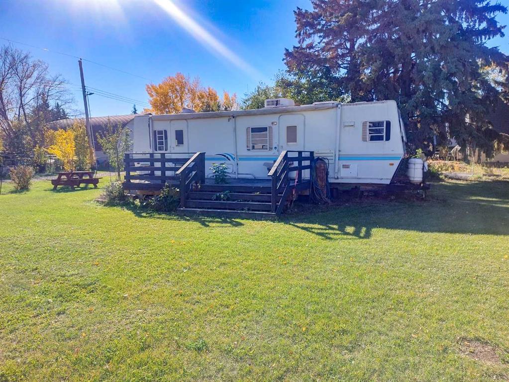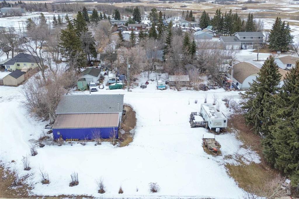 This unique property offers three adjoining lots in the quiet village of Donalda, providing flexibility, space, and a peaceful setting. One lot features a large, well-equipped shop with two garage doors, a furnace, hot water, wood stove, bathroom, overhead storage, and ample cabinetry. The shingles on the shop were done in 2021. The shop has a 15'8'x40' lean-to that provides additional covered storage space—ideal for equipment or recreational toys. The second lot includes an RV with deck, perfect for weekend getaways or temporary accommodation while you plan your future build. Trees have been planted on the property, adding privacy and charm. The location is a standout, with an open field to the north and no residential neighbors in that direction, creating a sense of openness and tranquility on a quiet street. Donalda is a welcoming village located approximately 25 minutes from Stettler, making for an easy commute while still enjoying small-town living. The community offers a K–9 school and is nestled along the scenic coulee, known for its beautiful views, hiking opportunities, and birdwatching. Whether you are looking to build a new home, place a mobile or RTM home, or simply secure a peaceful retreat away from the city, this property presents an excellent opportunity in a picturesque Alberta village.