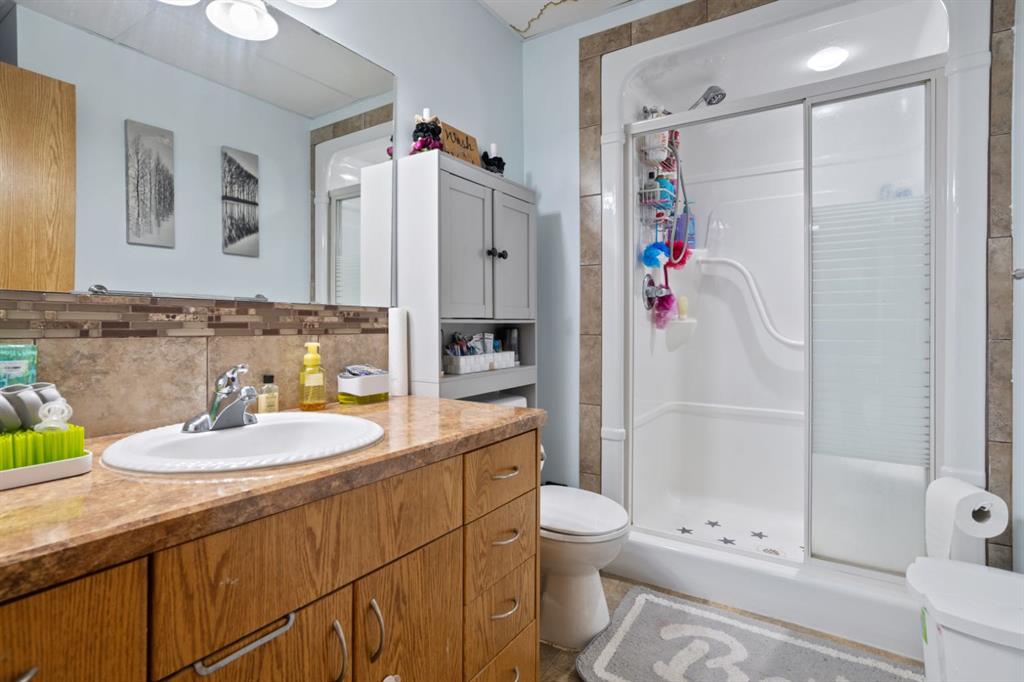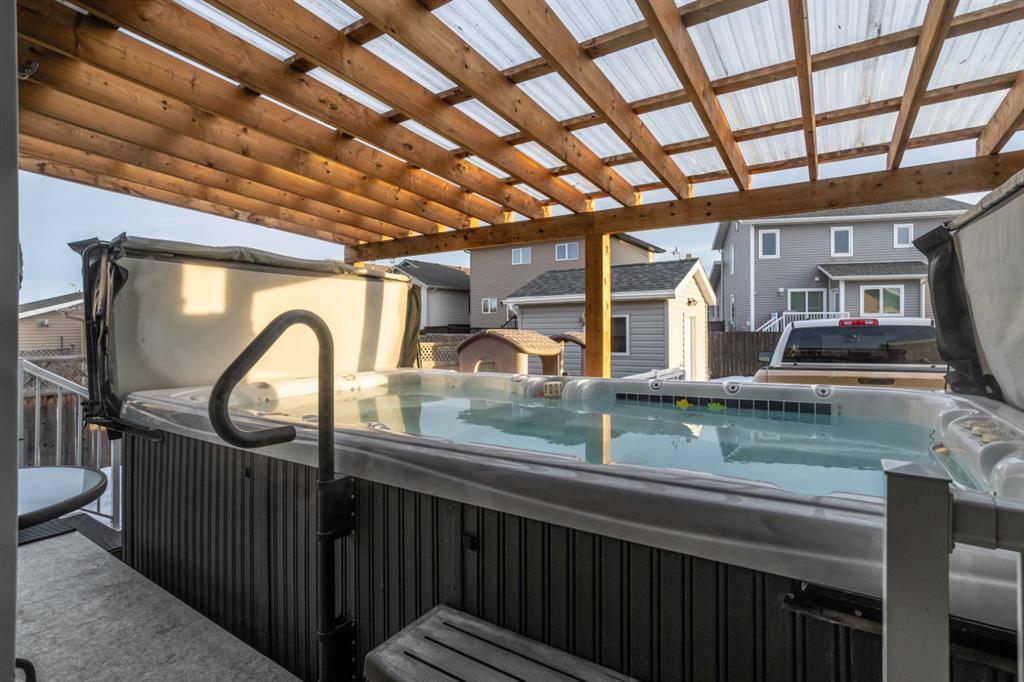 Quality Bungalow in a quiet area of Southwest Meadows. Close to West-end Amenities, walking trails and parks! Wonderful Bungalow design with excellent 20x30 Rear Drive Heated Garage and oversized driveway with tons of parking. This home sees an emphasis on One Level living with few stairs from the garage into the home, wider hallways and a Main Floor Laundry Room. It comes with 4 dedicated bedrooms with the potential for up to 6 if you count the office and nursery in the basement (no closets). Nice open concept design sees a front kitchen with wrap around cabinetry, pantry with pullouts and a raised eating bar. The Dining Room and Living Room share a space and give many options for all your families needs. From the living room is a wonderful, no maintenance 10x19 covered deck with gas bbq and a next to new Swim Spa (included!) with gazebo cover - perfect as a hot tub in the winter or turn the heat down and have your own private pool at home in the Summer. Main floor sees a large primary bedroom with walk-in closet and private 3pc ensuite; as well as the 2nd bedroom, laundry room and current office with many uses. Basement comes fully finished with infloor heat and sees 2 living areas, 2 additional bedrooms and a nursery that could provide additional bedroom space if needed; rounding out the basement is a 3pc bathroom and large Utility room with excellent storage. This home is also equipped with Triple pane windows, AC and newly installed Hot Water on Demand plus an HRV unit. The 20x30 Garage comes fully finished and heated with tons of storage and even a wash sink by the entry. The yard is very manageable, partially fenced and even comes with a 10x10 shed for extra storage. Have a look!