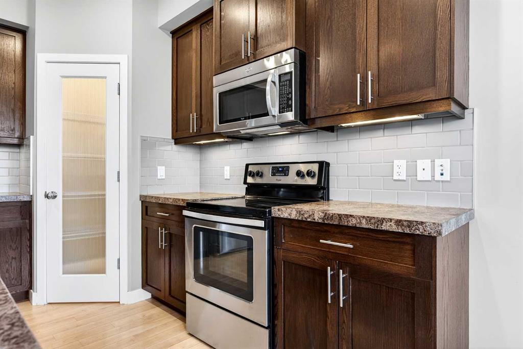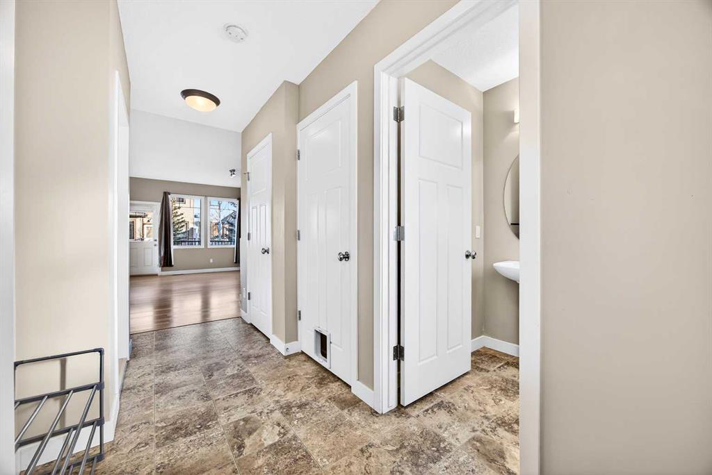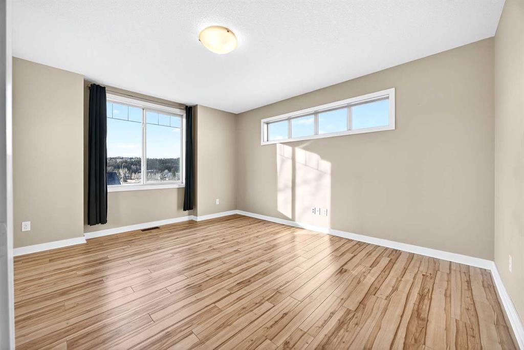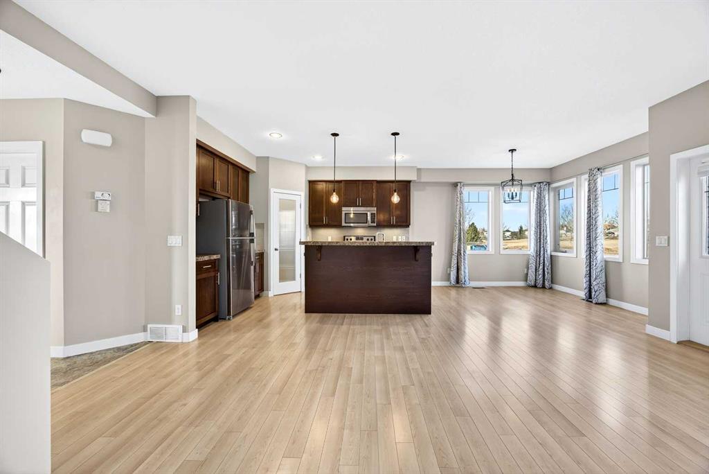 CORNER LOT | DOUBLE ATTACHED GARAGE | AMPLE WINDOWS | 4 BEDROOMS | GOLF COURSE VIEW! Enjoy all of these amazing features of this beautiful end unit town house featuring a multitude of space and convenience in River View! Situated directly beside the COCHRANE GOLF CLUB, this gorgeous town house offers a tranquil setting inside the development surrounded by a ton of greenspace! Enter into a sizeable foyer discreetly housing the half bath on one side and garage entrance door on the other. Ahead, enter into a spacious and bright OPEN PLAN featuring a fabulous KITCHEN with a CORNER WALK IN PANTRY, LARGE ISLAND WITH BREAKFAST BAR AND PENDANT LIGHTING, FULL HEIGHT WOOD CABINETRY with UNDER CABINET LIGHTING, NEWER STAINLESS STEEL APPLIANCES and tons of counter space for meal preparation. The DINING ROOM is surrounded by large windows highlighting the serene view of the beautiful grounds of the golf course with easy access to the deck with gas line for easy grilling! Directly across is the roomy LIVING ROOM with GAS FIREPLACE and ample room for larger furniture for comfort and entertaining. The UPPER LEVEL features the PRIMARY BEDROOM with gorgeous laminate flooring, 4 PIECE ENSUITE BATH with a soaker / jet tub, sink with extra counter space, shower with rainfall showerhead and LARGE WALK IN CLOSET. Two ADDITIONAL BEDROOMS are both a great size and feature a double door closet for the young fashionistas in the family! An additional 4 PIECE BATH and LAUNDRY with FULL SIZE STACKED WASHER and DRYER complete this level. Still need additional space for your family.......enjoy the FULLY DEVELOPED LOWER LEVEL featuring a great sized FAMILY ROOM - RECREATION AREA, 4TH BEDROOM, 4 PIECE BATH, UTILITY ROOM and additional STORAGE AREA! THIS TOWNHOUSE IS LOADED and offers phenomenal value in sought after River View! Surrounded by all levels of amenities, shopping, schools, professional services, golf, ball park and easy commutes to major highways, this exceptional home is perfect for a family large or small. COME SEE.....