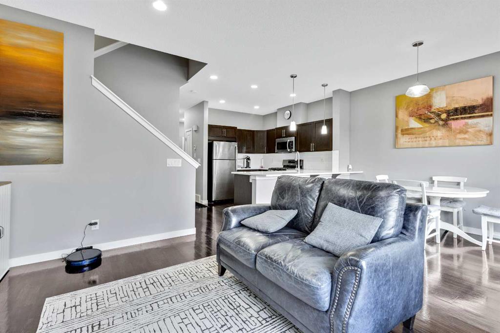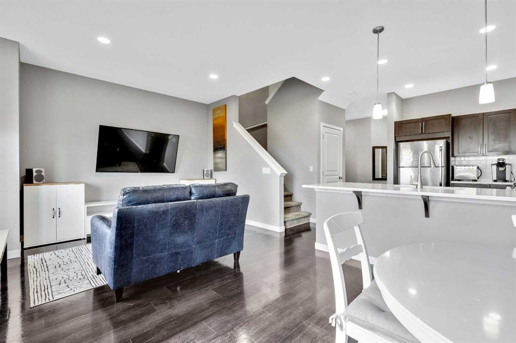 Welcome to unit #1603 located at The Sonoma of Sage Hills! This bright and beautiful three-bedroom unit backs onto a scenic ravine, offering privacy, natural views and clear pride of ownership throughout. Featuring three full bathrooms plus a convenient half bath, this home combines thoughtful upgrades with functional living space. There is a bright and open main living area with a well-appointed kitchen featuring stainless steel appliances, gas range and quartz countertops. There is also additional flex space on the main floor, perfect for a home office or sitting area. There are three bedrooms on the second floor, including the spacious primary bedroom complete with a private ensuite bathroom and a walk-in closet. There is an additional full bathroom to serve the other two bedrooms on this floor. The lower level is very bright and inviting featuring upgraded "sunshine package" windows allowing in a plethora of natural light. The basement was professionally finished with extra insulation for added comfort, quiet and energy efficiency. The basement also includes a spacious, functional laundry room and excellent storage options. Recent upgrades include: a newer furnace (2023), and a newer garage door and opener. Conveniently located near ample shopping, walking paths and everyday amenities, with two new schools approved for the community- this property will appeal to a wide range of lifestyles and needs.