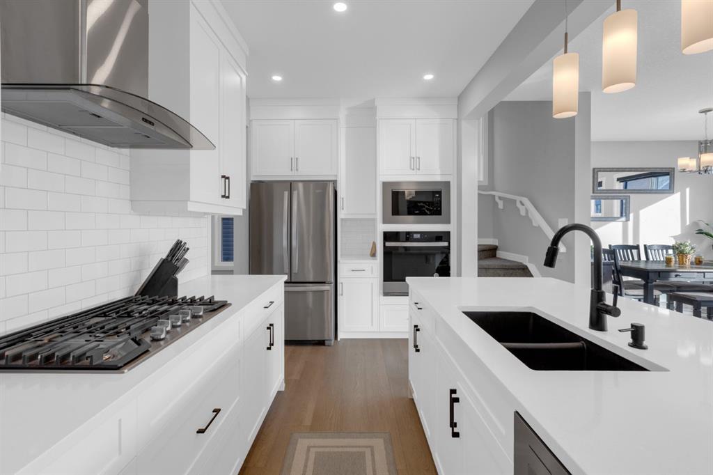 OPEN HOUSE - Sunday, March 29th at 2-4pm. Welcome to this EXCEPTIONALLY UPGRADED detached home in the desirable, LUXURY neighbourhood of PRECEDENCE, where picturesque views & architecture meet everyday convenience and stunning NATURAL SURROUNDINGS! With over $110k in UPGRADES INSIDE & OUT, step inside to discover thoughtful enhancements that set this, 2484 sq ft (above grade), home far apart from typical spec-built homes. The main floor impresses with a grand entrance including a handy HOME OFFICE/DEN space enclosed with barn sliding doors, a large closet, and a perfectly tucked-away half bath. ENGINEERED HARDWOOD leads throughout the open-concept main level with 9 FT CEILINGS and an abundance of NATURAL LIGHT! Custom blinds encompass the many large windows throughout the home. The beautiful feature FIREPLACE is definitely the focal point in the family-friendly GREAT ROOM! The GOURMET KITCHEN shines with built-in stainless steel appliances including a GAS COOKTOP, full-height cabinetry, QUARTZ counters, under-cabinet lighting, and a SIL GRANITE sink! There's no shortage of storage, with the added bonus of a custom COFFEE/WINE/SERVING BAR that also provides extra cabinets—perfect for hosting & entertaining! A generous WALK-IN PANTRY and large mudroom with another large closet complete the main level. Upstairs greets you with wide-open spaces: a large BONUS ROOM, 2 SECONDARY BEDROOMS both with walk-in closets, a large 4-piece bathroom with full height tiled tub surround, and even an extra bonus space perfect for a reading nook, tech area, or play room! The master retreat does not disappoint—easily fits king-sized furniture—and has a spa-like 5-PIECE ENSUITE including a FULLY TILED 10 MIL GLASS SHOWER with bench, large soaker tub, and HIS & HER VANITIES. A large walk-in/walk-thru closet provides easy accessibility to the laundry room as well! Outside is a MAINTENANCE-FREE PARADISE: professionally landscaped with 3 DECKS, ARTIFICIAL TURF, and a concrete block patio complete with WOOD-BURNING FIRE PIT and wood shed! The 9 FT WALK-OUT BASEMENT includes 4 LARGE WINDOWS (3 egress), bathroom rough-in, and almost 1000 SQ FT of endless possibilities for future development! AIR CONDITIONING, DUAL CLIMATE ZONE CONTROL, as well as a TANKLESS WATER HEATER and a 4400 WATT 10-PANEL SOLAR PANEL SYSTEM (estimated 5,515 kWh/year production - $15K system), were added reducing energy costs and increasing comfort, all while supporting eco-friendly living. The sellers cherish the home's close proximity to the ridge/river pathways, the SLS rec centre, and shopping. Highway access is quick & easy too! Beautiful quiet community, stunning river/town views, prime location & smart upgrades make this home more than just a property—it's a lifestyle and a place to build memories, entertain effortlessly, and enjoy modern comfort! Ideal for growing families or those seeking quality without compromise. Schedule your private showing today and see why this Cochrane gem stands out!