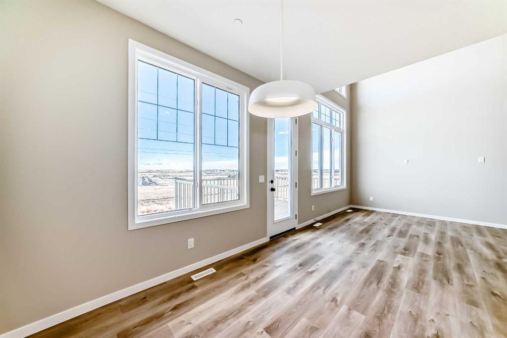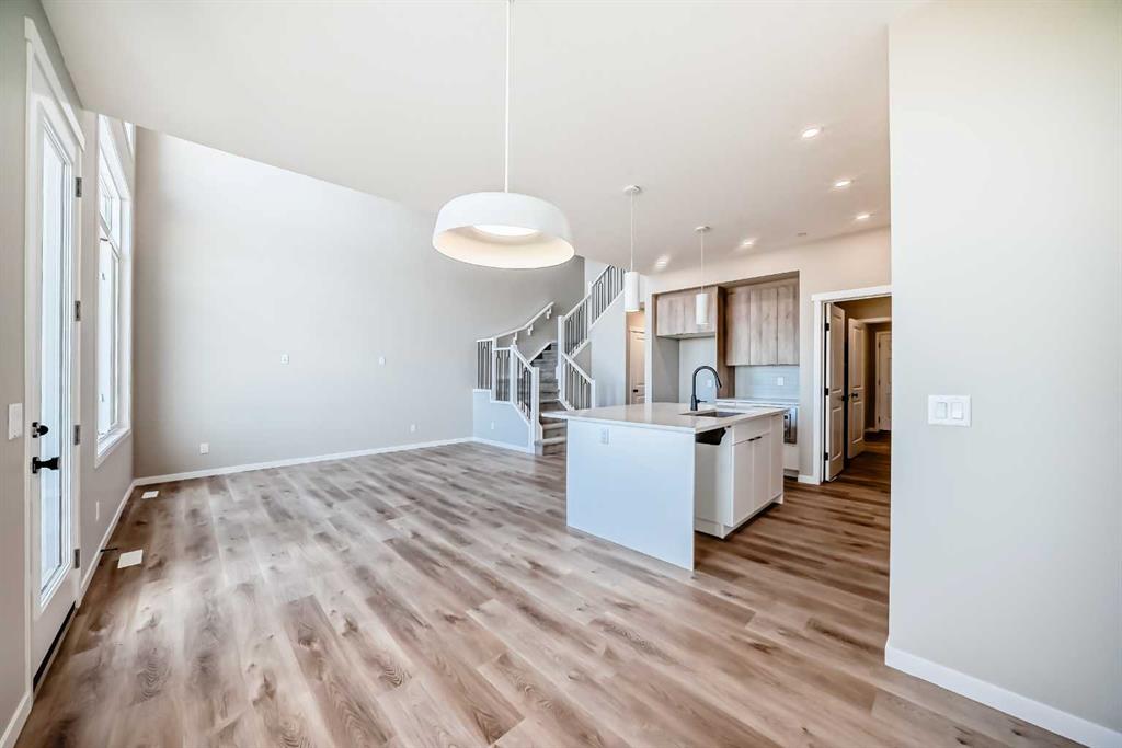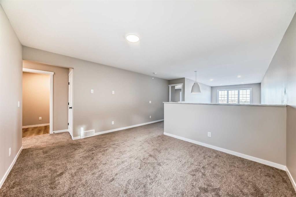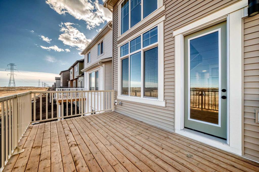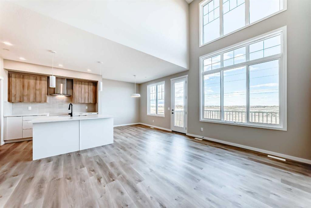 Welcome to the “Grada” by Hopewell Residential—where contemporary design meets family-friendly functionality in the vibrant community of Hotchkiss. This beautifully crafted home spans 2,112 sq. ft. and offers 3 spacious bedrooms with a layout designed to make everyday life feel easier, brighter, and more connected. Step inside and you’ll immediately feel how the main floor is built for real life. Just off the entry, a versatile flex space with a glass insert door is perfect for a home office, playroom, homework zone, or quiet retreat. The heart of the home opens up into an inviting dining area and lifestyle room that flow effortlessly for both daily routines and entertaining. The soaring open-to-above living room adds a wow factor with an airy, light-filled feel, and large windows keep the space feeling fresh from morning to evening. At the center of it all, the kitchen is designed to impress and perform. You’ll love the upgraded layout with a stylish chimney-style hood fan, built-in microwave, extra storage drawers, elegant quartz countertops, and a large island that anchors the space for casual meals, coffee catch-ups, or hosting friends. The two-tone cabinetry is a standout feature, with wood grain upper cabinets extended to the bulkhead and crisp white lower cabinets, paired with a classic subway tile backsplash for a clean, timeless look. Thoughtful upgrades continue with black interior hardware and knockdown ceiling textures, adding a modern edge throughout. The entertainment potential extends outdoors with a walkout lot and a generous 15’ x 10’ deck—perfect for summer dinners, morning coffee, or relaxing at the end of the day. An exterior gas line is already in place for a future BBQ, making it easy to enjoy Calgary’s long warm evenings. Upstairs, you’ll find three spacious bedrooms, including a luxurious primary suite featuring a step-in shower—your own private retreat. The additional bedrooms are the perfect size for the growing family and served by a beautiful full bathroom, while the upper-floor laundry room is perfectly placed to keep day-to-day life running smoothly. Downstairs, the walkout basement is ready for your future plans with a 9-foot foundation, offering the opportunity for added living space or a potential mortgage-helper suite (a secondary suite would be subject to approval and permitting by the city/municipality). Located in southeast Calgary, Hotchkiss offers stunning mountain views, 51 acres of park space, walking pathways, and a beautiful central wetland. Designed with families in mind, this community delivers the green space, connectivity, and lifestyle that make it easy to settle in and feel at home. Discover the next chapter of your life with The Grada.