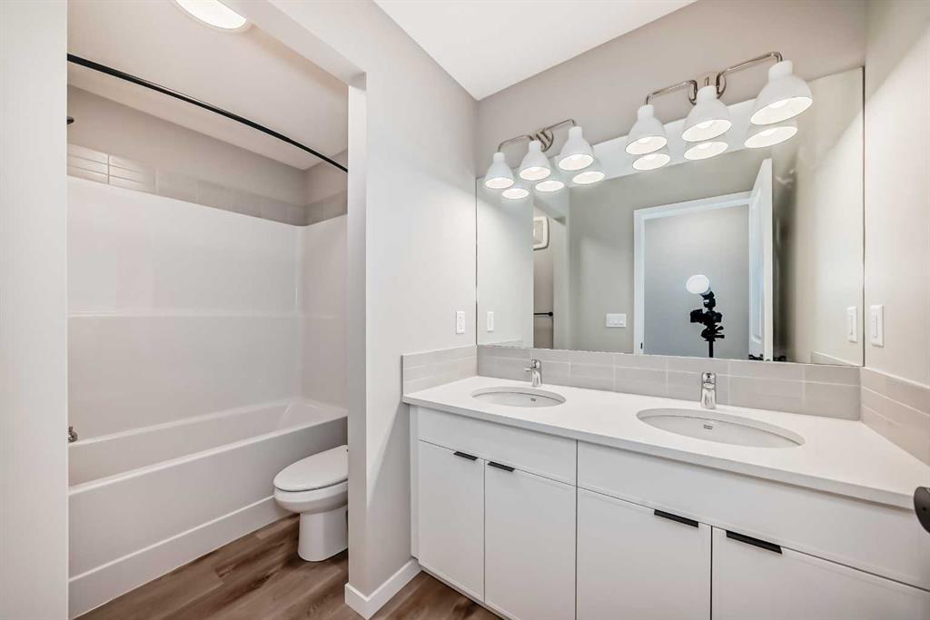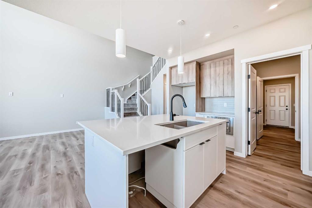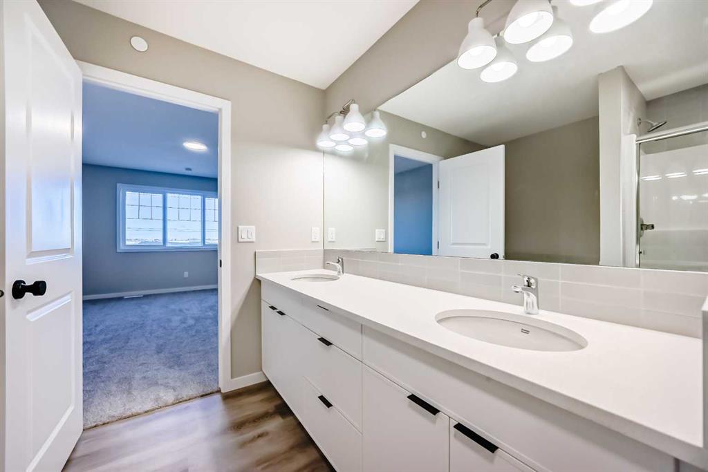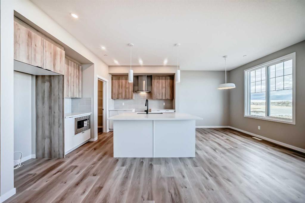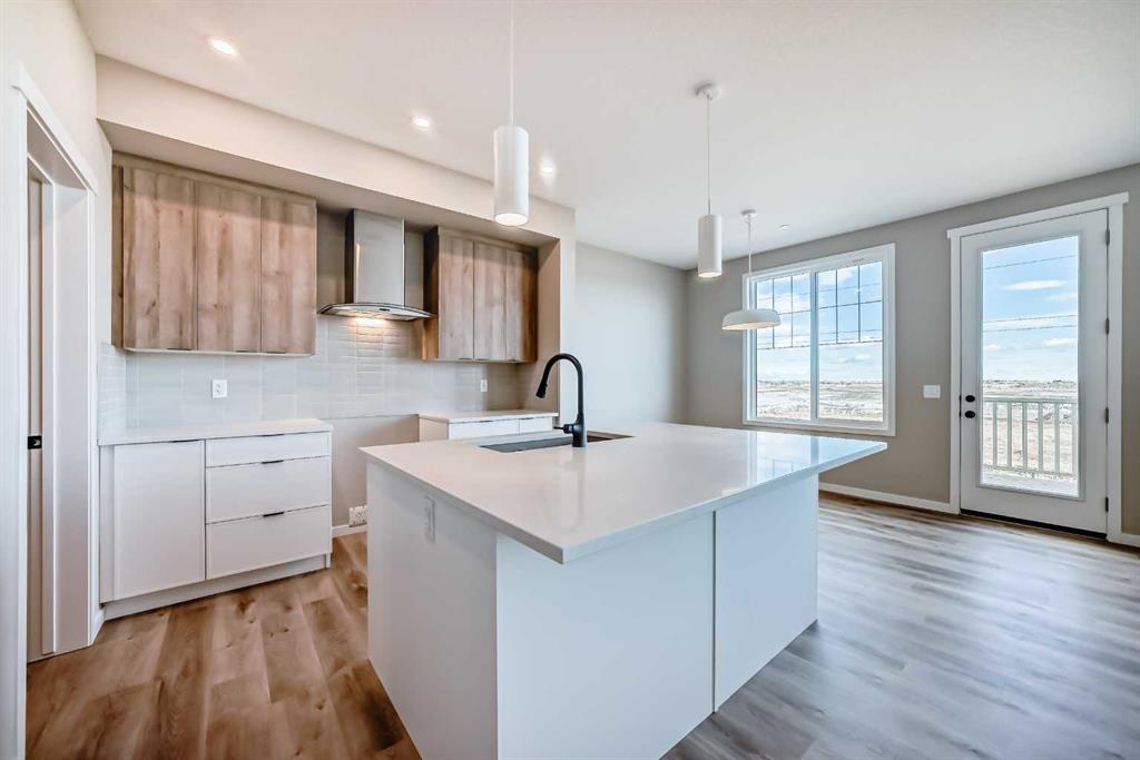 Welcome to the “Grada” by Hopewell Residential—where contemporary design meets family-friendly functionality in the vibrant community of Hotchkiss. This beautifully crafted home spans 2,112 sq. ft. and offers 3 spacious bedrooms with a layout designed to make everyday life feel easier, brighter, and more connected. Step inside and you’ll immediately feel how the main floor is built for real life. Just off the entry, a versatile flex space with a glass insert door is perfect for a home office, playroom, homework zone, or quiet retreat. The heart of the home opens up into an inviting dining area and lifestyle room that flow effortlessly for both daily routines and entertaining. The soaring open-to-above living room adds a wow factor with an airy, light-filled feel, and large windows keep the space feeling fresh from morning to evening. At the center of it all, the kitchen is designed to impress and perform. You’ll love the upgraded layout with a stylish chimney-style hood fan, built-in microwave, extra storage drawers, elegant quartz countertops, and a large island that anchors the space for casual meals, coffee catch-ups, or hosting friends. The two-tone cabinetry is a standout feature, with wood grain upper cabinets extended to the bulkhead and crisp white lower cabinets, paired with a classic subway tile backsplash for a clean, timeless look. Thoughtful upgrades continue with black interior hardware and knockdown ceiling textures, adding a modern edge throughout. The entertainment potential extends outdoors with a walkout lot and a generous 15’ x 10’ deck—perfect for summer dinners, morning coffee, or relaxing at the end of the day. An exterior gas line is already in place for a future BBQ, making it easy to enjoy Calgary’s long warm evenings. Upstairs, you’ll find three spacious bedrooms, including a luxurious primary suite featuring a step-in shower—your own private retreat. The additional bedrooms are the perfect size for the growing family and served by a beautiful full bathroom, while the upper-floor laundry room is perfectly placed to keep day-to-day life running smoothly. Downstairs, the walkout basement is ready for your future plans with a 9-foot foundation, offering the opportunity for added living space or a potential mortgage-helper suite (a secondary suite would be subject to approval and permitting by the city/municipality). Located in southeast Calgary, Hotchkiss offers stunning mountain views, 51 acres of park space, walking pathways, and a beautiful central wetland. Designed with families in mind, this community delivers the green space, connectivity, and lifestyle that make it easy to settle in and feel at home. Discover the next chapter of your life with The Grada.