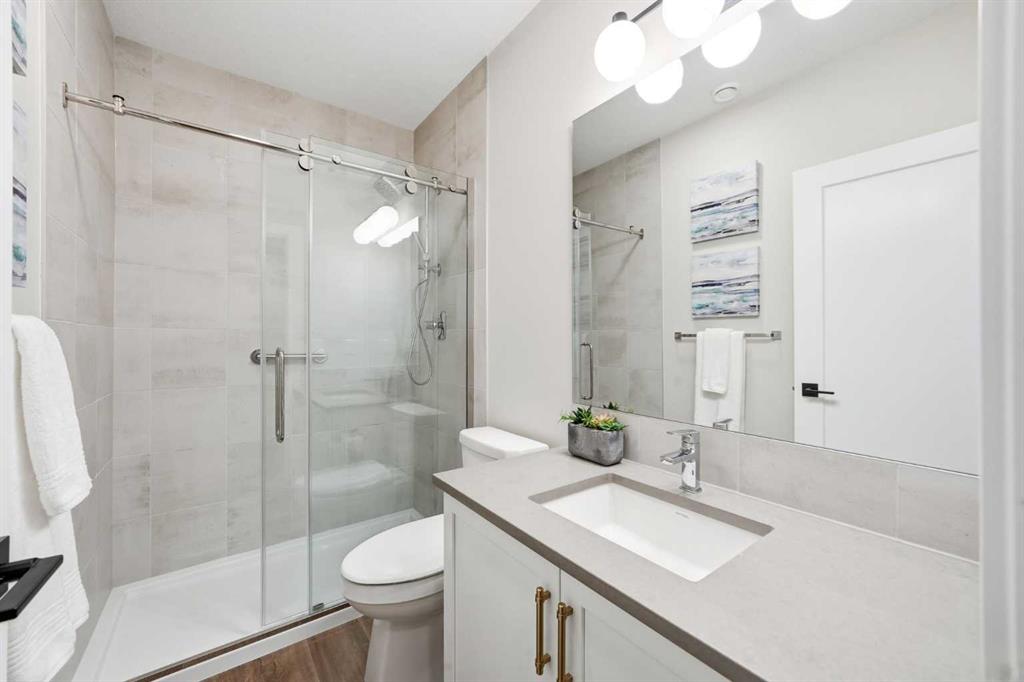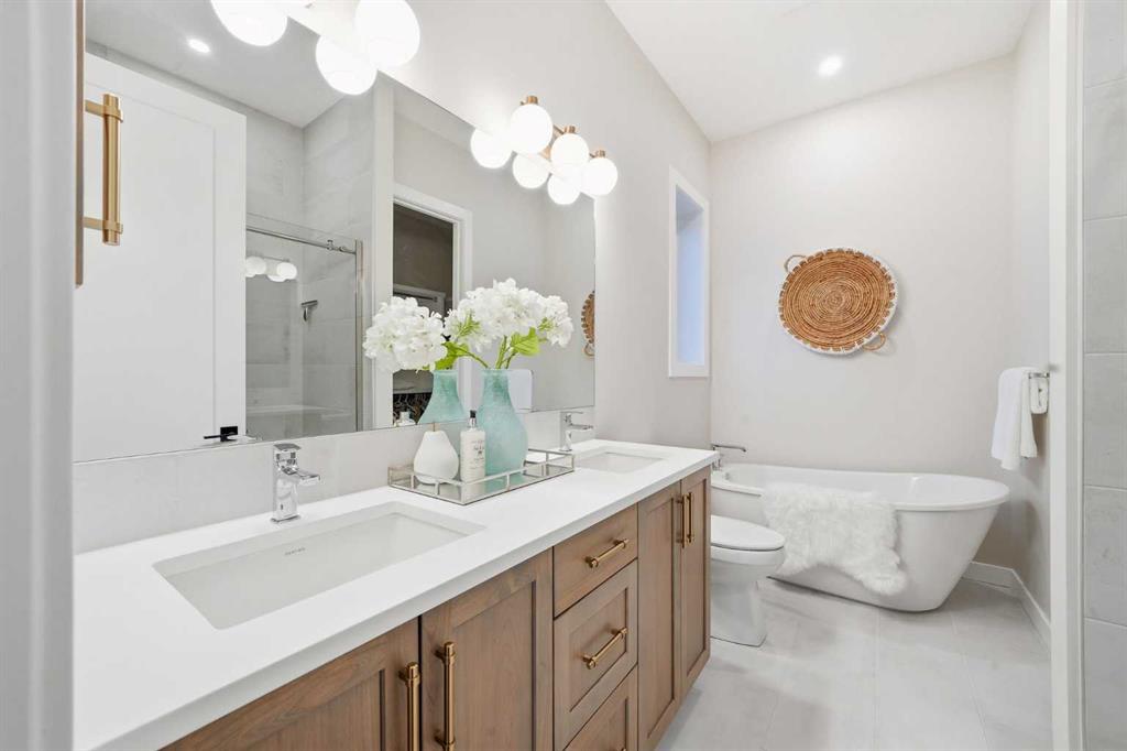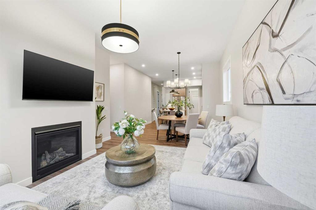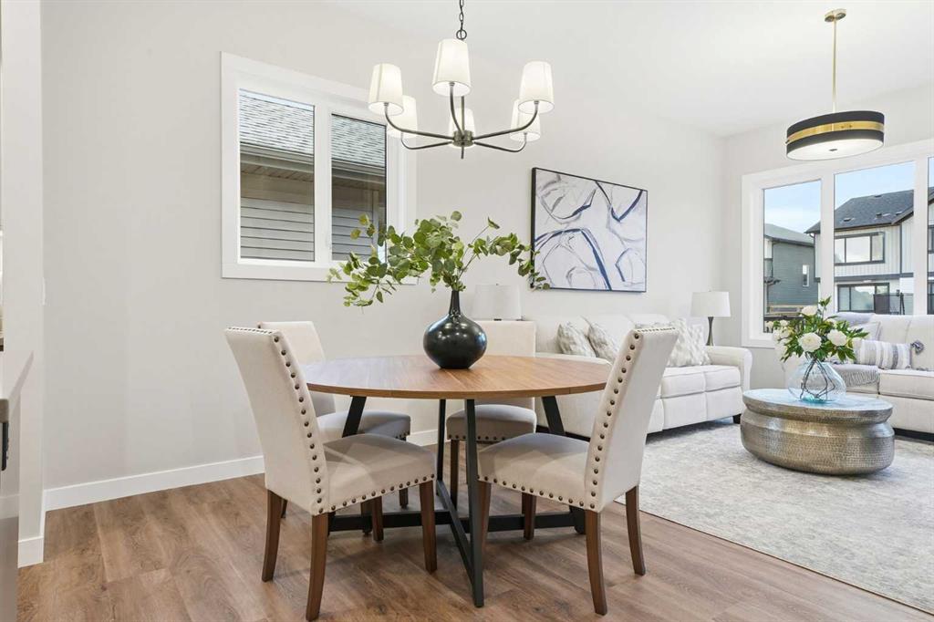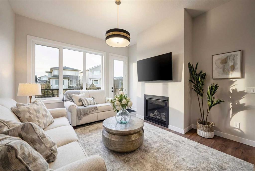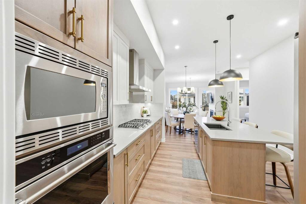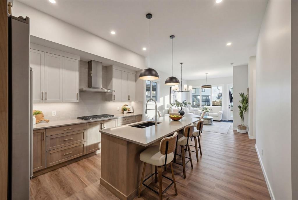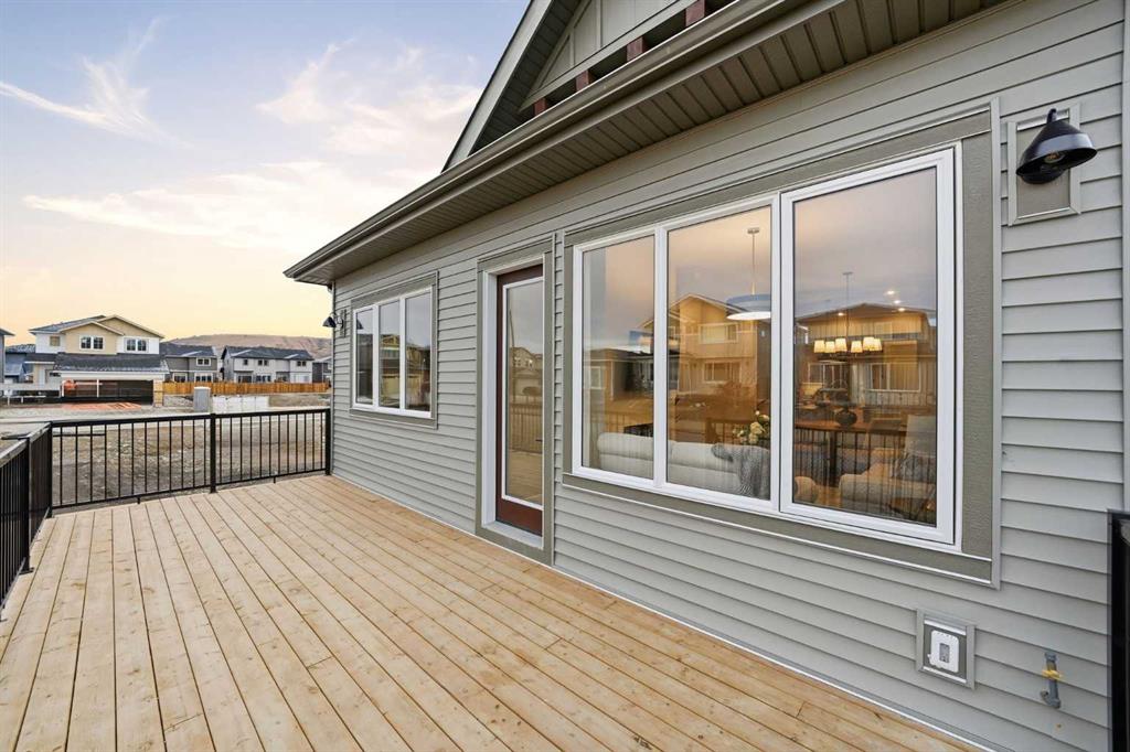 Incredible newly built bungalow by award-winning builder Renova Homes, offering refined craftsmanship, upscale finishes, and the ease of luxury single-level living in the highly sought-after community of Greystone! Backing a walking pathway and just minutes from all shopping amenities, the Spray Lakes Recreation Centre, and the Bow River, this prime central Cochrane location offers the perfect balance of convenience and lifestyle. Designed with discerning buyers in mind, the main floor features 10’ ceilings, oversized 8’ interior doors, sleek black matte finishes, upgraded lighting, and luxury vinyl plank flooring throughout the main floor. The chef-inspired kitchen is both elegant and functional, showcasing a premium KitchenAid built-in appliance package with 36" gas range & 36 " ceiling hood fan, quartz countertops, oversized island, 42” upper cabinetry, extended tile backsplash, and LED under-cabinet lighting—ideal for hosting or enjoying evenings at home. The open-concept dining and living areas are bright and inviting, centered by an electric fireplace and framed by large windows. Step outside to the full-width rear deck, with stairs to grade and a gas line for BBQ—perfect for effortless entertaining. The primary suite is a private retreat, complete with a spacious walk-in closet with built-ins and a spa-inspired ensuite featuring dual sinks, quartz countertops, soaker tub, and a beautifully tiled glass shower with upgraded 12” x 24” tile flooring and shower walls and a tiled shower niche-Thoughtful details include a timer exhaust fan and elegant wood-front medicine cabinet. A second main-floor bedroom or office provides flexibility for guests or working from home, while the well-appointed mudroom includes laundry with rough-in for a sink and space for future cabinetry, plus a convenient pass-through pantry with wood shelving. The fully developed basement expands your living space without compromise, offering a large recreation area with wet bar rough-in and dedicated electrical circuits, two additional bedrooms, and a full bathroom—ideal for visiting family or extended stays. Enhanced garage space with a 2’ extension and upgraded pre-finished door with windows and opener. Homes of this caliber and location don’t come along often! Notable upgrades include: central air conditioning, Roxul sound insulation between the living room and primary bedroom, powder room vanity with quartz countertops, upgraded light fixtures and high-end ceiling fans in all four bedrooms with added structural support, additional basement windows and enlarged office window, comfort-height toilets, HDMI conduit in the primary bedroom, living room & basement, eave plug with interior switch for seasonal lighting, and conduit for future fireplace media. Enjoy the benefits of new construction without the delay—move-in ready and fully protected under Alberta New Home Warranty. Experience elevated bungalow living in the heart of Cochrane—book your private showing today!