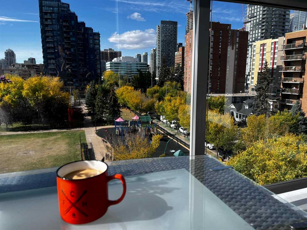 Experience vibrant inner-city living in this beautifully renovated 1 bedroom, 1 bathroom residence in Union Square, perfectly situated in Calgary’s sought-after Beltline. Offering a seamless blend of modern comfort and urban convenience, this west-facing unit showcases stunning park views and an unbeatable location backing directly onto Haultain Park—one of the few downtown residences to offer immediate access to green space and tennis courts. Recently refreshed with thoughtful upgrades throughout, the home features upgraded flooring, fresh contemporary paint, and stylish new lighting fixtures that create a bright and inviting atmosphere. The well-appointed kitchen is both functional and elegant, complete with sleek granite countertops, a spacious island, upgraded faucets, and a brand-new dishwasher—ideal for everyday living or entertaining guests. The open-concept layout flows effortlessly into the living area, where large windows fill the space with natural light and frame serene views of the park beyond. Designed with today’s lifestyle in mind, this unit includes a custom built-in workspace, perfect for working from home or staying organized. The bedroom offers comfort and practicality with upgraded closet doors and ample storage, while the bathroom has been enhanced with new faucets and updated fixtures, providing a clean, modern feel. Enjoy the convenience of in-suite laundry, adding ease to your daily routine. Step outside to your private balcony, finished with durable composite deck tiles, creating a welcoming outdoor retreat to relax and enjoy the west-facing exposure and peaceful surroundings. This exceptional offering also includes one titled underground parking stall and an assigned storage locker, ensuring secure parking and additional space for your belongings. Union Square is known for its contemporary design and unbeatable location above First Street Market, placing some of Calgary’s best dining, coffee shops, boutiques, and pubs right at your doorstep. Located on vibrant 1st Street SW, you’ll enjoy the energy of city living while still having direct access to green space just steps away. Whether you’re a professional, investor, or first-time buyer, this move-in-ready home delivers the perfect balance of style, comfort, and location in one of Calgary’s most dynamic communities. Don’t miss your opportunity to live in a beautifully updated unit with park-side living in the heart of the Beltline.