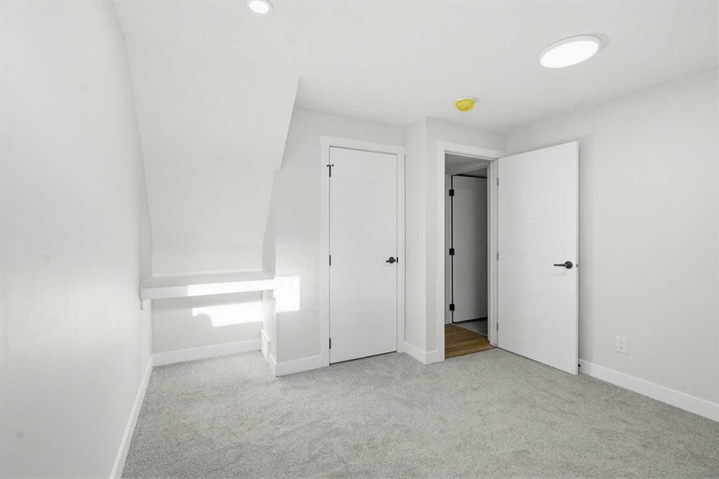 Welcome to this FULLY RENOVATED SPACIOUS semi-detached home with an ILLEGAL-SUITE (one bedroom) with SEPARATE LAUNDRY and SEPARATE ENTRANCE. Right beside Penbrooke Meadows School and a playground, easy access to 17th Avenue! Perfect for young families or an AMAZING INVESTMENT opportunity. Meticulously upgraded from top to bottom, the interior showcases BRAND NEW FLOORING, EXTERIOR DOORS, WINDOWS, INTERIOR FINISHINGS, BATHROOMS and sleek contemporary lighting. The open-concept main level features a stylish kitchen equipped with an ISLAND and STAINLESS STEEL appliances seamlessly connecting to the bright living area with a tile wall electric fireplace and dining area. Upstairs, three generously sized bedrooms and a beautifully updated four-piece bath provide comfortable family living. The lower level offers a bedrooms with a BUILT IN OFFICE DESK, another modern four-piece bath, and a spacious living area. This home needs nothing! It contains a high efficiency furnace and BRAND NEW HIGH efficiency hot water tank! Outside you have a NEWLY FENCED low maintenance yard and fire pit create an inviting space for relaxation or summer gatherings, backing onto a back alley with a gravel parking pad! all set within a landscaped setting. Situated right beside a park, playground, Penbrooke Meadow School, shopping, and with easy access to 17th Avenue. this move-in-ready home promises the very best of Penbrooke Meadows living. Immediate possession is available—book your showing today.