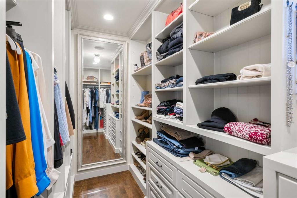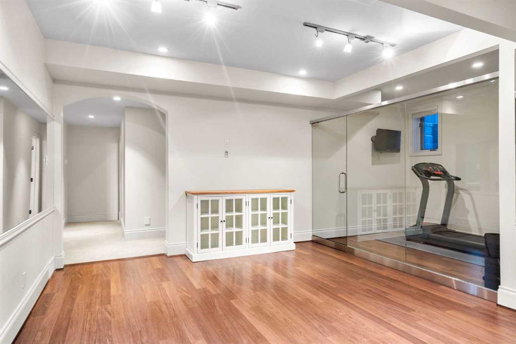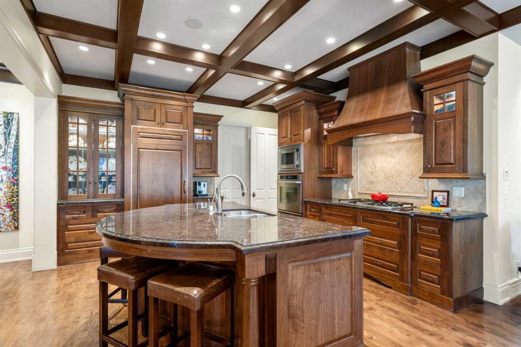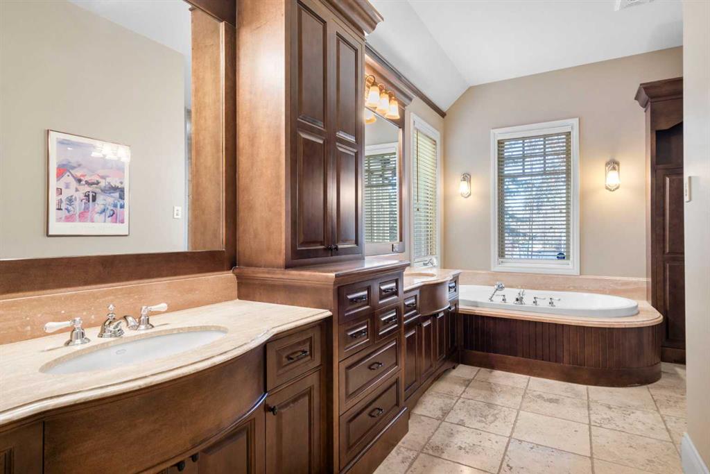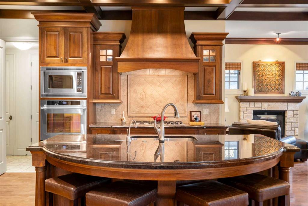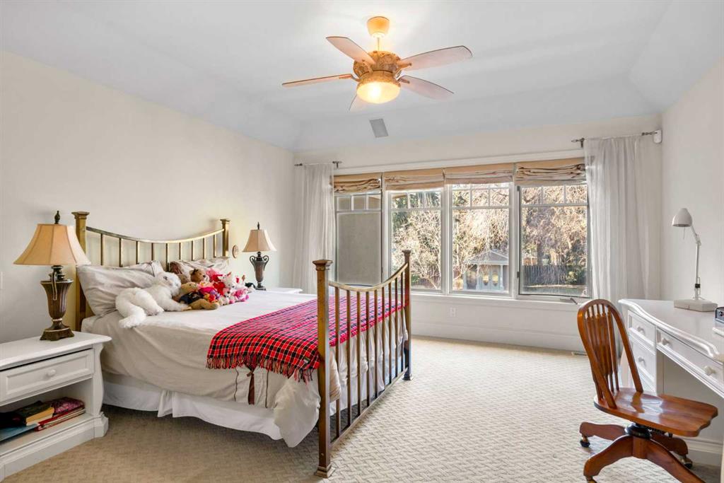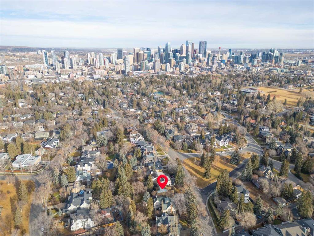 This stunning Laratta built executive family residence, is an architectural masterpiece nestled on a most coveted Upper Mount Royal tree lined street overlooking Talon Park. Set on a private, estate sized 70' x 194' west facing lot surrounded by mature trees, meticulous landscaping, English country gardens, offering a rare blend of historic grandeur, modern luxury & resort-style living. Boasting 7158 sq. ft. of impeccably designed living space, this residence showcases gleaming hickory & hardwood floors throughout the upper levels, with beamed ceilings, crown mouldings, solid core doors, extensive millwork, designer fixtures & an abundance of natural light through expansive windows. The enclosed foyer opens to the entertaining sized great room with built-ins & gas fireplace offers seamless indoor outdoor flow. The gourmet kitchen with granite countertops, a striking oversized island with circular eating bar, loads of custom cabinetry, spacious pantry, beamed ceilings, professional appliances, effortless flow into the family sized dining area & sitting area with fireplace overlooking the yard. A private office with custom bookcases overlooks Talon park, while the main floor primary suite, currently a second family room, features tranquil views, a luxurious spa-inspired 5-piece ensuite with soaker tub, steam shower, dual sinks, marble countertops, heated marble floors & abundant storage. A guest powder room, private laundry with cabinetry & a functional mudroom leads to the heated extra wide double attached garage. The upper level offers five spacious bedrooms, including a primary bedroom with double closets, luxurious ensuite and overlooks the tranquility of the west yard. The secondary bedrooms all with ensuites & a retreat area deliver exceptional comfort, flexibility & privacy. The lower level designed for elevated leisure & entertainment, features an expansive family room with built-in cabinets, billiards room, a large wrap-around wet bar with dishwasher, microwave & beverage fridge, temperature controlled wine cellar with tasting lounge, a bedroom with ensuite, a large playroom currently a ballet studio & glass enclosed exercise area plus exceptional storage. Outdoors, the tranquil west facing yard is home to manicured grounds framed by mature trees, offering sun drenched lounging areas, distinct living spaces, patio zone perfect for gatherings, a full irrigation system & ample room for a future pool. This estate harmonizes style, functionality, serenity & ideally located within walking distance to top rated schools, parks, River Park, the Elbow River Pathways, community tennis courts, outdoor pools, Glencoe Club, Calgary Golf & Country Club, public library, downtown, the vibrant shops, restaurants & culture of 17th Avenue, 4th & 14th Streets. This rare offering represents an unparalleled opportunity for the discerning buyer seeking architectural excellence, intentional design, premium materials - this is more than a home, it's a statement of refined living.