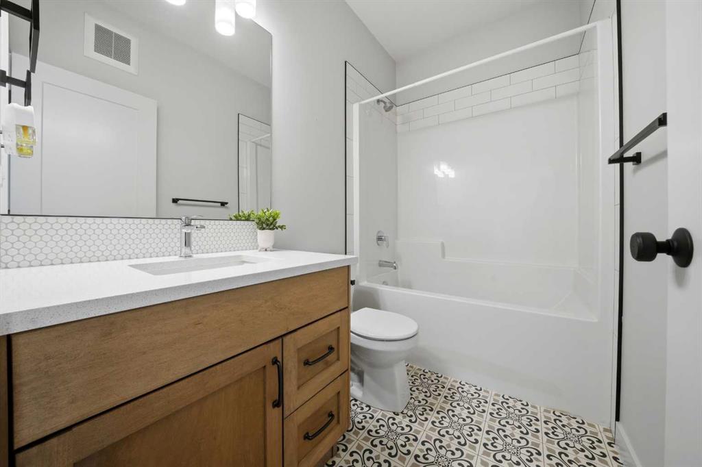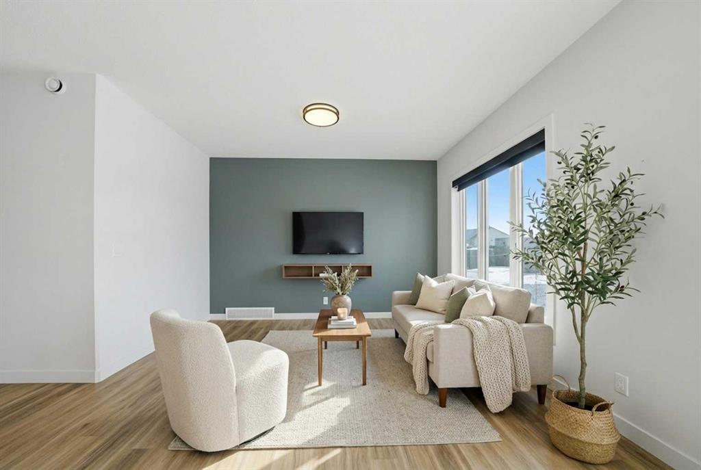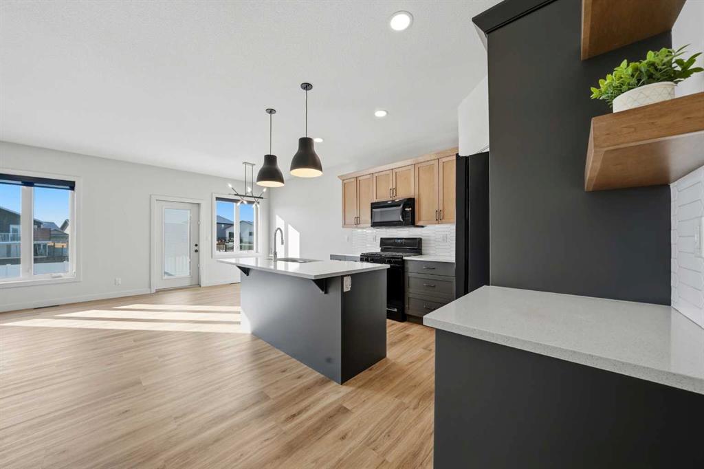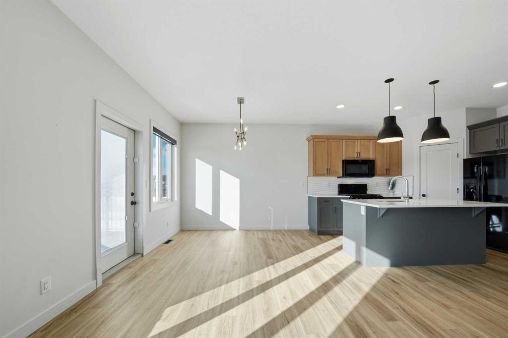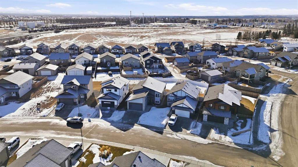 Welcome to 9 Aztec Street in the desirable community of Aurora in Blackfalds. A beautifully upgraded bi-level built by True-Line Developments offering quality craftsmanship and exceptional design throughout. From the moment you arrive, the stunning curb appeal stands out with its attractive blend of stonework, wood accents, and modern vertical siding. A welcoming front entry opens to a wide staircase accented by sleek black metal railing, setting the tone for the stylish finishes found throughout the home. The main floor showcases an impressive kitchen designed to be both functional and beautiful, featuring upgraded two-tone cabinetry, full quartz countertops, deep corner pantry, floating shelves, modern light fixtures, and matching black appliances including an upgraded gas stove. The open concept layout flows seamlessly into the spacious dining and living areas, highlighted by large windows fitted with custom blinds that flood the space with natural light. Garden doors lead to the rear deck with gas line for BBQ, overlooking the massive fully fenced yard. perfect for relaxing or entertaining. Both the covered front veranda and rear deck feature durable Moisture Shield composite decking for long lasting, low maintenance enjoyment. The main floor offers three bedrooms, including a generous primary retreat complete with walk in closet and private ensuite featuring dual vanities and a standup shower. Convenient main floor laundry adds everyday ease. The professionally developed basement is thoughtfully designed for family living and entertaining, offering a large media area, an expansive family room behind stylish barn doors, an additional bedroom, and a beautifully finished three piece bathroom with full tile surround and walk in shower. A substantial storage area provides excellent space for seasonal items and organization. Located within walking distance to neighborhood shopping and close to schools, parks, and amenities, this home offers the perfect blend of style, function, and location in one of Blackfalds’ newer communities. A move in ready home that shows pride of ownership with thoughtful upgrades throughout.