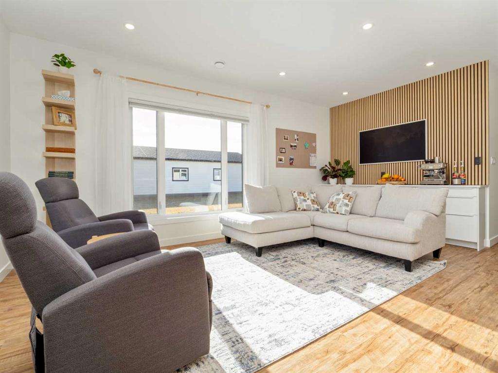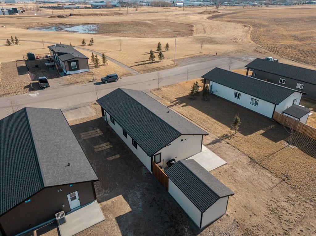 Here is a beautiful Brand New Build in the beautiful Meadows subdivision in Taber with so many bells and whistles...Where to start... This home is a 3 bed, 2 bath , one level home which has been built with quality and convenience in mind~ The kitchen is bright and modern with the cabinets having a gloss finish, and the matching Samsung appliances that have glass covers that you can change the covers on, big kitchen island for all your entertaining, nice big high quality Ply Gem windows throughout that let in tons of natural light ! The Spacious living room comes complete with a dry bar~ coffee bar~ whatever you choose with plenty of cabinet/storage space underneath, and on top... is a space for your TV...Yes.... that's a TV ! To save space, there is hot water on demand, the sellers have also gone to great lengths to make sure that the floor is very well insulated( see pics) . Main floor laundry, with side yard access. There is two more bedrooms each with huge closets, and the one bedroom has Beautiful modern closet doors, and custom organizations inside, and the master bedroom also has a huge closet with the same beautiful huge closet doors and custom organization.... complete with an very large en-suite and custom built in shelving , and a huge vanity with up top and bottom cabinets. Outside has a large concrete pad in the backyard to enjoy the open spaces as it backs onto an open field which makes for family gatherings and quiet amazing sunsets ! There is a custom built shed that matches the house and has power. Central AC, a partial backyard fence for privacy, and a special bonus for this home is the driveway runs from the front yard all the way to the backyard, and the greenspace to the left is a bonus area the other lots do not have . Really a beautiful Home with amazing quality craftsmanship ~ 10 Year New Home Warranty also ~