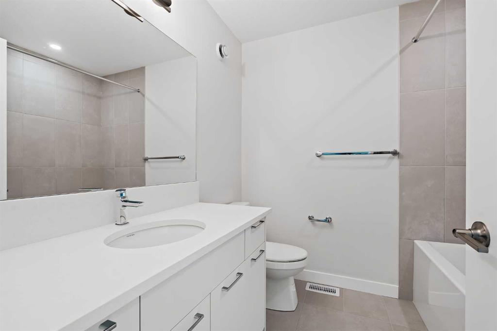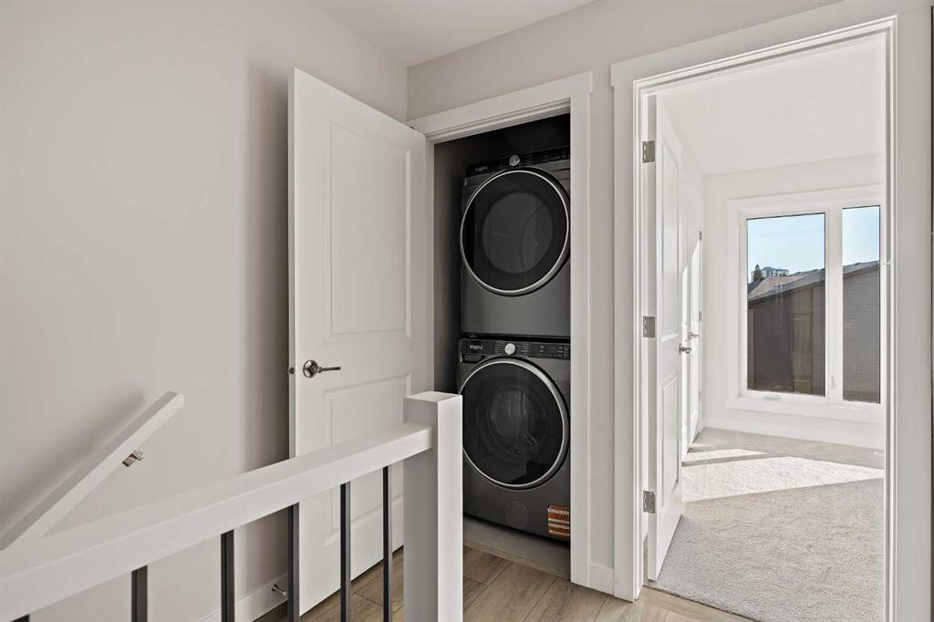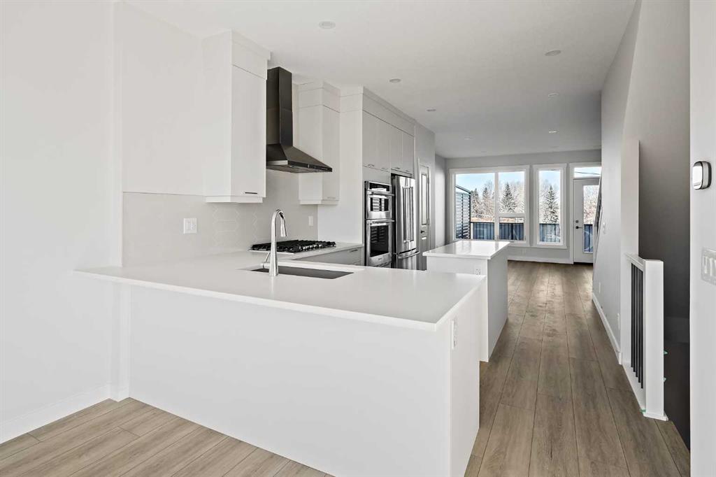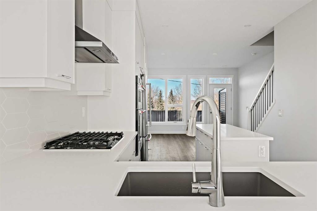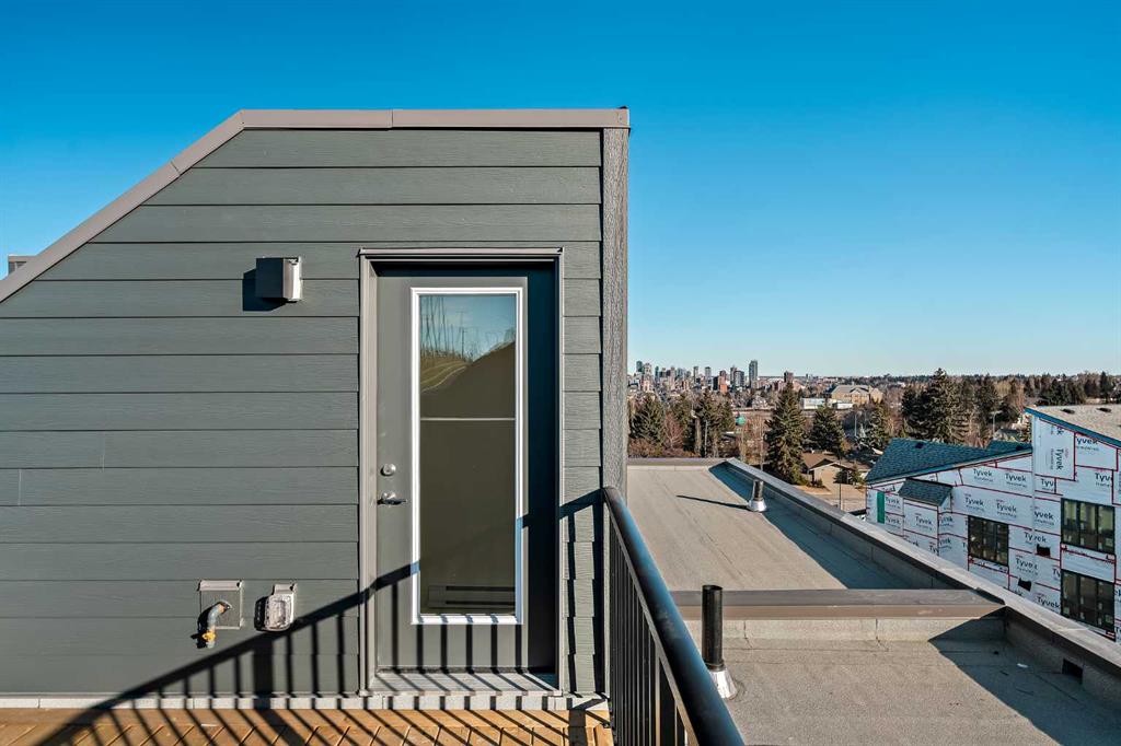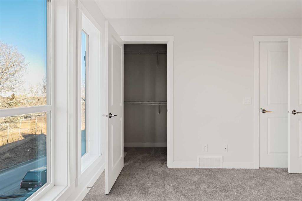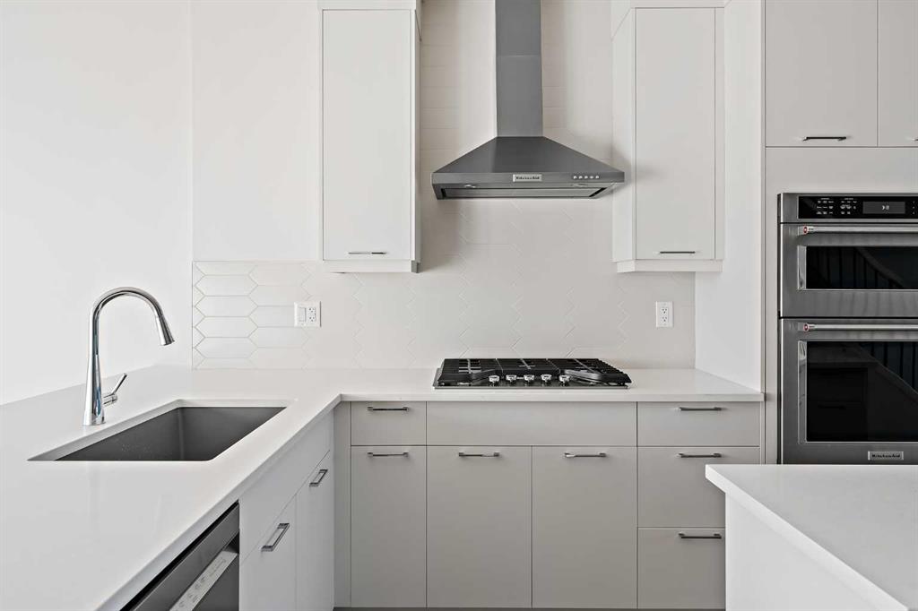 Welcome to The Alameda by Brookfield Residential - where modern design meets urban convenience, just minutes from downtown Calgary with stunning views! This beautiful 2-bedroom, 2.5-bathroom townhome offers over 1,500 sq. ft. of thoughtfully designed living space, complete with a single attached garage and a spacious main-level flex room - perfect for a home office, gym, or creative studio + 3 outdoor living spaces including a rooftop patio! The lower level features an expansive flex room spanning ~14'x14' with soaring 10' ceilings and a wall of windows overlooking your private patio and the front street. Experience open-concept living on the main level highlighted by 9’ ceilings throughout with oversized triple-pane windows at either end providing endless natural light all year long. The kitchen is a chef’s dream, featuring KitchenAid gourmet appliances, including a gas cooktop, wall oven/microwave, and a chimney hood fan, all complemented by elegant finishes and generous counter space and a pantry. The timeless white kitchen is central to the main level, opening to both the dining area and great room, creating the ideal space for entertaining. The great room has direct access to the main level balcony that spans 15' x 9'8" and includes a BBQ gas line for everyday convenience. The upper level features a large primary suite complete with walk-in closet and a private 4pc ensuite with dual sinks and a tiled walk-in shower. A large second bedroom, full bathroom and laundry complete the upper level. The top level of the home is where you'll spend your summers - soaking up the sun on your private ~200 ft2 rooftop patio with views overlooking the Shaganappi golf course and stunning views to the south and downtown Calgary! Complete with 2 living areas, 2 bedrooms, 2.5 bathrooms and 3 outdoor living spaces + a private attached garage, this home is perfect for professionals or down-sizers that appreciate convenience. Located away from Bow Trail, this premium location offers a quiet space for daily living with convenient access to the CTrain and downtown Calgary just minutes away. Additional features include convenient street parking in front, and full builder warranty + Alberta New Home Warranty - allowing you to purchase with peace of mind. This maintenance-free home is fully move-in ready with free legal fees for the purchaser in desirable Crown Park!