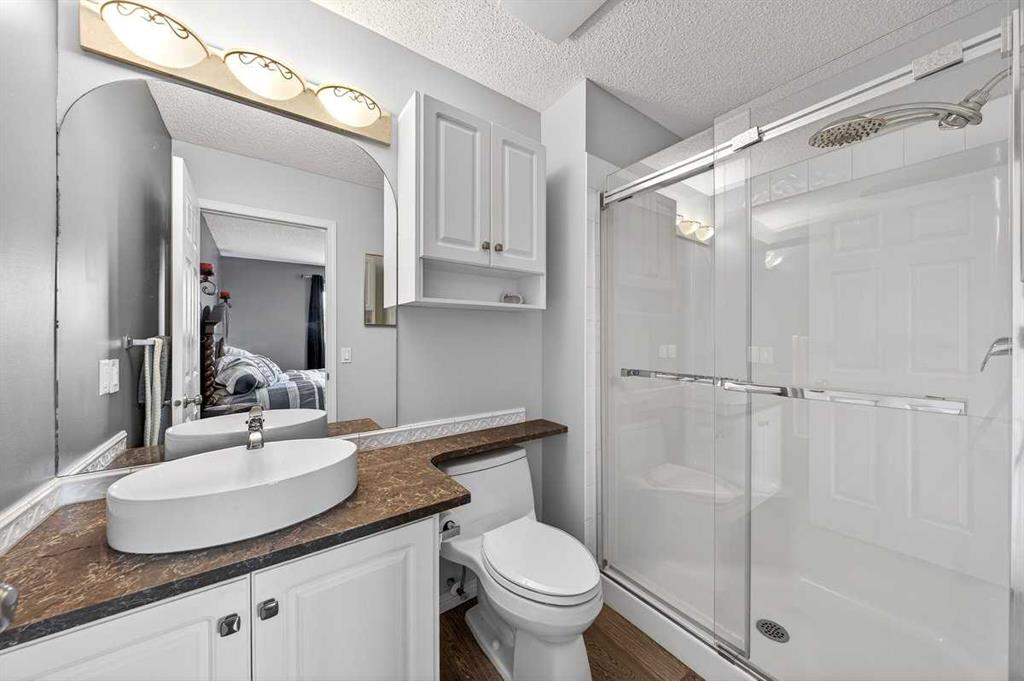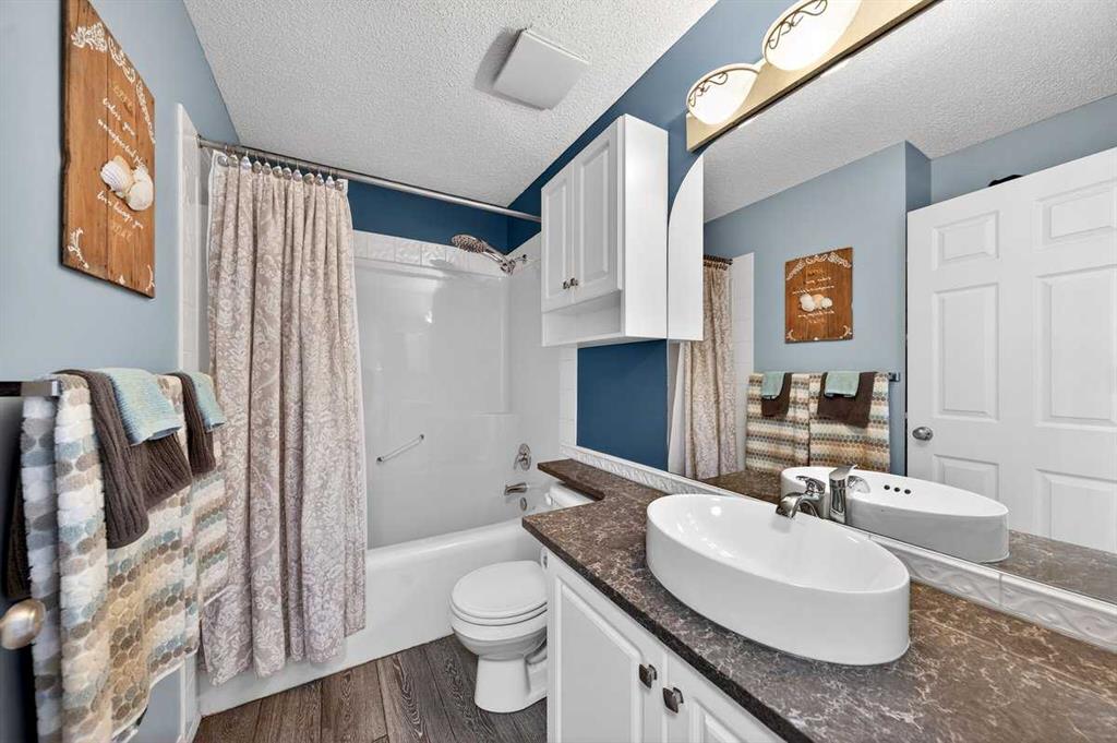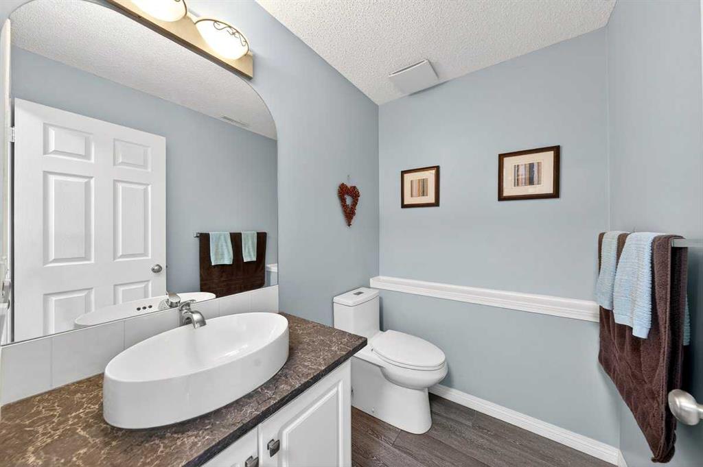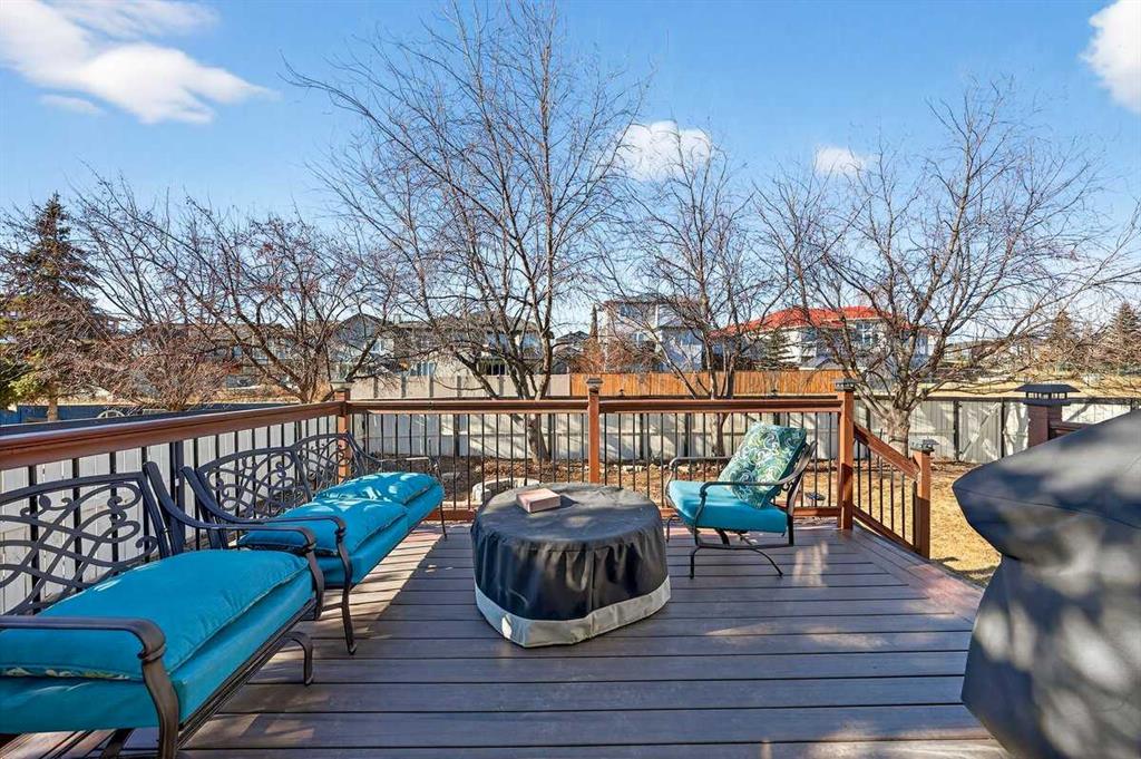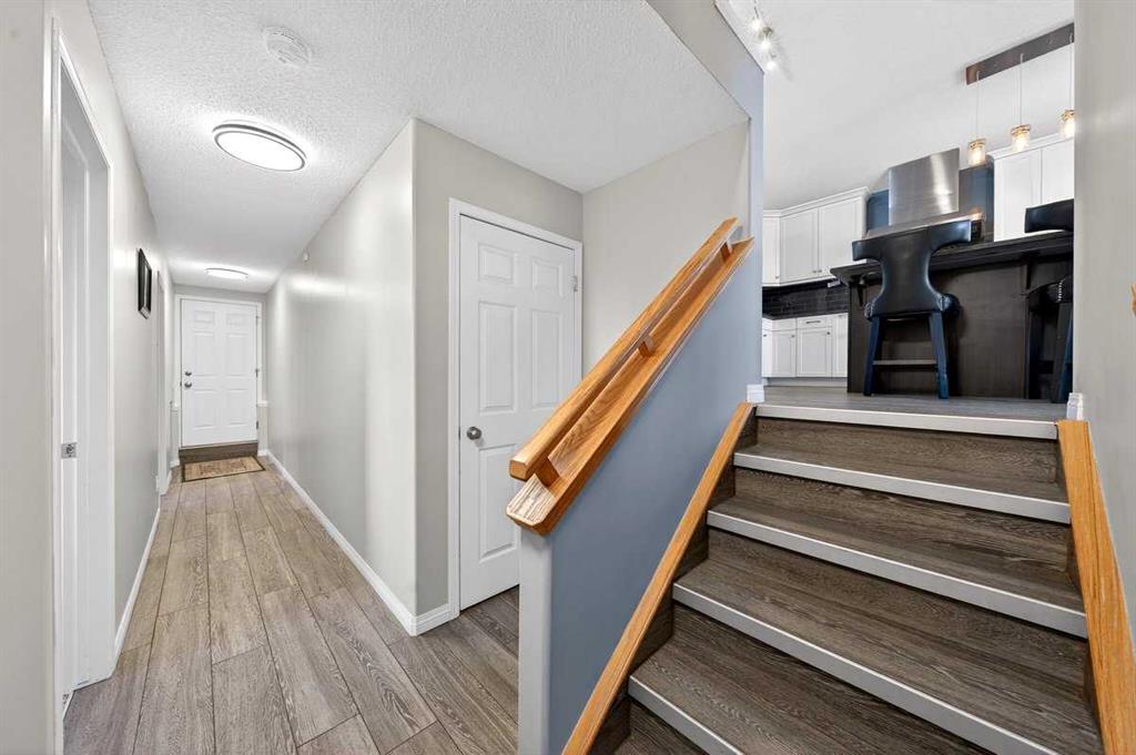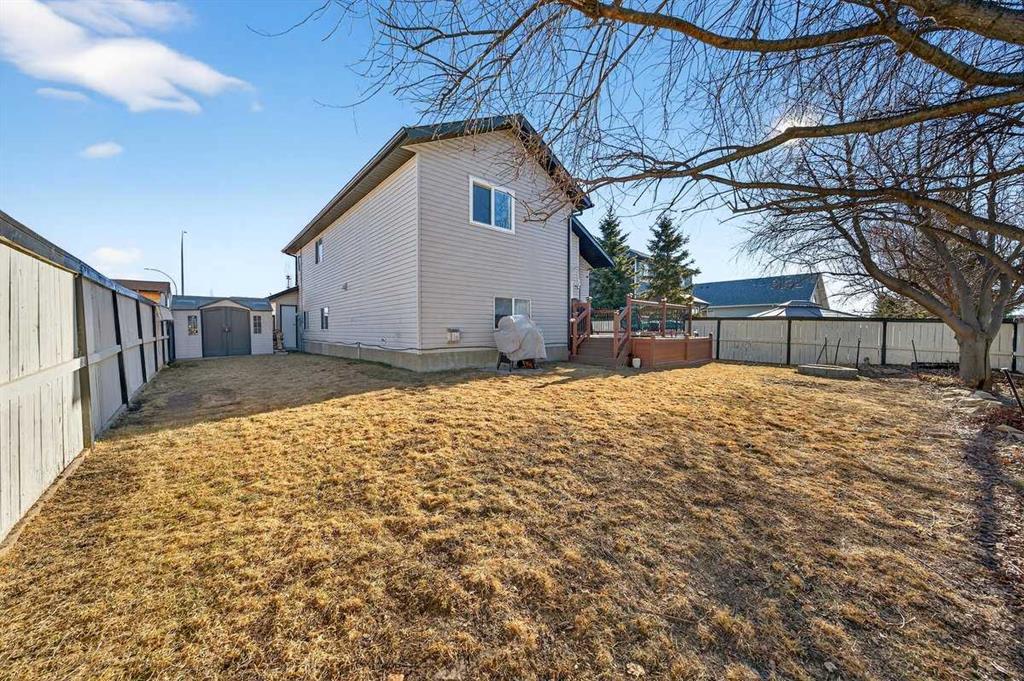 Welcome to this beautifully upgraded 5 bedroom, 2.5 bathroom split-level in the charming community of Crossfield, backing directly onto green space for added privacy and views. This home offers incredible value with $30,000 in fully paid solar panels, central air conditioning, and numerous major updates already completed. Inside, you’ll find unique porcelain flooring and new carpet throughout. The renovated kitchen (2020) features new cabinetry, quartz countertops, a large island with under-cabinet lighting, stainless steel backsplash, glass subway tile, and an impressive 36" dual fuel stove with hood fan and heat lamps. The fridge and dishwasher were replaced in 2020, and quartz counters continue into the bathrooms for a cohesive, modern finish. Additional updates include a new roof (2022), 50-gallon hot water tank (2021), garage door and opener (2021), water softener, and garburator. The heated garage also offers hot and cold water taps. Enjoy the maintenance-free deck with natural gas hookup (fire table can be included), a fully fenced yard, and a resin shed for extra storage. A move-in ready home with space for the whole family, premium upgrades, and energy efficiency already in place—this one truly checks all the boxes.