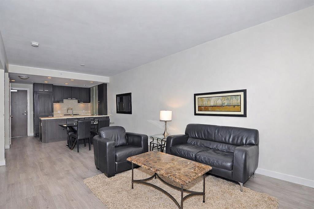 VACANT - EASY TO SHOW! Welcome to one of the hottest locations in Calgary! Steps to Prince's Island river path system, restaurants, shops & downtown. Executive style & top quality finishes in this one bedroom + den condo. This contemporary plan has features that will thrill the most discriminating buyer - 9' flat painted ceilings, gourmet kitchen with upgraded stainless steel appliances including gas cooktop, built-in oven, Sub Zero fridge with freezer drawers, granite countertops, new vinyl plank floors, sleek gas fireplace & fresh paint throughout. The flexible opaque "garage door" walls open up views & can create a den or expand the master bedroom. Lots of options here! This 4th floor condo looks east with a view of the river & Centre Street bridge. Building amenities include a gym with yoga studio, steam room & hot tub, games room & private movie theatre. 24 hour concierge service is available.