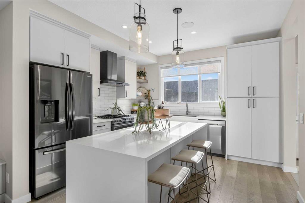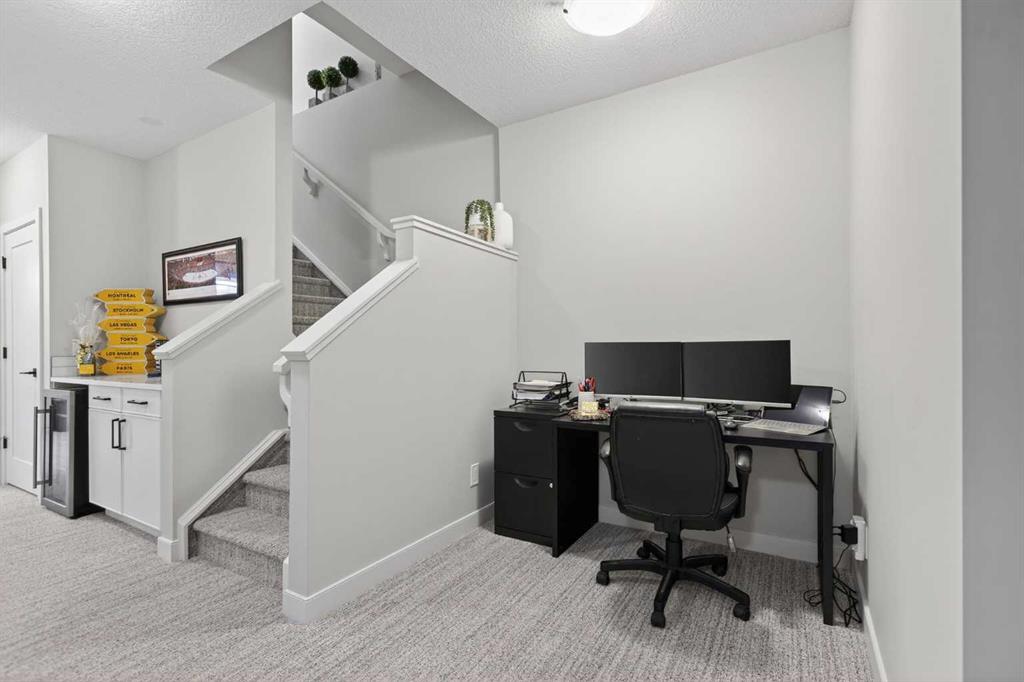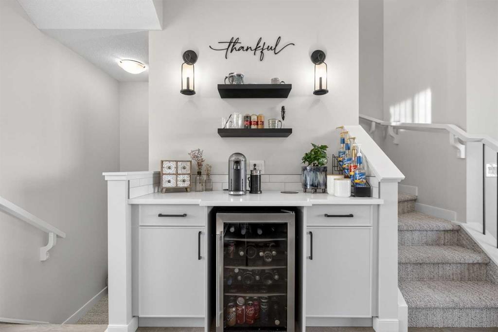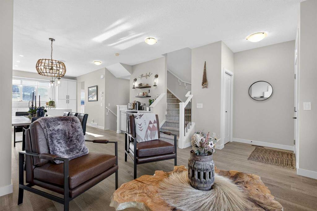 Welcome to 35 Wolf Hollow Park SE — the former Madison Ave Group showhome, beautifully upgraded and move-in ready. This stunning end-unit townhouse offers just over 1,400 sq. ft. of thoughtfully designed living space, a fully finished basement, and 3 bedrooms plus a versatile den — perfect for a home office, gym, or guest space. With 3.5 bathrooms and upgrades throughout, this home blends style, function, and comfort in every detail. Flooded with natural light thanks to its end-unit placement, the open-concept main floor features durable luxury vinyl plank flooring and a central kitchen designed for connection and entertaining. The sleek cabinetry, generous prep space, and seamless flow to both the dining and living areas make this the true heart of the home. A private main floor powder room adds convenience for guests. Upstairs, you’ll find upper-floor laundry, spacious secondary bedrooms, and a generous primary retreat complete with a walk-in closet and a beautifully appointed ensuite. Carpet adds warmth to the bedrooms, while tile flooring elevates each bathroom. The fully finished basement expands your living space with a flexible den area, an additional full bathroom, and a dry bar — ideal for entertaining or creating the ultimate movie night setup. With two dry bars in the home, hosting is effortless. Additional features include: Finished garage with 220V plug Luxury upgrades throughout as the original showhome Abundant windows and natural light Modern finishes and thoughtful design touches Located in the sought-after community of Wolf Willow, close to pathways, nature, and everyday amenities, this is a rare opportunity to own a former showhome with premium upgrades in a prime end-unit location. This is a home you must see!