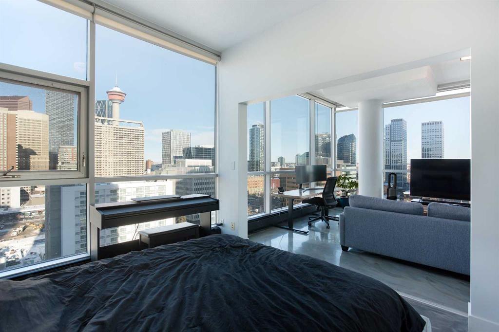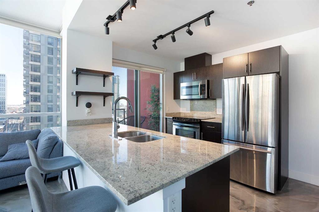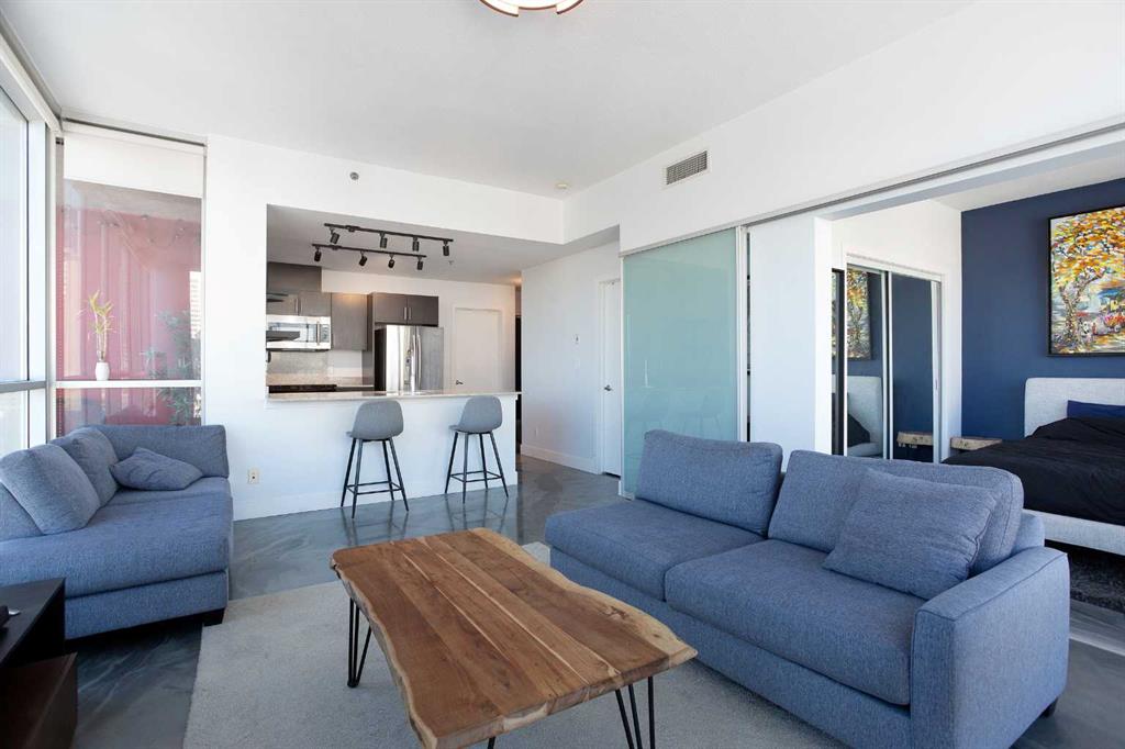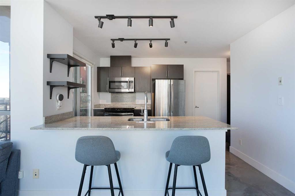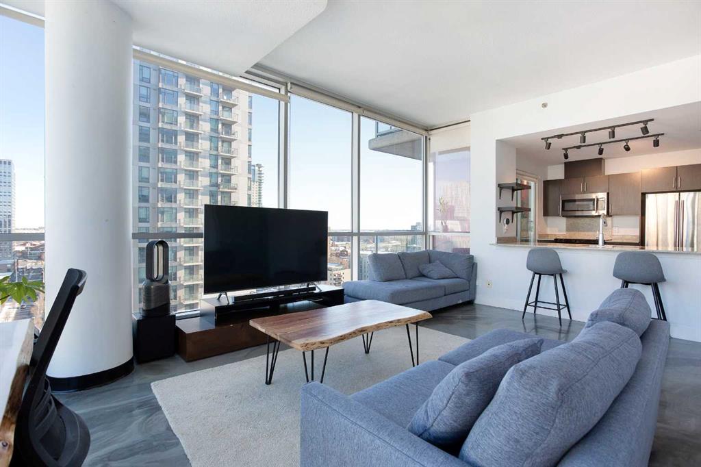 Perfectly positioned in the heart of Calgary’s vibrant Beltline on 1st Street SW, this bright corner-unit condo offers 2 bedrooms, 1 bathroom, and 687 sq. ft. of thoughtfully designed living space, surrounded by wraparound windows that flood the home with natural light and showcase beautiful city views. The open-concept layout is both functional and inviting, ideal for everyday living and entertaining. The kitchen features newer appliances and modern finishes, seamlessly connecting to the bright living and dining areas for a clean, contemporary feel. Recent upgrades include durable epoxy flooring and updated light fixtures with integrated smart lighting throughout most of the home (excluding the second bedroom and bathroom). All smart features connect to a centralized hub, offering effortless control and customizable ambiance. The home also features the convenience of in-suite laundry and includes a titled parking stall — a valuable asset for inner-city living. Step outside and experience one of Calgary’s most walkable and energetic neighbourhoods. Located just steps from First Street Market, Proof Cocktail Bar, and an incredible selection of restaurants, cafés, and nightlife, this address puts the best of the city at your doorstep. The Stampede Grounds and downtown core are only minutes away, making this an ideal property for professionals, investors, or anyone seeking an elevated urban lifestyle. Offering exceptional location, style, and functionality, this Beltline corner unit is a standout opportunity for sophisticated inner-city living.