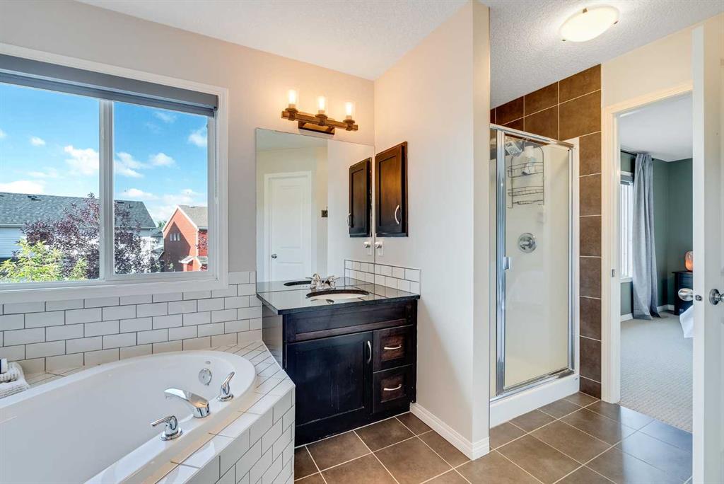 Positioned on a quiet cul-de-sac, this 2,286 sq ft home combines thoughtful upgrades with an unbeatable location. Freshly painted throughout, it offers 4 spacious bedrooms, 2 furnaces, an EV charger in the garage, and new siding and roof completed in 2021. The open-concept main floor has 9-ft ceilings, hardwood and tile flooring, a private office with French doors, and a gourmet kitchen with extended height cabinetry, granite counters, stainless steel appliances, a large island, and a walk-in pantry. The dining area flows to a huge two-tier, partially covered deck. Ideal for entertaining! While the living room is anchored by an elegant gas fireplace and oversized windows. Upstairs, you'll find a generous bonus room with balcony access, 4 large bedrooms, and a luxurious primary suite featuring a spa-like 5-piece ensuite with double sinks, a soaker tub, and an oversized glass shower. The high-ceiling basement offers rough-in plumbing for future development, and the 21' x 20' garage easily accommodates an extended truck. The pie-shaped backyard is a true retreat, with built-in garden beds on both sides, multiple fruit trees, and lush landscaping that creates a park-like setting. Located within walking distance to parks, ponds, schools, and shopping, with quick access to the ring road this home blends comfort, convenience, and style.