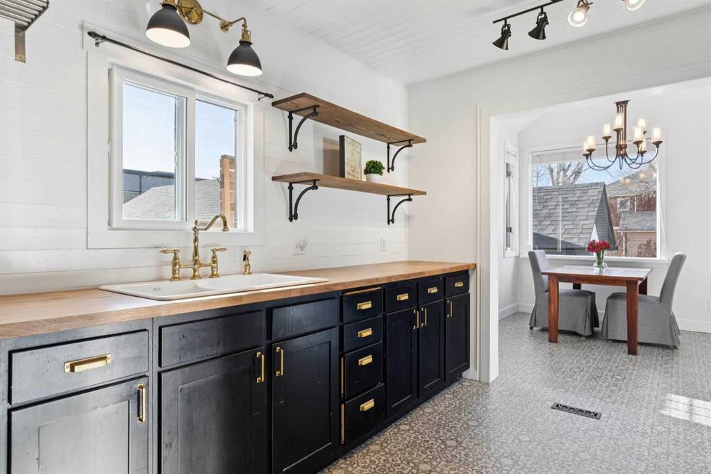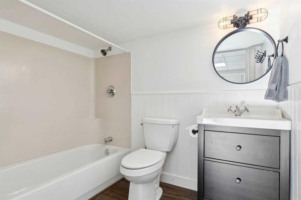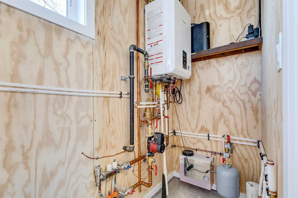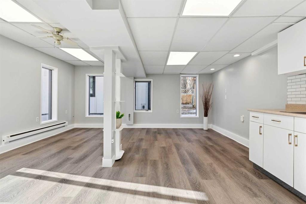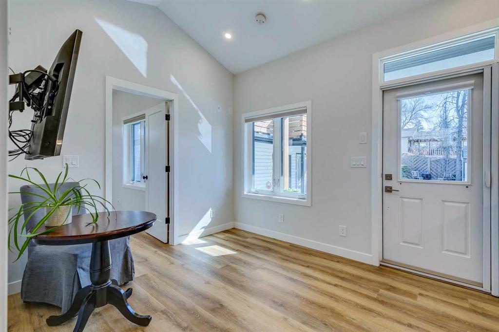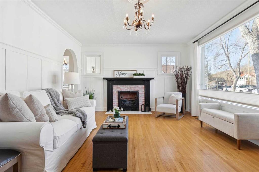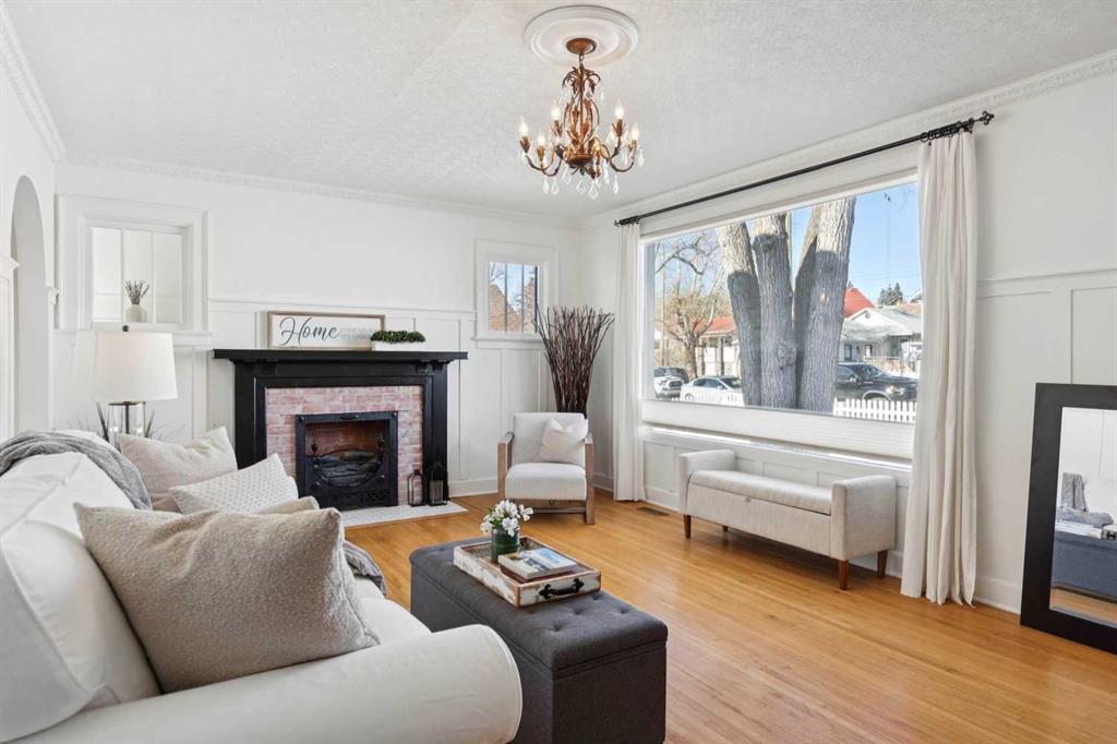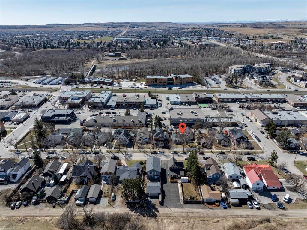 ATTENTION - ANYONE LOOKING FOR A SPECTACULAR PROPERTY! Zoned "DOWNTOWN DISTRICT", this property offers a world of potential, having TWO FULLY FUNCTIONAL RESIDENCES, with revenue, residential, or discretionary commercial uses. This is a great opportunity with so many options. Beautiful historic Elma Street offers a mix of private residences, small businesses, shops, restaurants, lined with towering trees and only a few steps from the heart of Olde Town Okotoks shopping district. Enjoy the downtown lifestyle with walkability to amenities, pathways, river park and easy access to Calgary. The latest development on this property (2023) is a fully detached LEGAL self-contained 363 sq. ft. TINY HOME with private patio, gas-line for barbeque. OVERSIZE DOUBLE GARAGE (heated, insulated, epoxy flooring) attached to tiny home. Back alley access with 5 PAVED PARKING STALLS which is ideal for commercial or home-based business uses. All on a MASSIVE LOT (75’x 115’) offering peace and privacy, fenced, beautifully landscaped with mature trees, shrubs, retaining walls, gardens and courtyard areas. The primary home and legal tiny home can both enjoy the lovely back yard space. There is no end to the possibilities here! This one-of-a-kind walkout bungalow has attractive curb appeal with Spanish style exterior, second floor tower loft and a quaint front lounging deck. Built in 1934, the timeless Heritage details have been preserved and beautifully maintained with country charm, giving a Homes and Gardens vibe. Hardwood flooring, towering ceilings, vintage doors, trim and fixtures, updated electrical. The functional plan is bright, spacious, has large windows for enjoyment of morning and afternoon light. Front entrance opens to spacious living room with fireplace feature wall (fireplace decorative only). Fabulous country chic kitchen with plenty of cupboard and counter space. Adjoining open dining area with access to updated deck and privacy walls. Dining area with open staircase leading to upper loft flex room, ideal for office, playroom, or guest room. Primary and secondary bedrooms are on the main level as well as a 4-piece bathroom, and storage closet spaces. The lower basement level is fully developed featuring spacious family/games room area (with space to develop an additional bedroom), 4-piece bathroom, wet bar counter with cabinets, laundry area, updated vinyl plank flooring, fresh paint, and WALK-OUT to back yard. This area is ideal for family activities, home office, with potential for a legal or illegal suite (Note: legal suite designation requires Town of Okotoks approval). It features a modern kitchen, dining/living space, separate laundry/utility room (European washer/dryer), good size bedroom, 4-piece bathroom, high ceilings, and in-floor heat throughout. This exceptional property is move-in ready.
