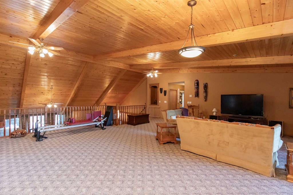 Welcome to this exceptional custom-built 4 bedroom, 3 bathroom executive home offering over 4,200 sq ft of beautifully developed living space. Ideally situated on a large, treed lot siding onto a scenic walking path, this property combines privacy, space, and thoughtful design. A soaring pine-lined vaulted ceiling creates a grand first impression as you enter the wheelchair-accessible main floor, featuring no-step entry and extra-wide hallways. The formal living room showcases a striking stone-faced fireplace, hardwood and slate tile flooring, and floor-to-ceiling bay windows overlooking the front yard. The spacious kitchen is designed for both everyday living and entertaining, offering an abundance of oak cabinetry, ample counter space, Sub-Zero refrigerator, double wall ovens, full tile backsplash, walk-in pantry, and a large island with sink and lowered eating bar. A wall of windows provides picturesque views of the park-like backyard, while a garden door leads to the covered deck and concrete patio. The adjoining dining area comfortably accommodates large family gatherings. The expansive main floor primary suite easily fits a king-sized bed and additional furnishings, and features two walk-in closets and a luxurious 5-piece ensuite complete with air tub, separate shower, dual vanities, and a private water closet with bidet. A second main floor bedroom is conveniently located next to the 3-piece main bath. The well-appointed laundry room offers extensive cabinetry, folding counter, and built-in desk. A generous mudroom off the garage entrance includes a built-in bench for added functionality. A grand staircase leads to the upper level where you’ll find a massive family room with vaulted ceiling, large windows, and wood railing overlooking the main floor. Two generously sized bedrooms (both with dual closets, one with a built-in desk) are situated off the family room and share a 4-piece bathroom. The crawl space provides additional storage options. The heated oversized triple attached garage includes in-floor heat, an RV bay, workshop space, and man doors to both the front and backyard. The beautifully landscaped yard features mature trees, shrubs, perennials, and a garden shed, creating a serene outdoor retreat. Additional highlights include three furnaces, central air conditioning, HEPA filtration system, hot water on demand, water filtration system, water softener, partially heated exterior front walkway, and call bells in the primary bedroom, ensuite, and kitchen. This is a one of a kind property that is awaiting its new owners!