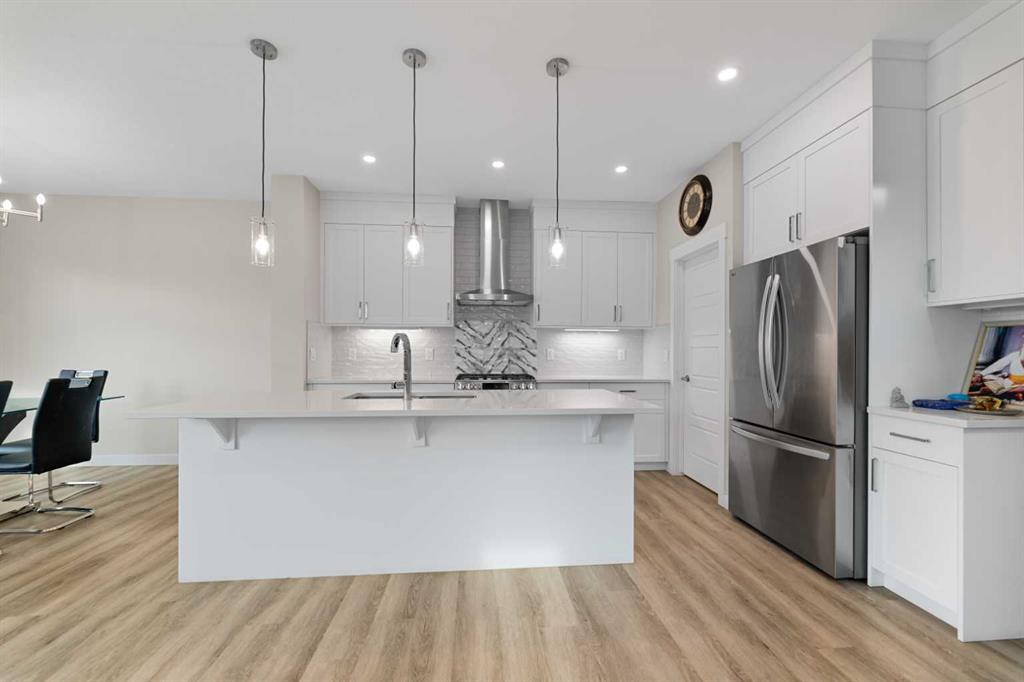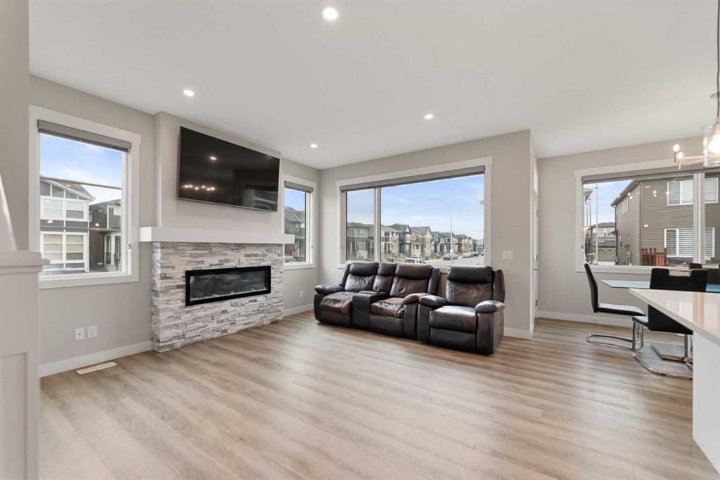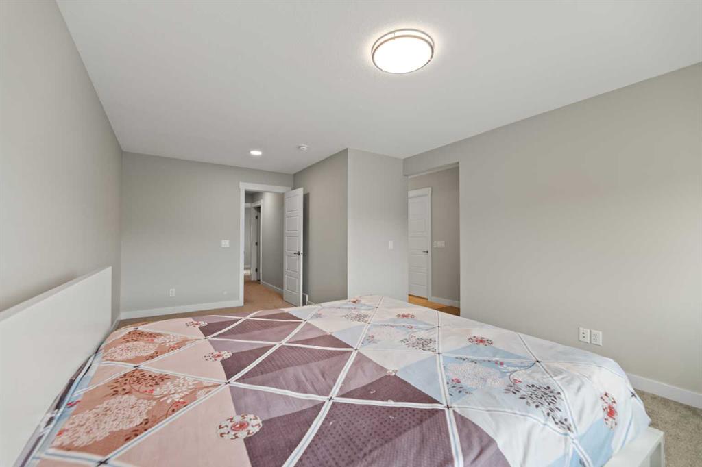 Welcome to this exquisite Anthem BUILT Signature Home in the highly sought-after and fast-growing community of Cornerstone, where modern living meets natural surroundings. This beautifully designed 2-storey home offers over 2,200 sq.ft. of exceptional craftsmanship and thoughtful detail — perfect for large or multi-generational families. Step inside to discover a bright and open floor plan featuring luxurious vinyl plank flooring, high ceilings, and a gourmet kitchen equipped with quartz countertops, sleek stainless steel appliances, including an gas stove, French door refrigerator, and built-in microwave. A walk-through pantry and spacious center island make this kitchen both stylish and functional. The main floor bedroom with a full bath provides the ideal space for guests or extended family, while large windows fill the living and dining areas with natural light, enhancing the corner lot’s open feel. Upstairs, you’ll find four generous bedrooms, including a stunning primary suite with a spa-inspired ensuite featuring dual vanities, a soaker tub, stand-alone shower, and a walk-in closet. A central family room separates the primary suite from the additional bedrooms, ensuring privacy and comfort. The upper level also includes a large laundry room, plus a main bath with dual vanities. Additional highlights include an expanded dining area, side entrance, and corner lot location. Perfectly situated close to the Calgary International Airport, with easy access to Deerfoot Trail and Stoney Trail, and surrounded by ever-growing amenities, this brand-new home delivers both luxury and practicality, ready for your family to move in and enjoy!