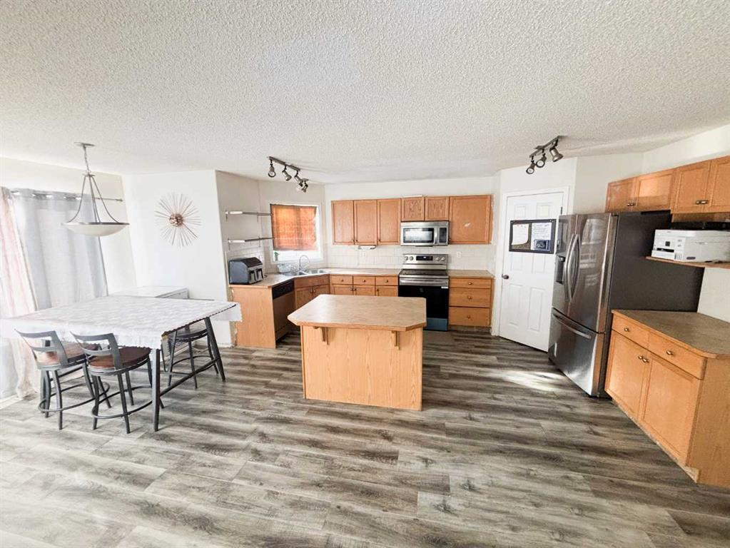 LOCATION! LOCATION! LOCATION! Charming Family Home in a Quiet, Friendly Neighborhood Welcome to this inviting 2-storey home located on a peaceful street surrounded by wonderful neighbors. A playground just steps away sets the tone for this warm, family-oriented community. Main Level Highlights Welcoming Front Porch & Foyer: Step into a grand sunken entryway with ceramic tile flooring. Open & Bright Layout: Perfect for entertaining or everyday living. Stylish Kitchen: Beautiful oak cabinetry, plenty of counter space, central island, and a corner pantry. Dining Nook: Sun-filled breakfast space overlooking the south-facing backyard. Cozy Living Room: Features a built-in gas fireplace for those relaxing evenings. Practical Touches: Convenient half bath plus laundry/mud room on the main floor. Upstairs Retreat Primary Suite: Spacious master bedroom with a walk-in closet and a luxurious 4-piece ensuite featuring an oversized soaker tub and separate shower. Two Additional Bedrooms: Generously sized with their own full 4-piece bath. Basement & Outdoor Space Partially Finished Basement: Wide open recreation area with laminate floors, built-in sound wiring, and rough-in for a future bathroom—ready for your finishing touches. Large South-Facing Yard: Fully fenced, complete with a fire pit for memorable evenings outdoors. This home combines style, comfort, and functionality in a fantastic location. From the family-friendly street to the bright open design and outdoor living space, it’s the perfect place to create lasting memories. Don’t miss your chance to own this gem—schedule your private tour today!