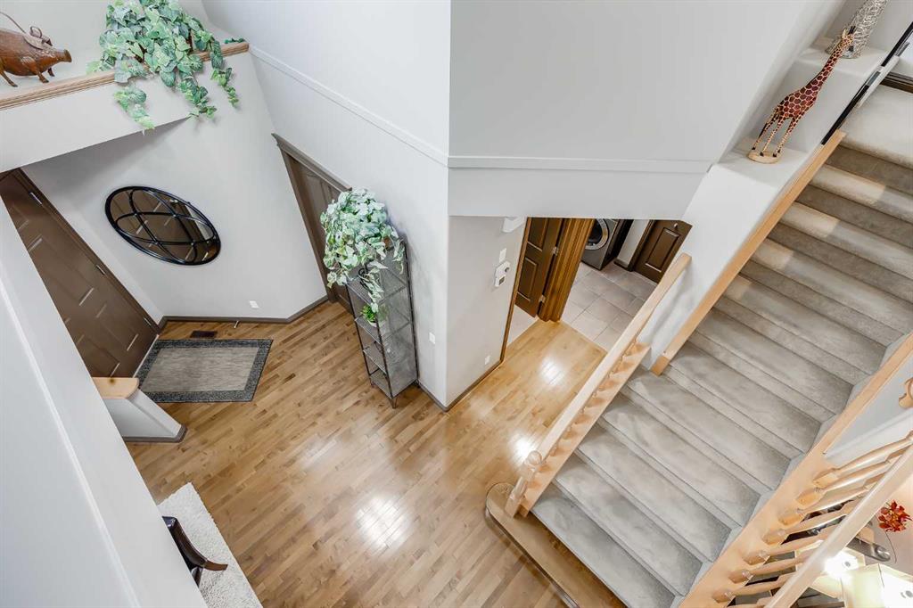 Welcome to this absolutely immaculate 2,100 sq ft Jayman “Kennedy” model — one of the most sought-after floorplans of its time — lovingly maintained and presented today as beautifully as the day it was built. Step outside your front door and you’re just moments from the bike and walking pathway system that opens onto the ridge, where breathtaking west-facing views of the mountains, Bow River valley and serene ponds become part of your daily routine. Morning walks and sunset strolls don’t get better than this. The timeless stucco exterior offers classic curb appeal, while inside, the dramatic open-to-above design creates an immediate sense of space and light. The soaring entry seamlessly connects to the elegant staircase and formal dining room — or flex space — at the front of the home, perfect for a home office or welcoming sitting area. The main floor unfolds into a wide-open layout designed for connection and comfort. Rich walnut-stained maple cabinetry anchors the kitchen, complemented by a central island with raised eating bar, corner pantry, and an abundance of prep and storage space. Whether hosting friends or enjoying quiet family dinners, the space feels warm, functional, and inviting. The adjacent living room features a stunning built-in maple bookcase and entertainment centre surrounding a corner fireplace with ceramic tile surround — a true focal point that adds both character and comfort. Upstairs, maple railings and spindles lead to an open loft/bonus room overlooking the entryway — an incredibly versatile space ideal as a second living room, office, kids’ playroom, or private teen retreat. The primary bedroom is perfectly proportioned and offers a relaxing ensuite with a large soaker tub, separate shower, 6’ vanity, and a spacious walk-in closet. Two additional bedrooms are larger than expected and share easy access to the main bath. The unfinished basement offers a blank canvas with rough-in plumbing already in place — perfectly suited for a future bedroom tucked away for guests and a wide-open recreation space tailored to your needs. Outside, the west-facing backyard is beautifully landscaped with a manicured lawn and stunning two-tiered deck plus a stone patio — the perfect place to soak in evening sunsets. The oversized 24’ garage (exterior dimensions), combined with a generously sized driveway, provides exceptional parking and storage flexibility. Pride of ownership is evident in every detail of this home. Cranston is one of the city’s most desirable communities, known for its access to the ridge pathway system, scenic river valley views, parks, schools, and family-friendly atmosphere. With nearby amenities, shopping, and easy access to major routes, it offers the perfect balance of nature, convenience, and community connection. Homes this close to the ridge rarely come available — book your private showing before this one is spoken for.