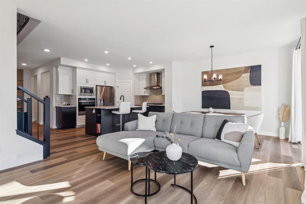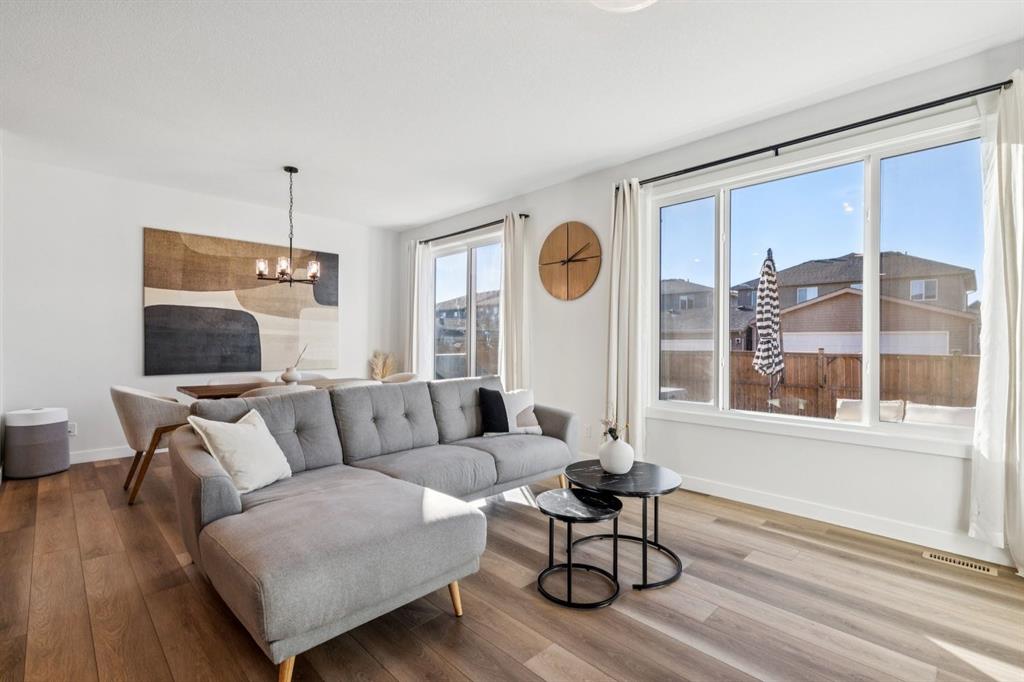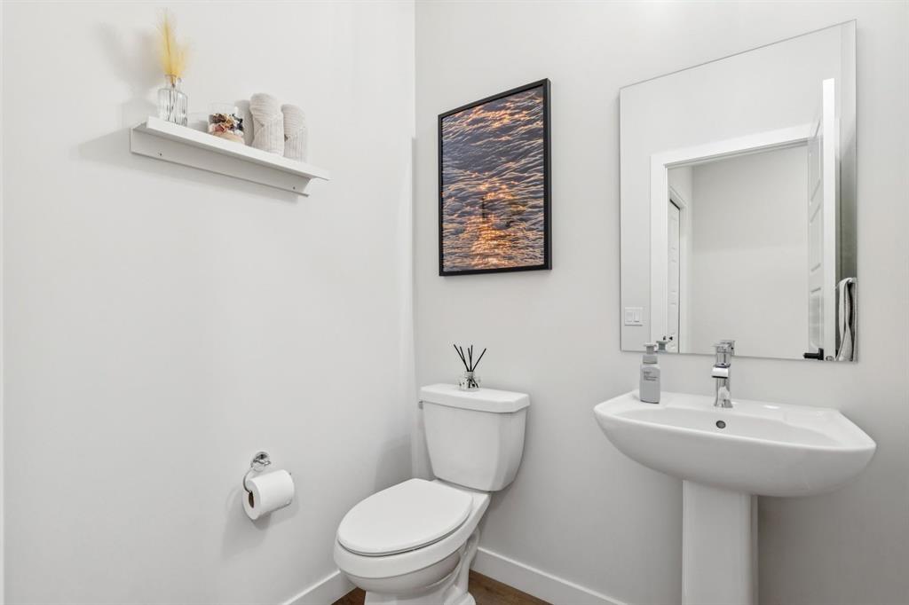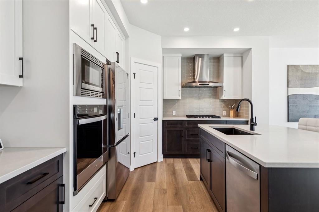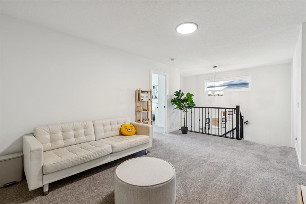 Located in the up-and-coming community of Pine Creek, this stunning 2024-built home features pride of ownership and upgrades throughout. Situated on a non-zero-lot-line, pie-shaped lot, this WEST FACING property comes professionally landscaped and fully fenced with a large deck. Inside, the home features well-maintained luxury vinyl plank floors and 9-foot ceilings throughout (including the basement). The main floor includes a flex/office space and an open-concept living area. The kitchen is thoughtfully designed with quartz countertops, a pantry, stainless steel appliances, a wall oven and a five-burner gas range. A gas fireplace warms the living room, while the west-facing backyard fills the dining and living areas with natural light. This level is completed by a two-piece bathroom and a mudroom with access to the attached two-car garage. Upstairs, a spacious bonus room separates the secondary bedrooms—each equipped with walk-in closets—from the primary retreat. The primary suite offers west-facing exposure and ample space for a king-sized bed and additional furniture. The five-piece ensuite features dual vanities, a large tub, a standalone tiled shower, a water closet, and access to a walk-in closet. A four-piece bathroom and a laundry room are also located on this level. The backyard requires no additional investment, offering a solid deck with a gas hookup, grass and a spacious, west-facing fully fenced yard. The home is situated on a quiet street, just steps away from local playgrounds and green spaces.