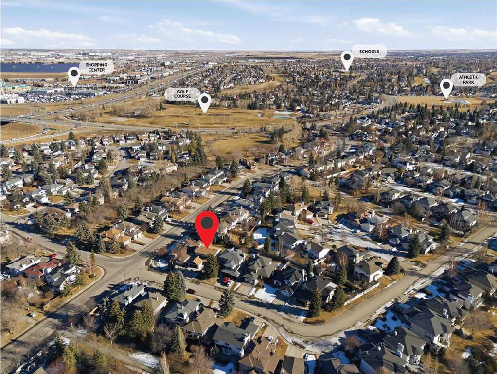 * SEE SUMMER VIDEO * This exceptional family home offers 2,919 SQ. FT. of thoughtfully designed living space, blending timeless character with modern updates. A true standout, it features FOUR BEDROOMS UPSTAIRS plus a fully finished basement—an increasingly rare and highly desirable layout for families. Proudly maintained by the ORIGINAL OWNERS, the home welcomes you with a grand foyer, expansive windows, engineered flooring, and elegant cast-iron railings. The bright kitchen showcases white cabinetry, granite countertops, a corner pantry, Samsung appliances, and a sunlit breakfast nook, complemented by a formal dining room ideal for entertaining. The living room is anchored by a charming wood-burning brick fireplace with built-ins, while a versatile front flex room offers the perfect home office or retreat. Upstairs truly shines with FOUR GENEROUS BEDROOMS, including a private primary suite with double closets and an ensuite featuring a jetted tub and separate shower. Three additional bedrooms and a full bath complete the upper level. The fully finished basement adds exceptional flexibility with a large recreation room, family room, and bar—perfect for entertaining or relaxing. Outside, enjoy a private backyard ready for summer gatherings. Recent upgrades include a BRAND-NEW ROOF, newer furnace and hot water tank, fresh exterior paint, custom blinds plantation shutters and many windows have been also replaced! Ideally located steps from parks, schools, Douglasdale Golf Course, shopping, Deerfoot Trail, Bow River pathways, and Fish Creek Park—this home delivers space, comfort, and lifestyle in one of Calgary’s most desirable communities. Book your private showing today!