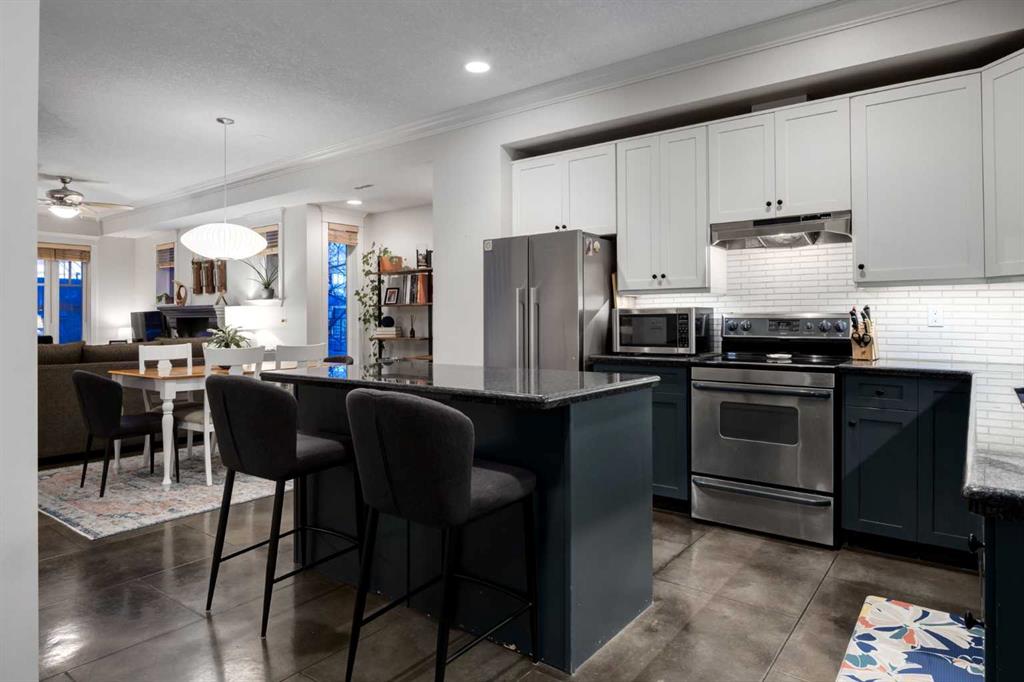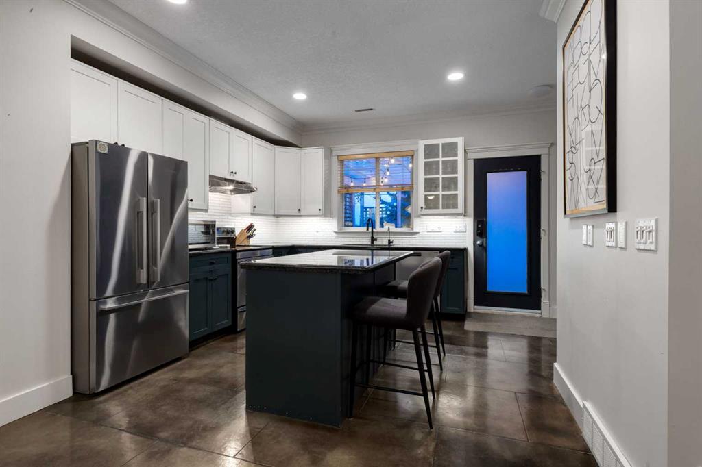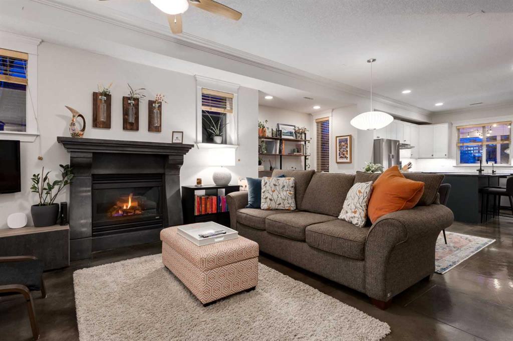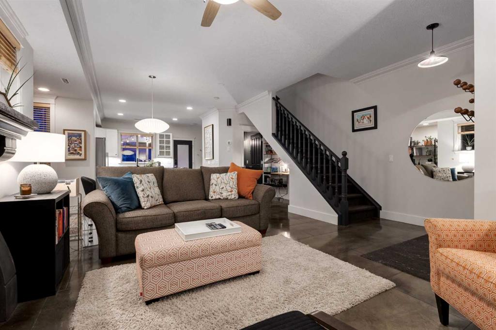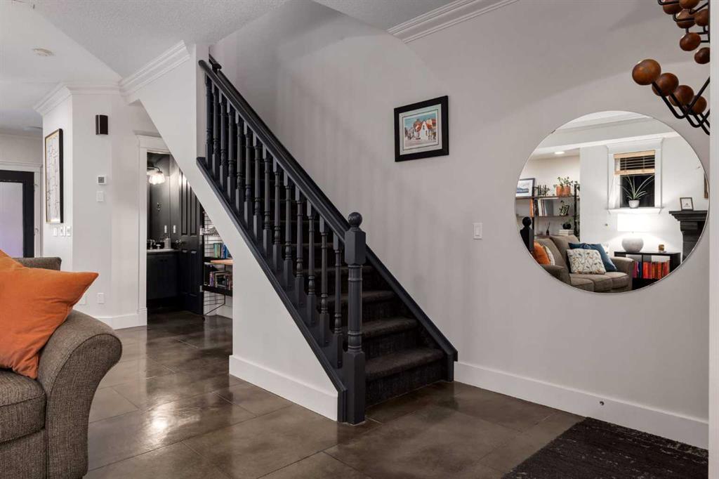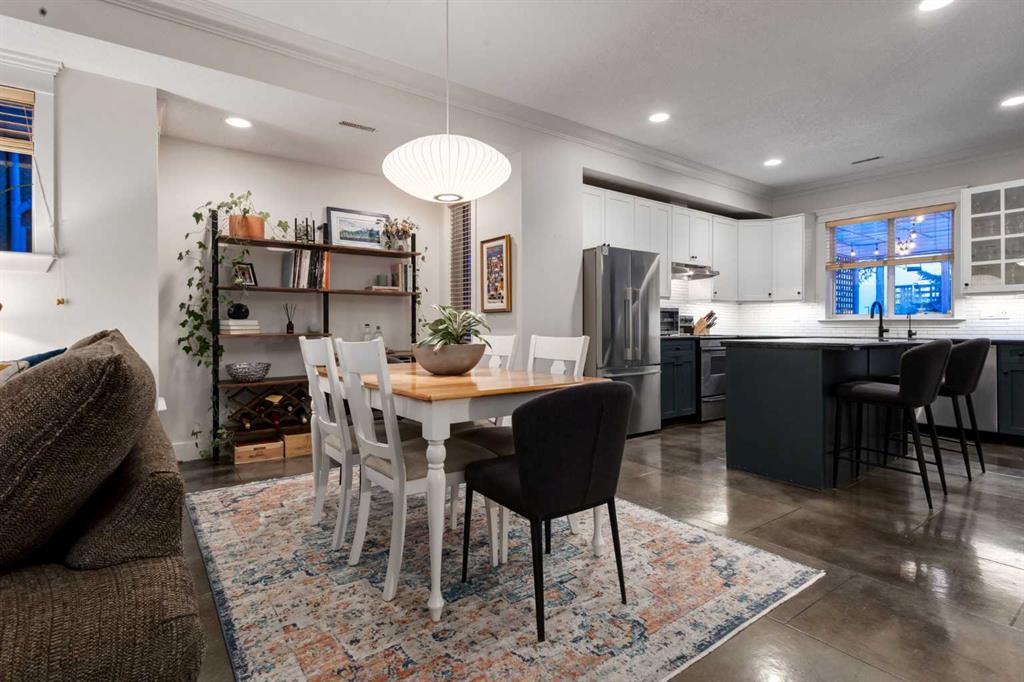 A rare blend of character and modern sophistication, this walk-up two-story brick townhouse brings New York style to the heart of Killarney. The open-concept main floor showcases polished concrete floors, 9-foot ceilings, crown mouldings, and a striking custom fireplace. An updated kitchen anchors the space with a large island, pantry, soft-close cabinetry, and designer fixtures. Upstairs, the primary suite is a true retreat with vaulted ceilings, hardwood floors, oversized windows, and a spa-inspired ensuite featuring a freestanding tub, walk-in shower, and heated floors. A second bedroom and upper-level laundry add everyday convenience. Enjoy a trellised patio, private fenced yard (rare find and perfect for pets), generous storage, oversized single garage, and guest parking. Built by Georgian Bay, this home offers quality construction in a prime inner-city setting. Walk to cafés, bakeries, parks, recreation, the C-Train, and the energy of 17th Avenue. Downtown access is quick and easy—urban living at its best.