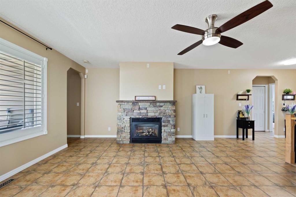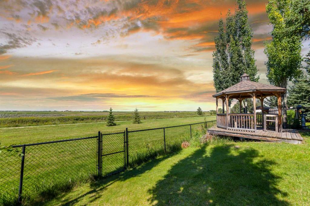 Peaceful Country Living at Its Finest in Irricana: Welcome to a home where wide-open skies, quiet evenings, and modern comfort come together beautifully. This fully finished walkout bungalow offers over 2,600 sq. ft. of refined living space, delivering the perfect balance of warmth, function, and rural charm. From the moment you step inside, you’re greeted by a spacious foyer that flows effortlessly into a sun-filled great room. Expansive west-facing windows frame breathtaking, unobstructed countryside views, while a cozy gas fireplace creates the perfect gathering space for family and friends. The open-concept dining area and kitchen are thoughtfully designed for both everyday living and entertaining. Featuring granite countertops, abundant cabinetry, and seamless access to the garage, this space makes busy mornings and grocery days feel effortless. Your primary retreat is a true sanctuary—generously sized and filled with natural light. The elegant four-piece ensuite includes a relaxing soaker tub, and the dual walk-in closets provide exceptional storage. French doors lead directly to the deck, where you can enjoy morning coffee with sunrise views or unwind as the sun sets across the prairie. Two additional bedrooms and a full four-piece bathroom complete the main level, offering flexibility for family, guests, or a home office. The fully finished walkout basement expands your living space with comfort and versatility. Enjoy in-floor heating, oversized windows that flood the lower level with natural light, a spacious games area, inviting family room, an additional four-piece bath, and a private bedroom with its own walk-in closet—ideal for guests, teens, or multi-generational living. Added peace of mind comes with a new roof installed in 2023. Step outside and experience the true magic of country living. The backyard is designed for relaxation and enjoyment, featuring a hot tub, gazebo, shed, and multiple deck access points from both the dining room and primary suite. Summer evenings are made for entertaining, and clear country nights offer star-filled skies you simply can’t find in the city. Located in the welcoming community of Irricana, this home offers the serenity of rural life while maintaining convenient access to nearby amenities. Enjoy peaceful drives home, friendly neighbors, and miles of open countryside right at your doorstep.